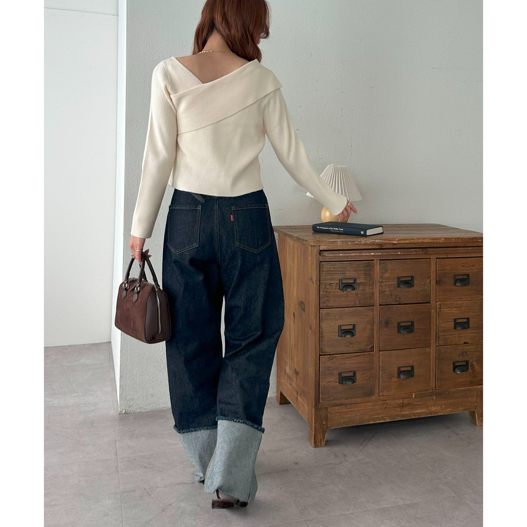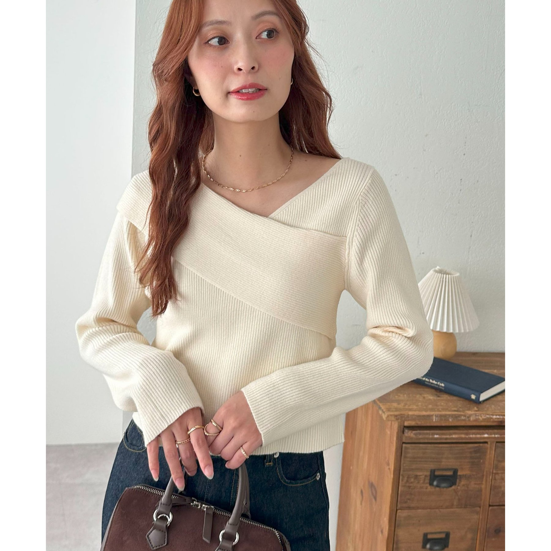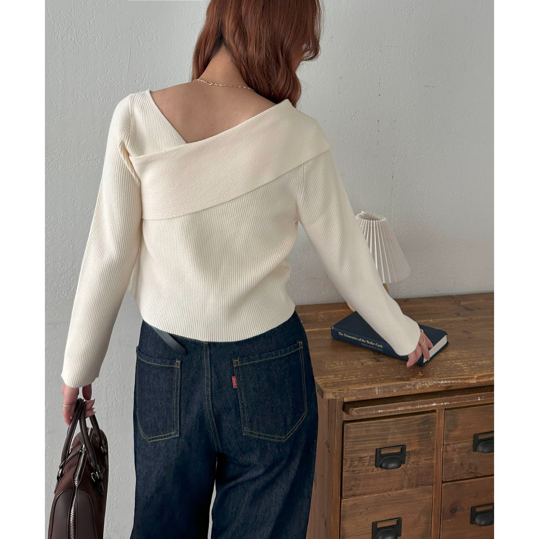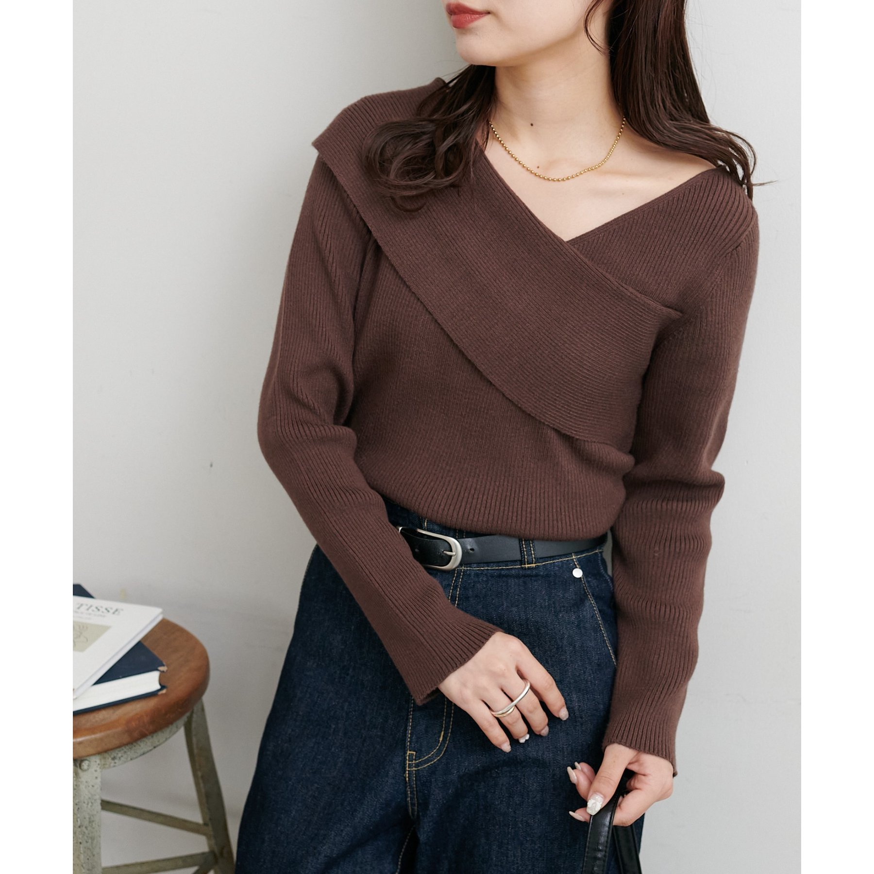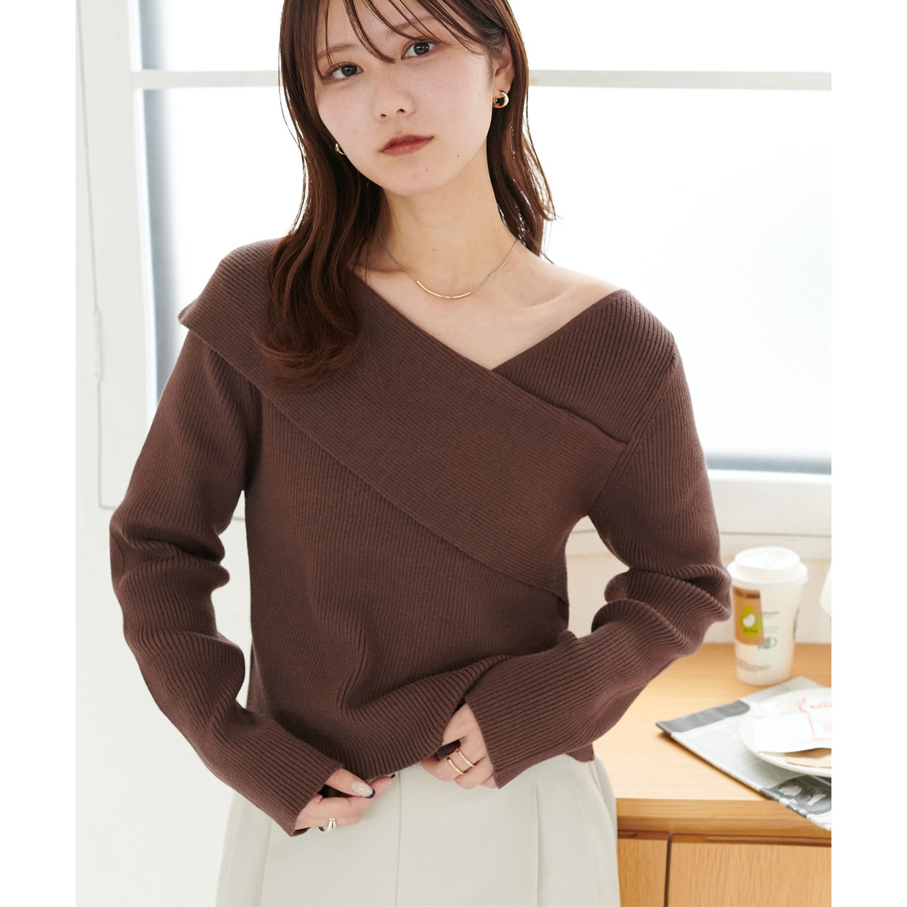 ・アシンメトリーな首元デザインでヘルシーな程よい肌見せ