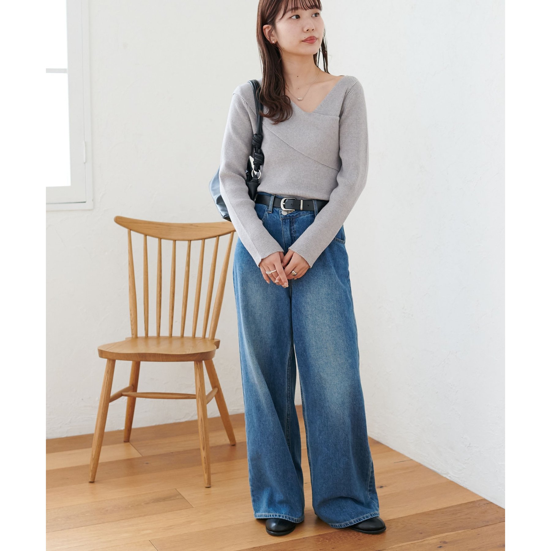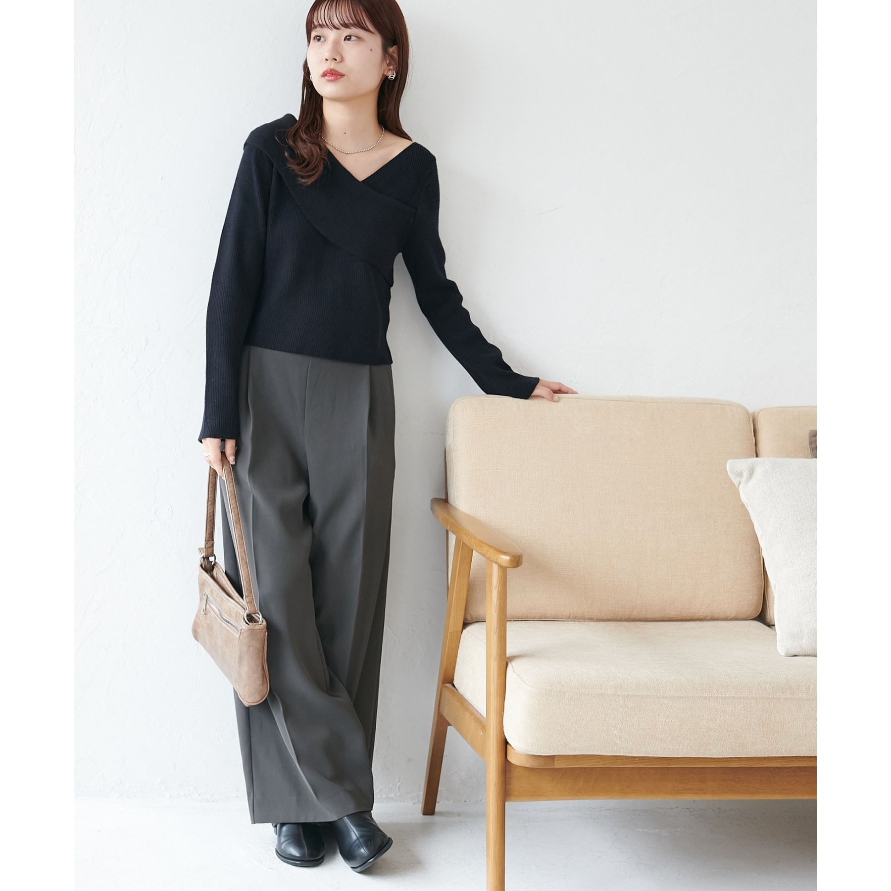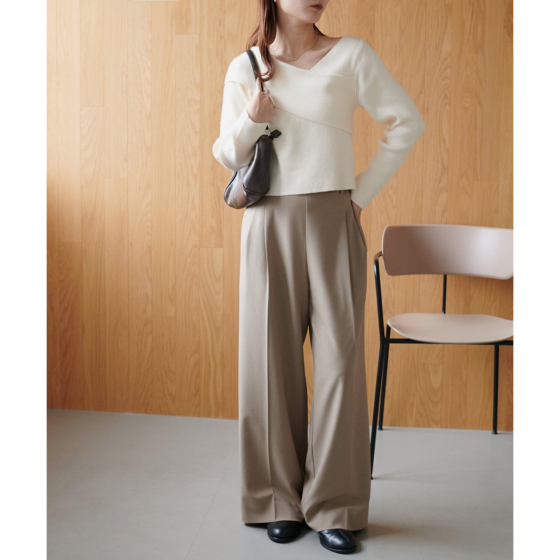 160cmスタッフ:アシンメトリーになっているっことで、自然な抜け感、ヘルシーな印象をプラスしてくれるトップス〇