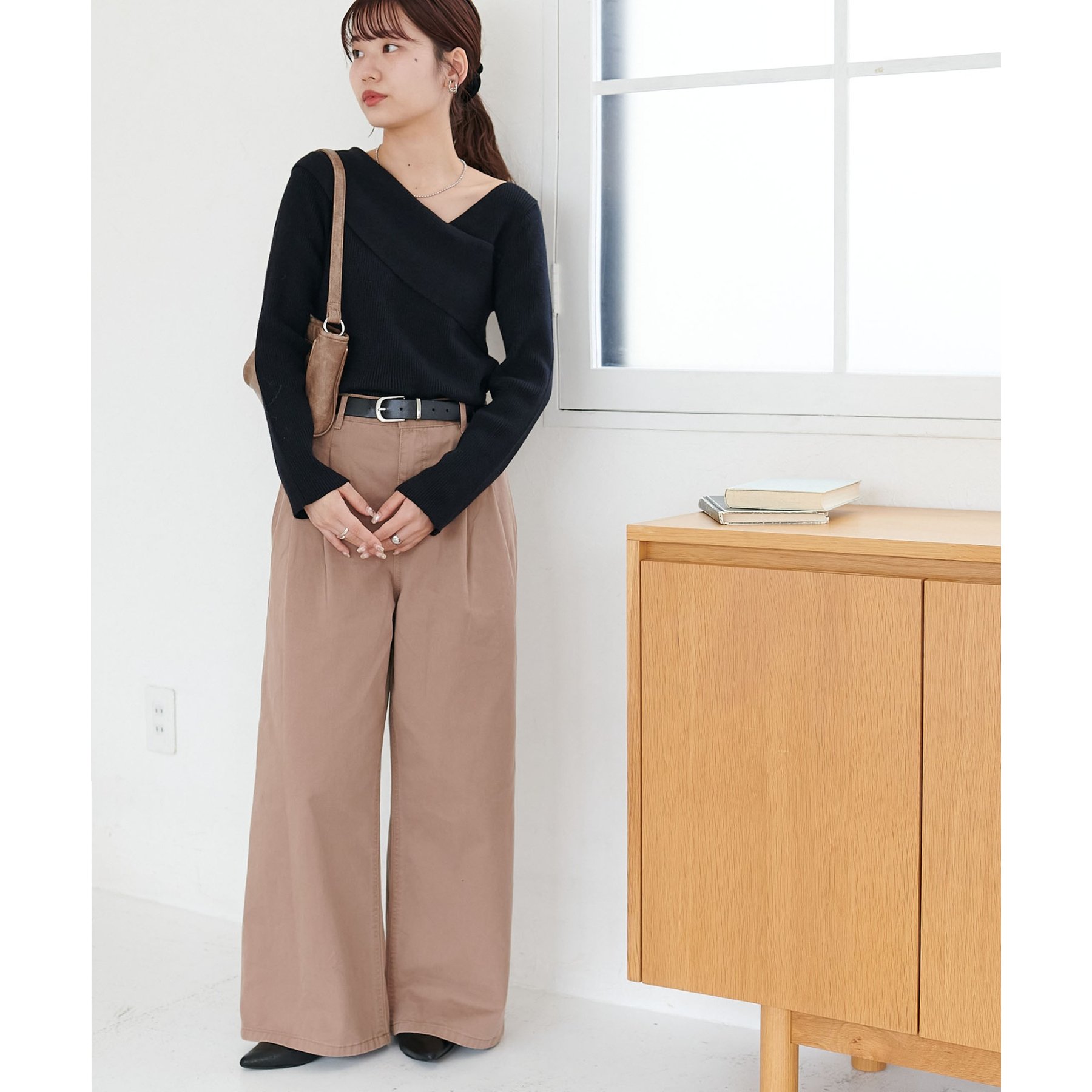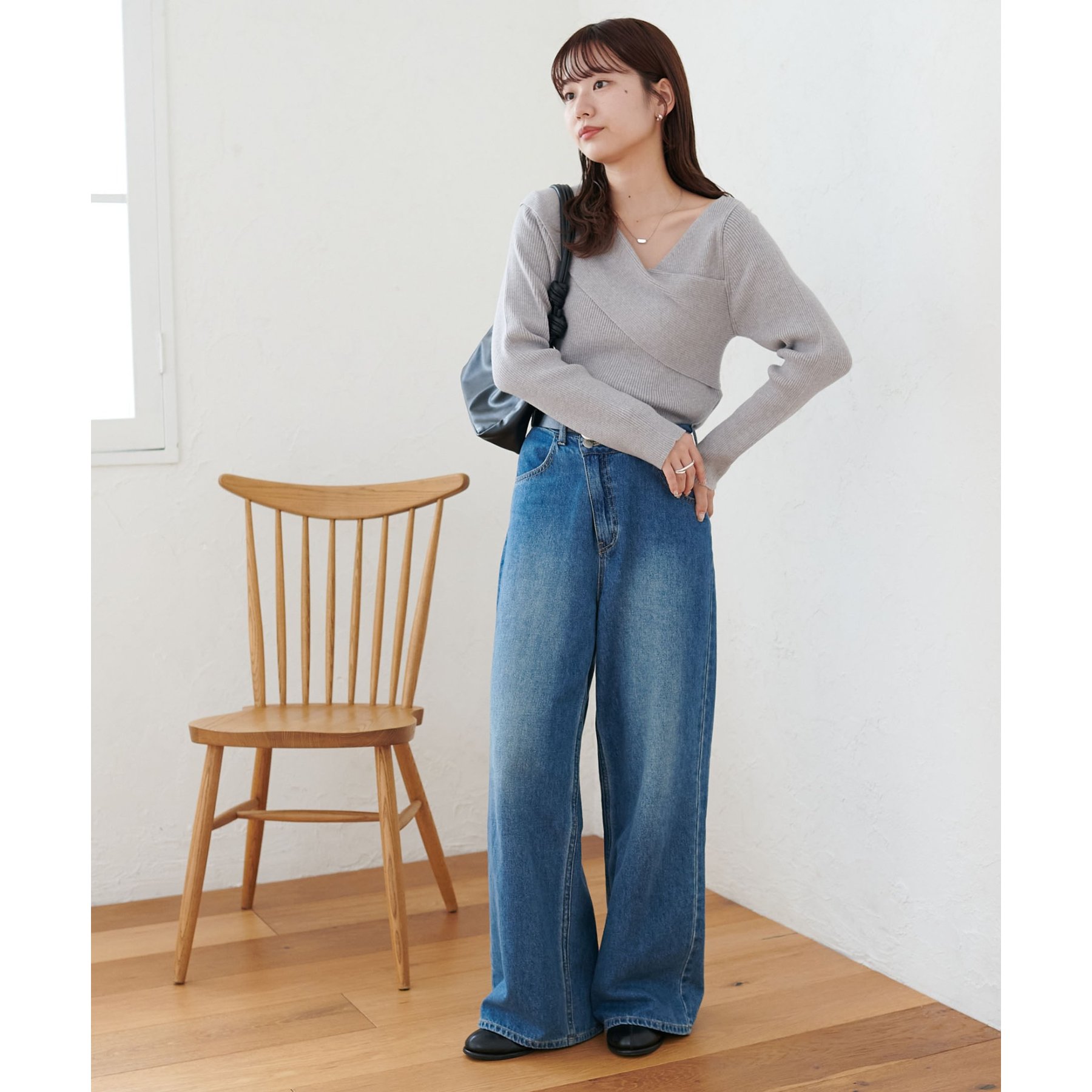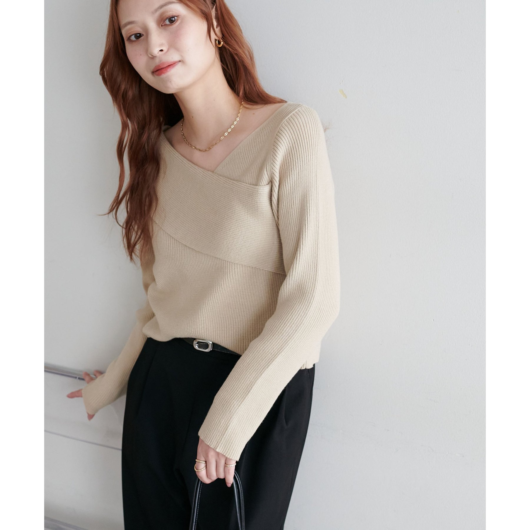 160cmスタッフ:アシンメトリーになっているっことで、自然な抜け感、ヘルシーな印象をプラスしてくれるトップス〇