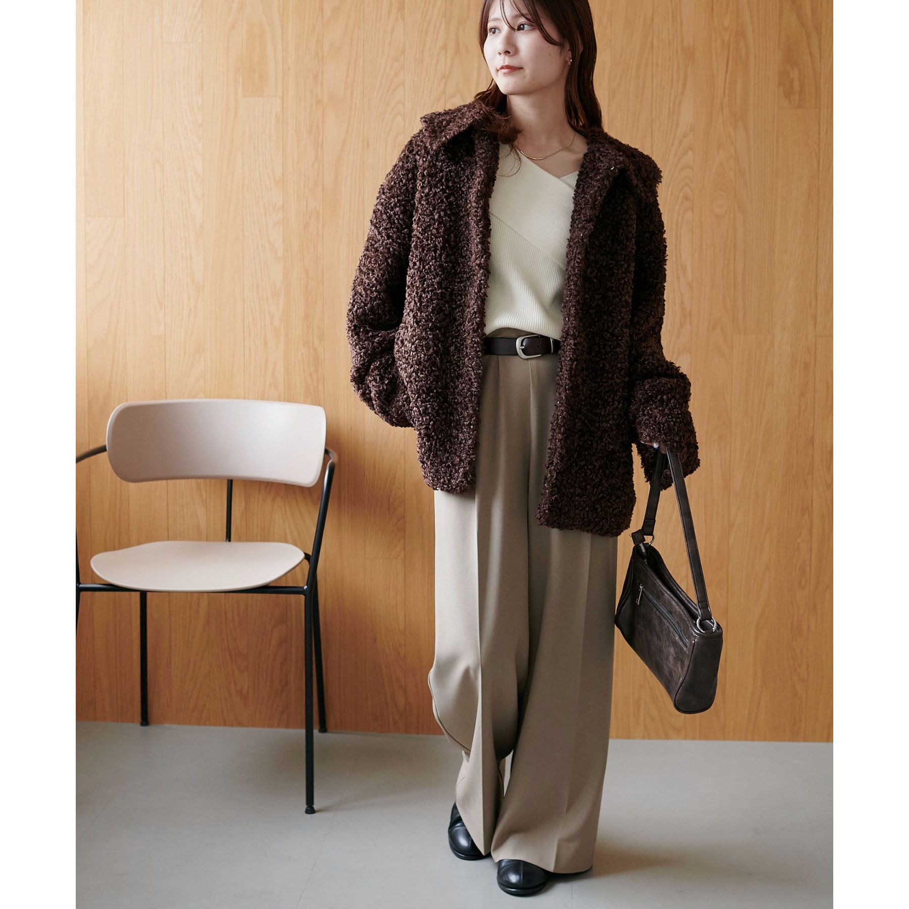 ・コンパクトな着丈で、ボトムスに裾をインしなくてもコーデが決まる