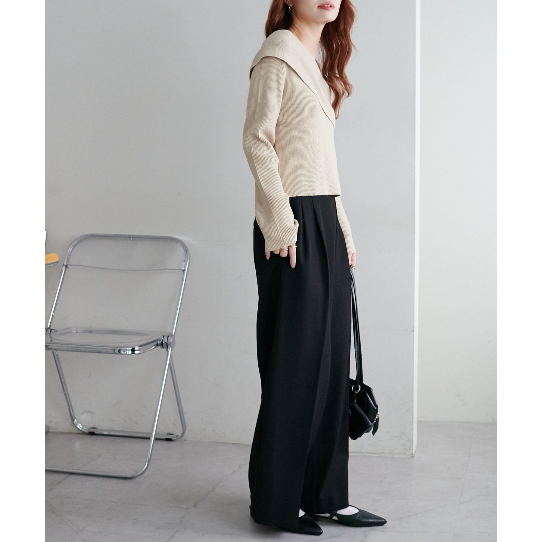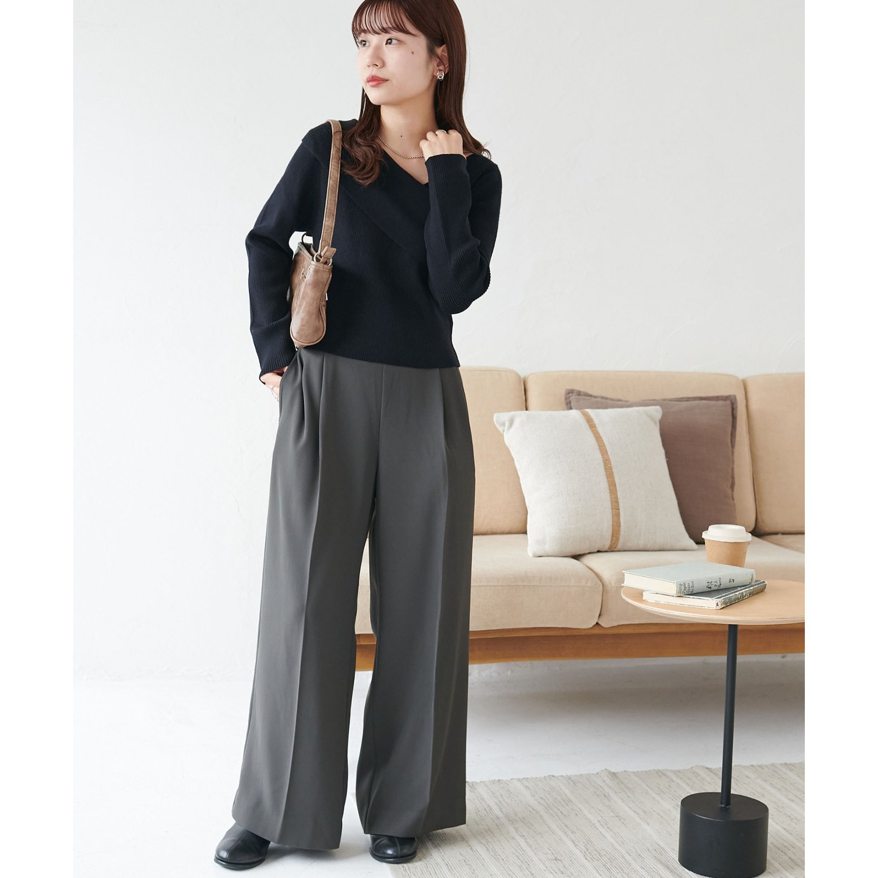 ・スラックスと合わせてキレイめコーデに