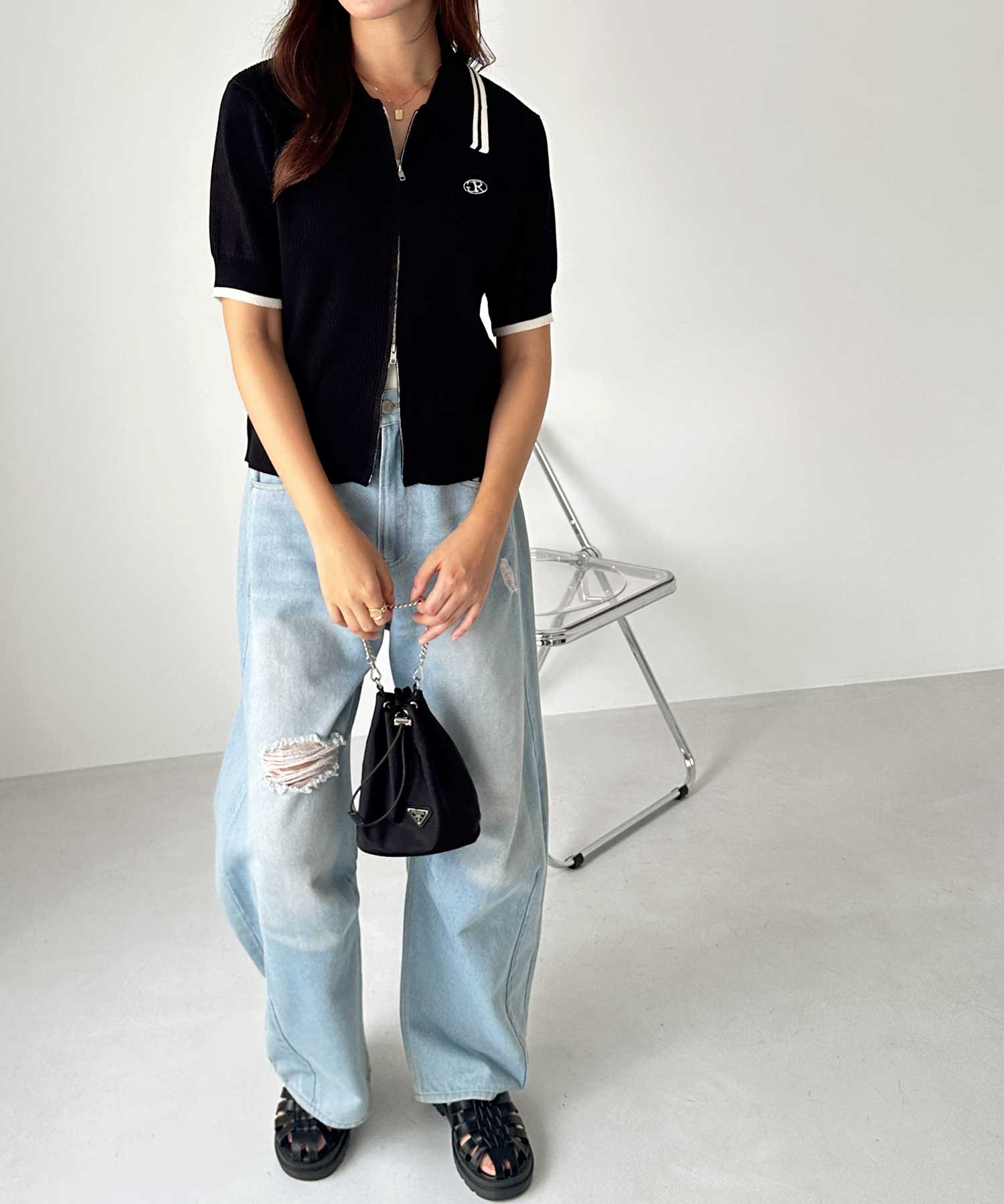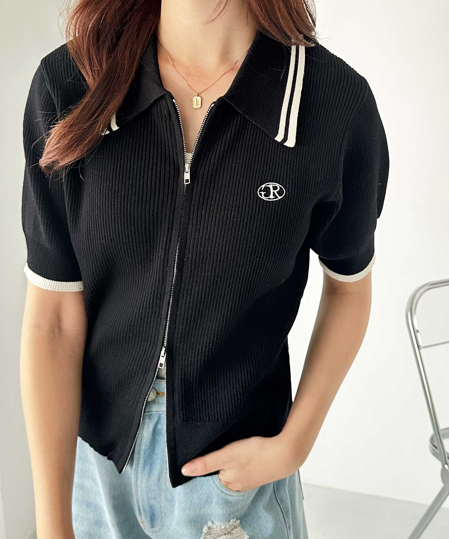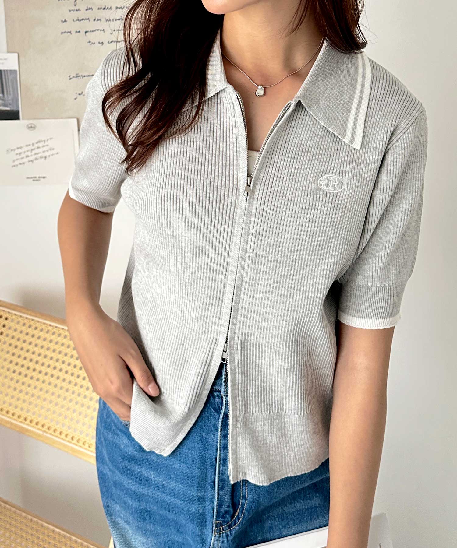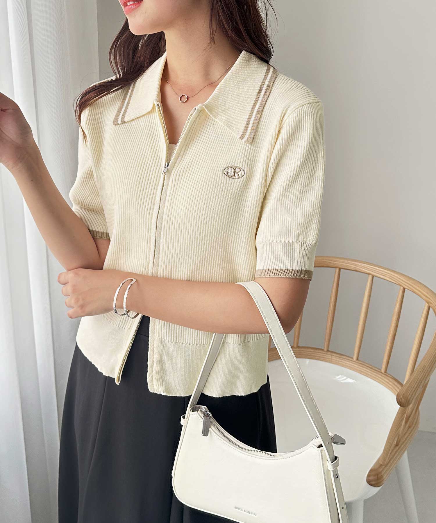 夏に大活躍!衿付ダブルジップ半袖ニットカーディガン