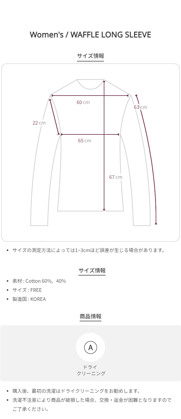 - ニットの場合、測り方により3cm以上差が出ることがあります。