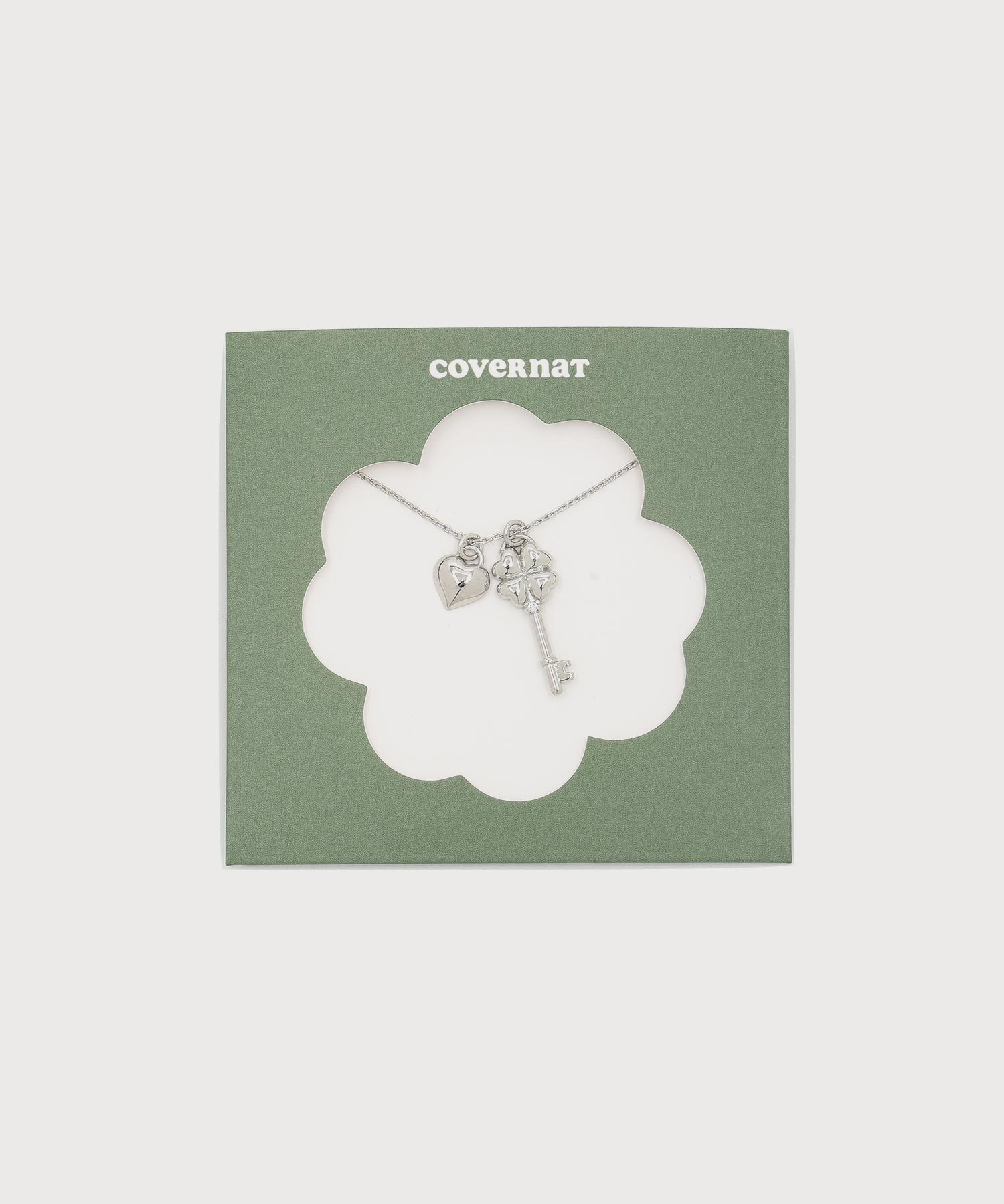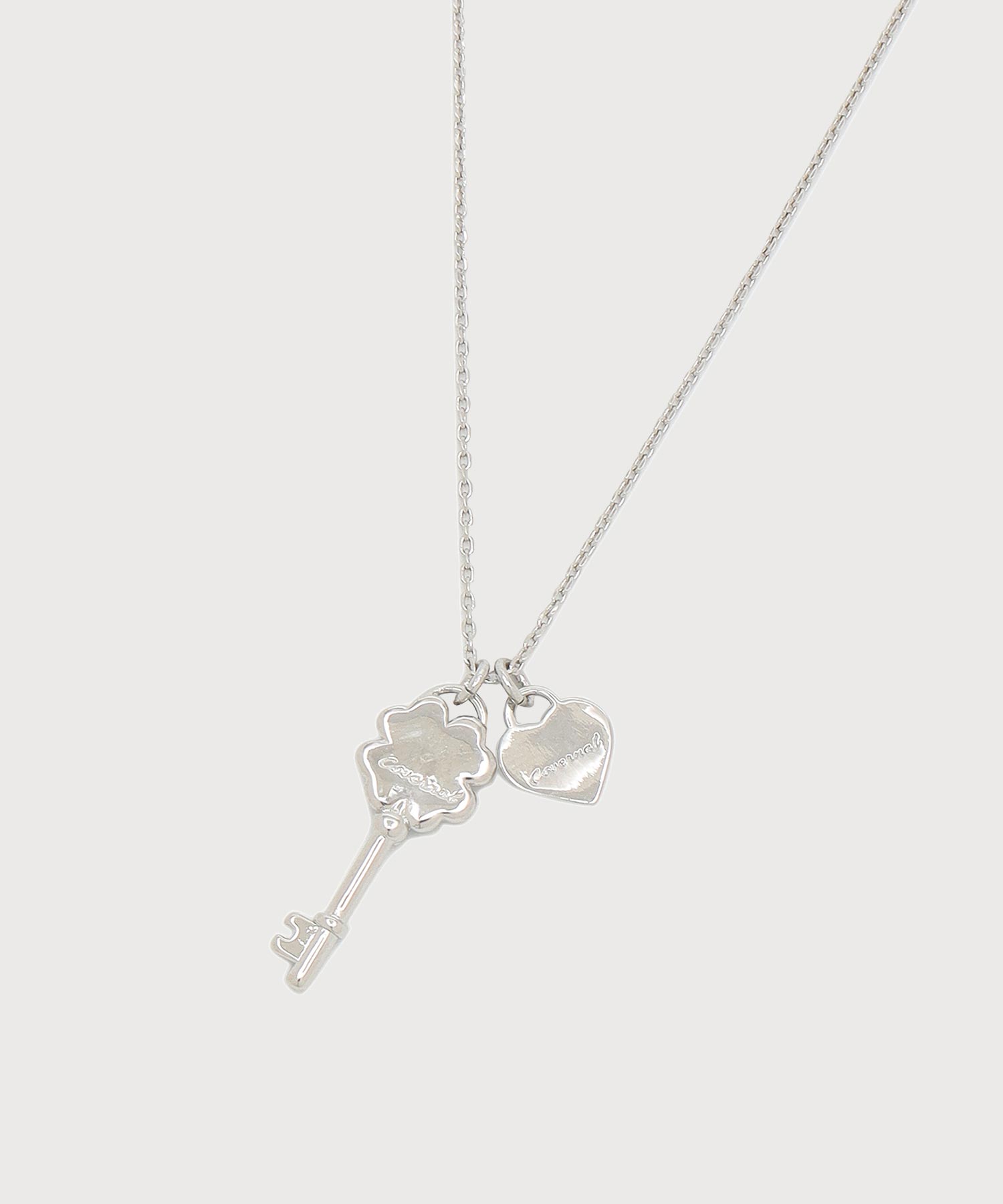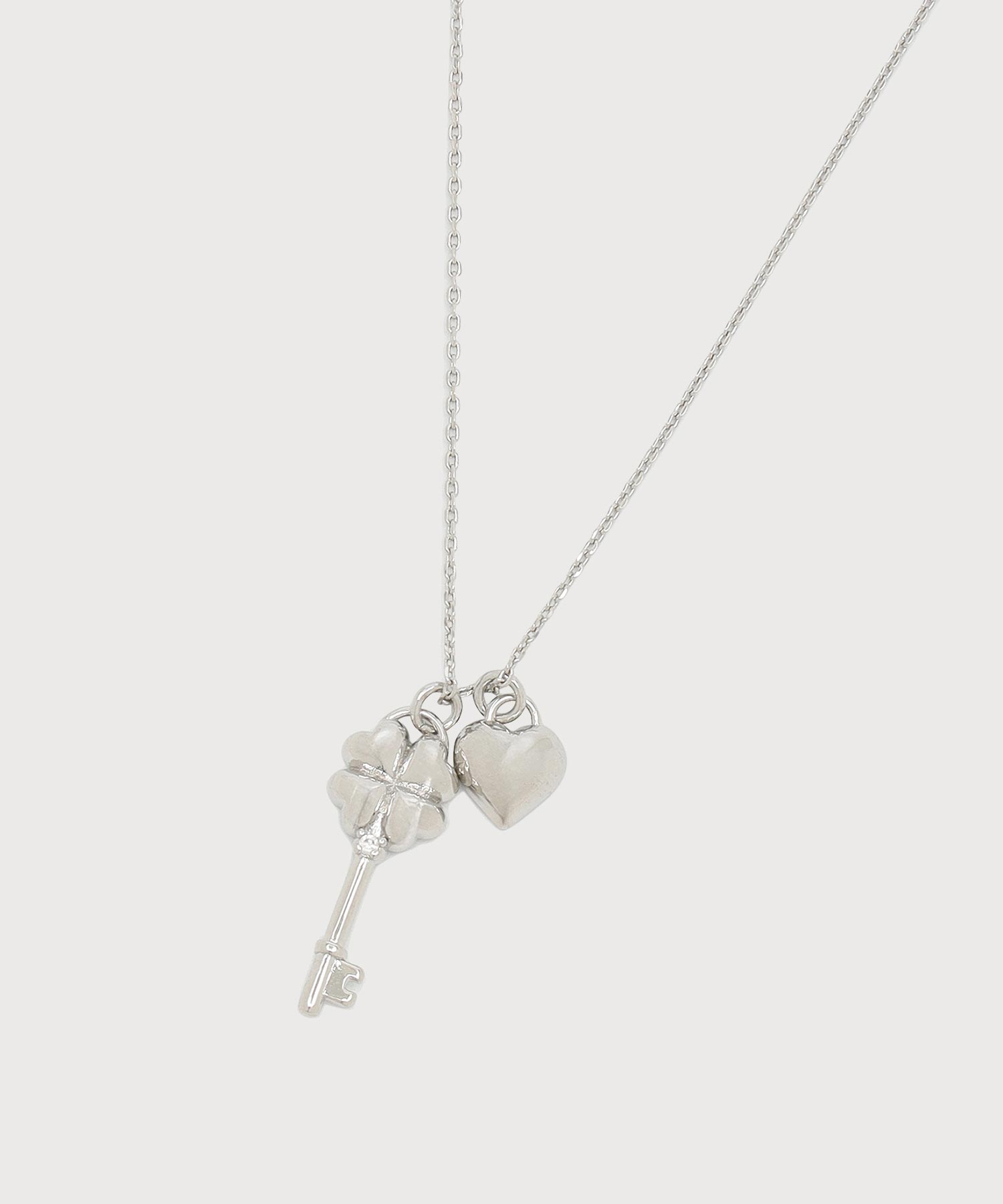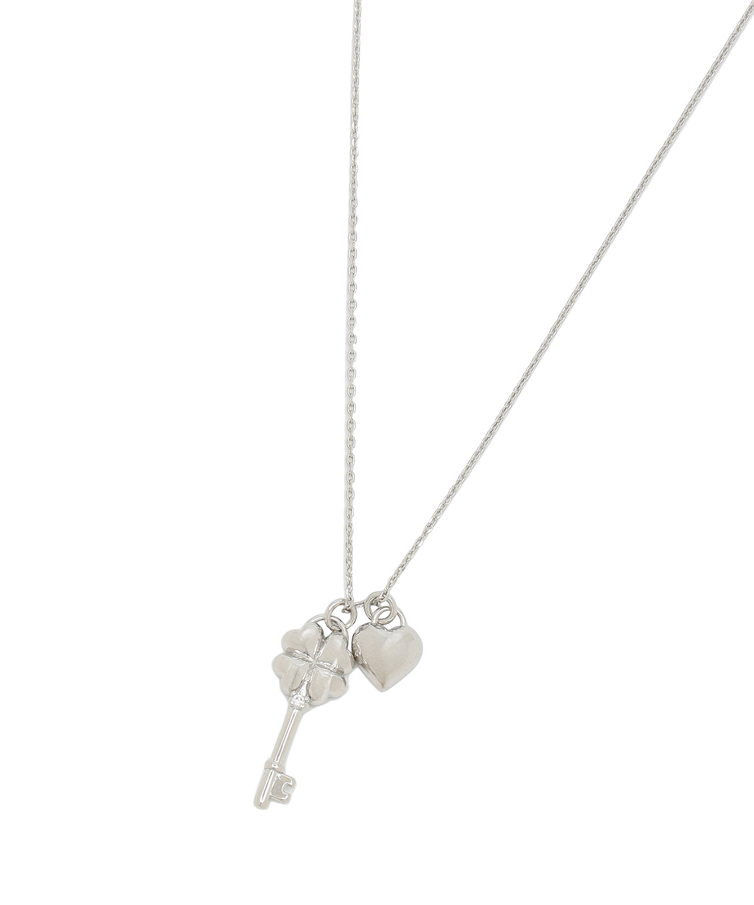 CLOVER HEART KEY NECKLACE - Silver