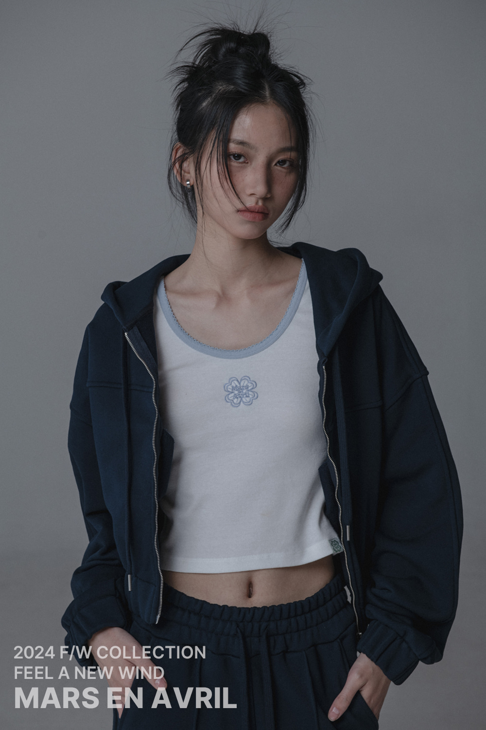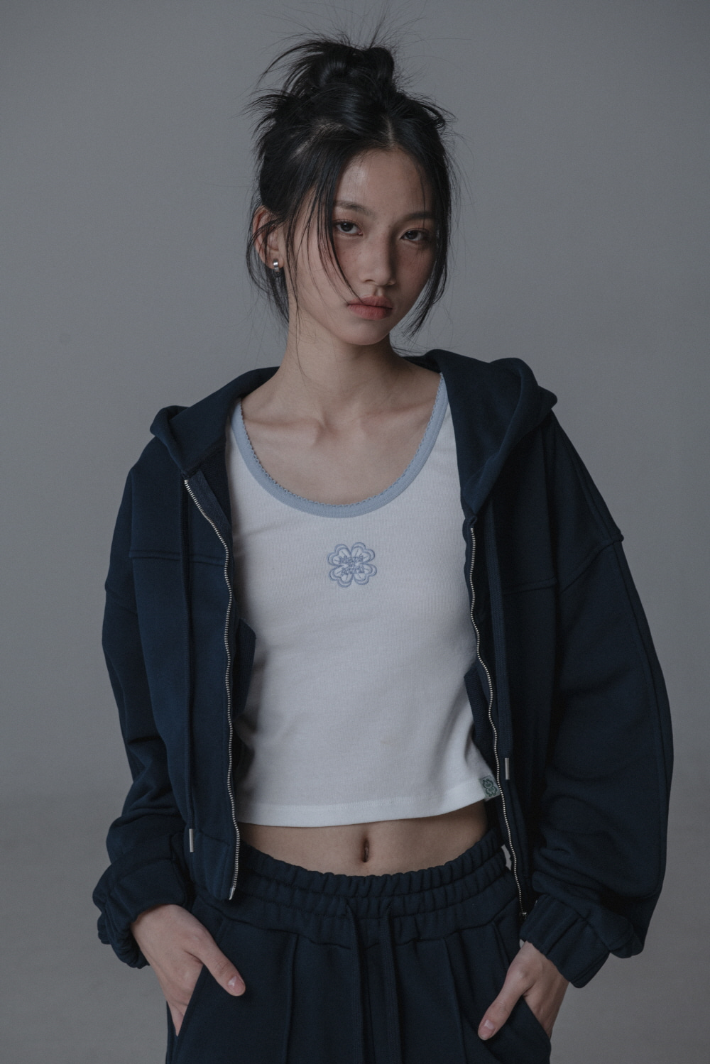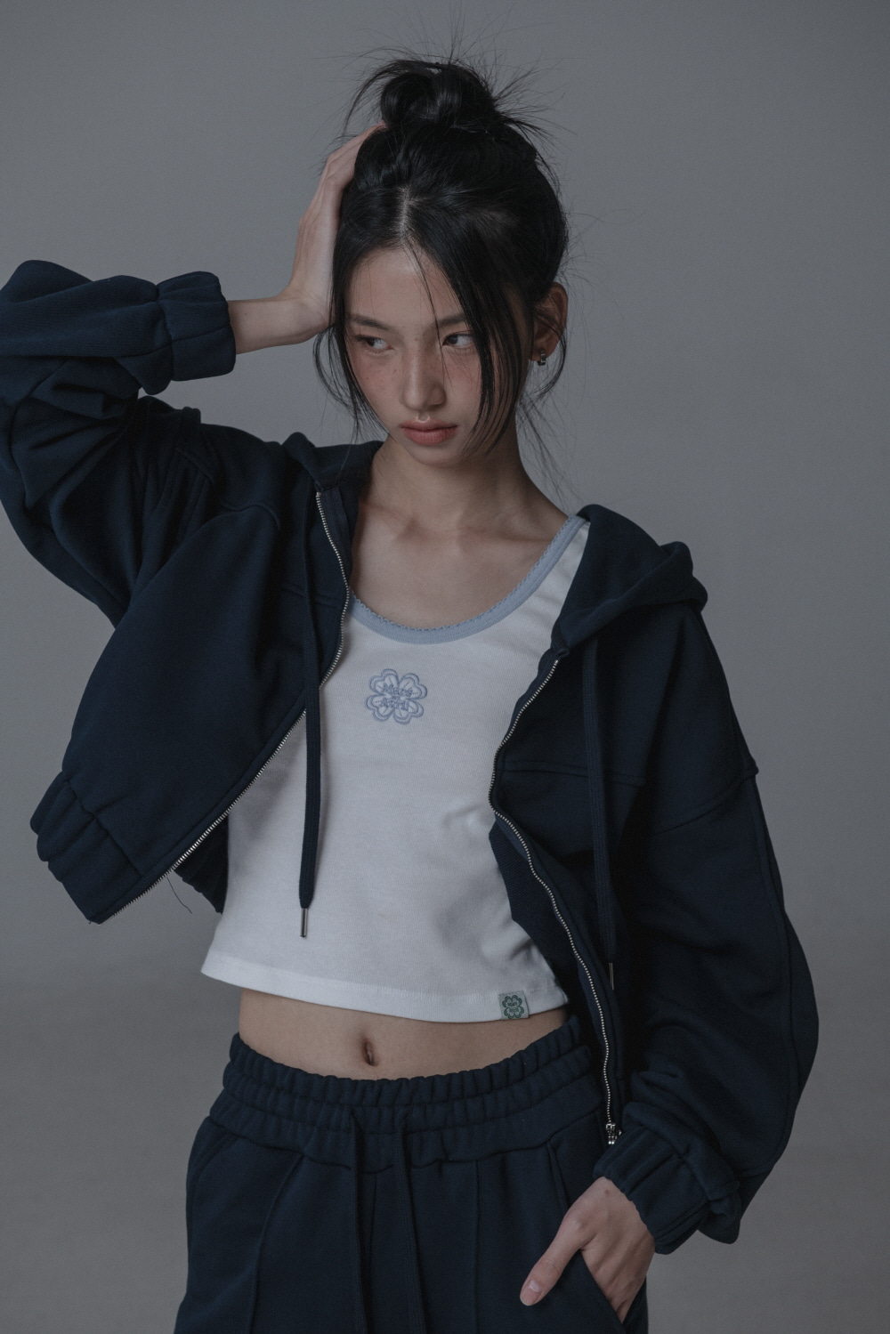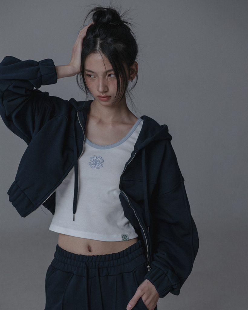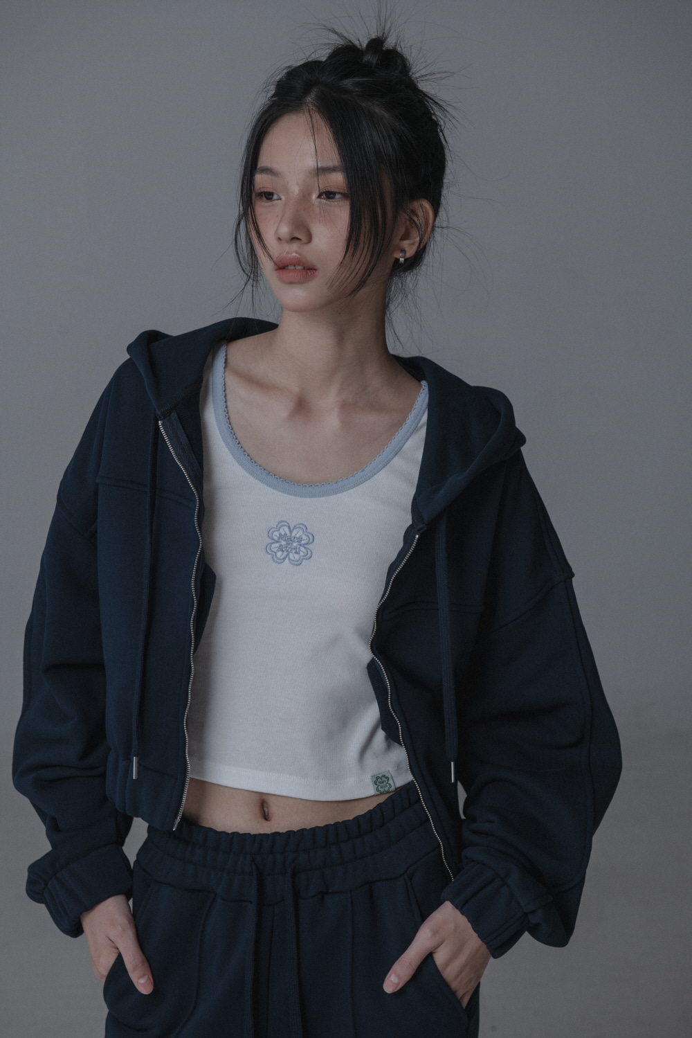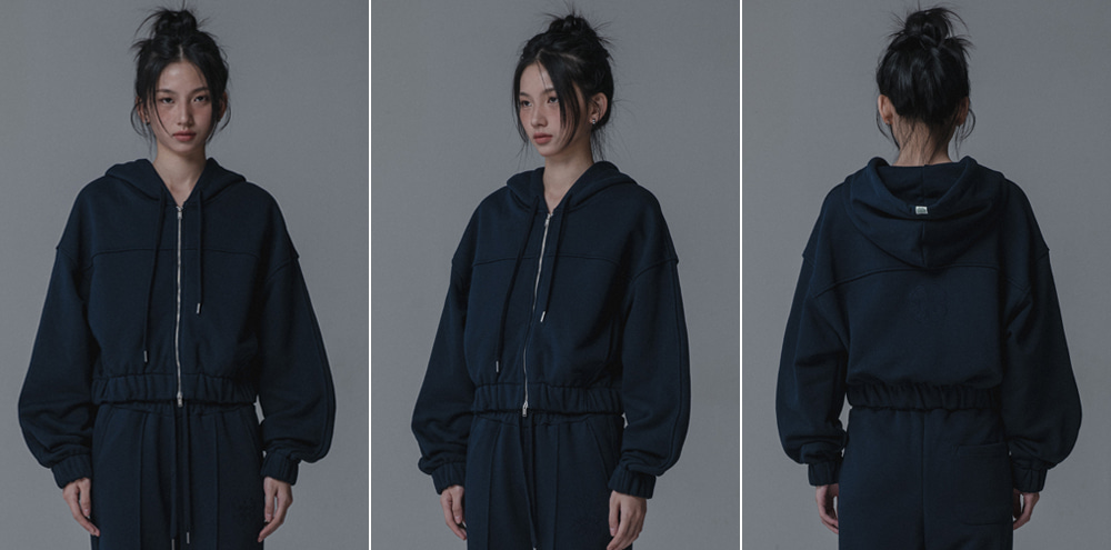 CLOVER CROP TWO-WAY HOODIE ZIPUP_NAVY
