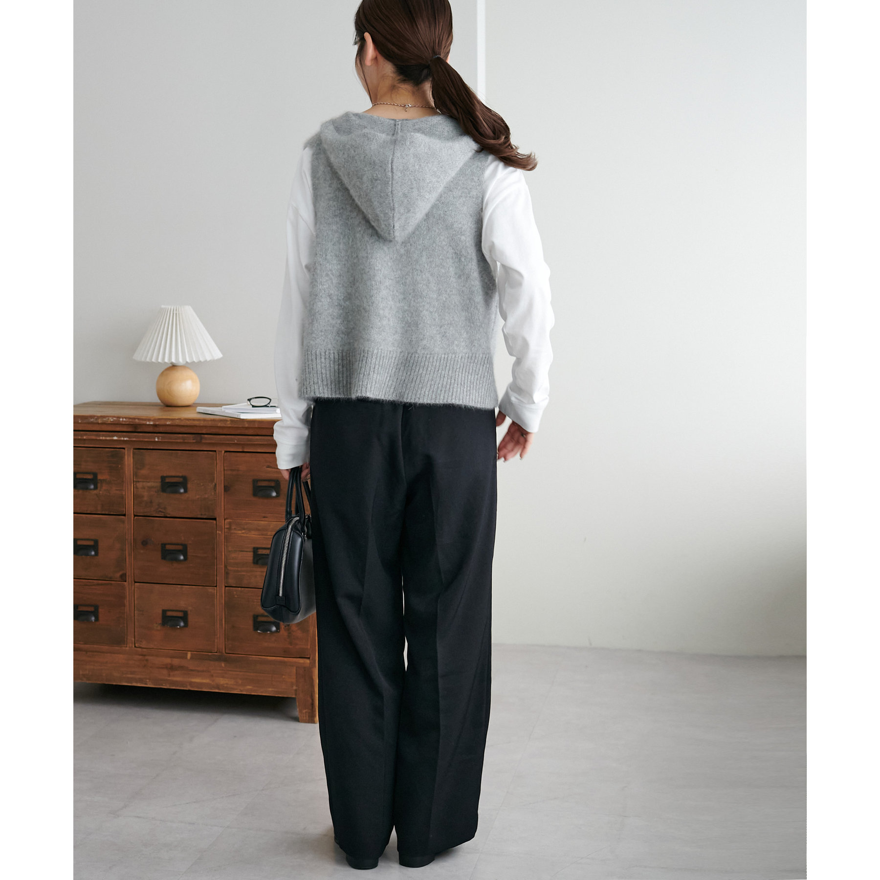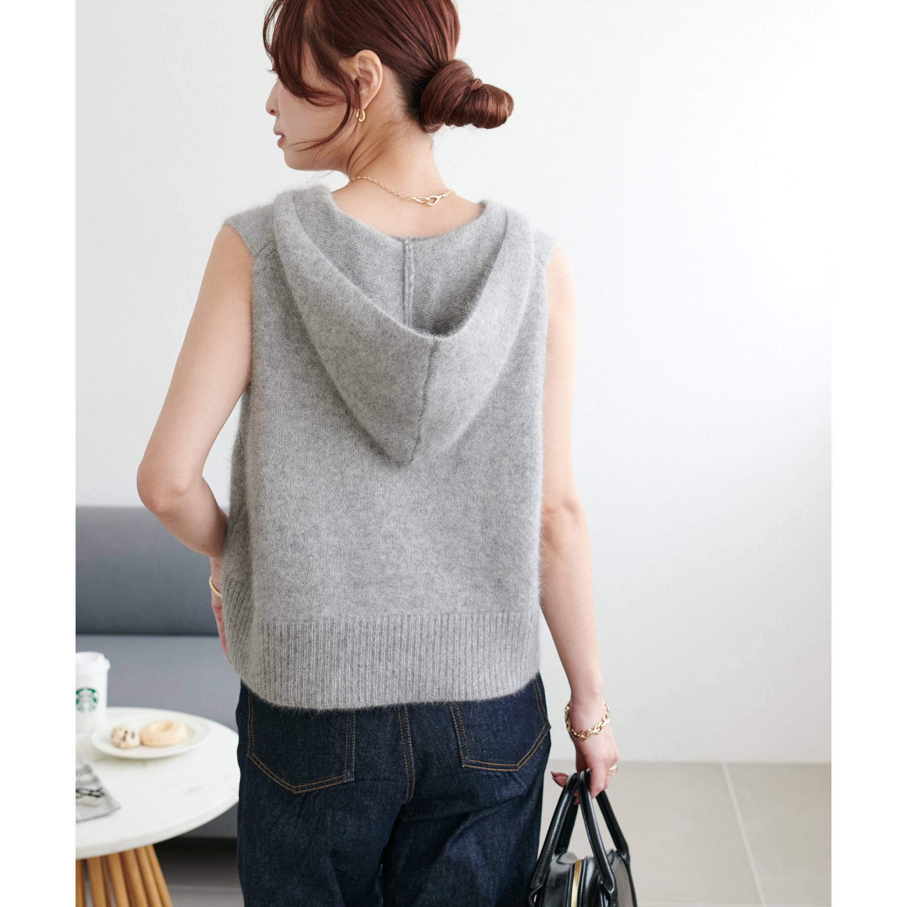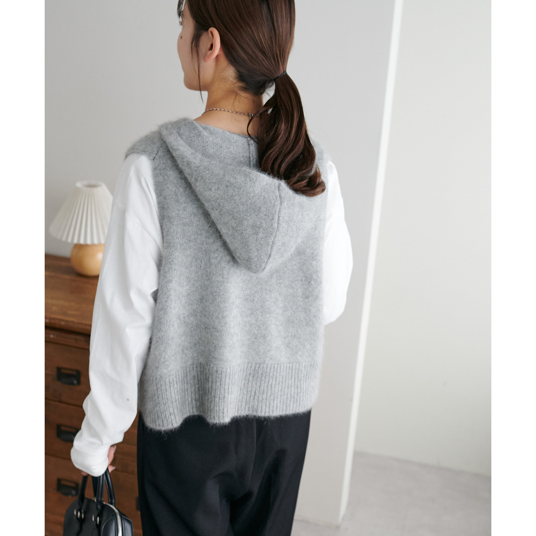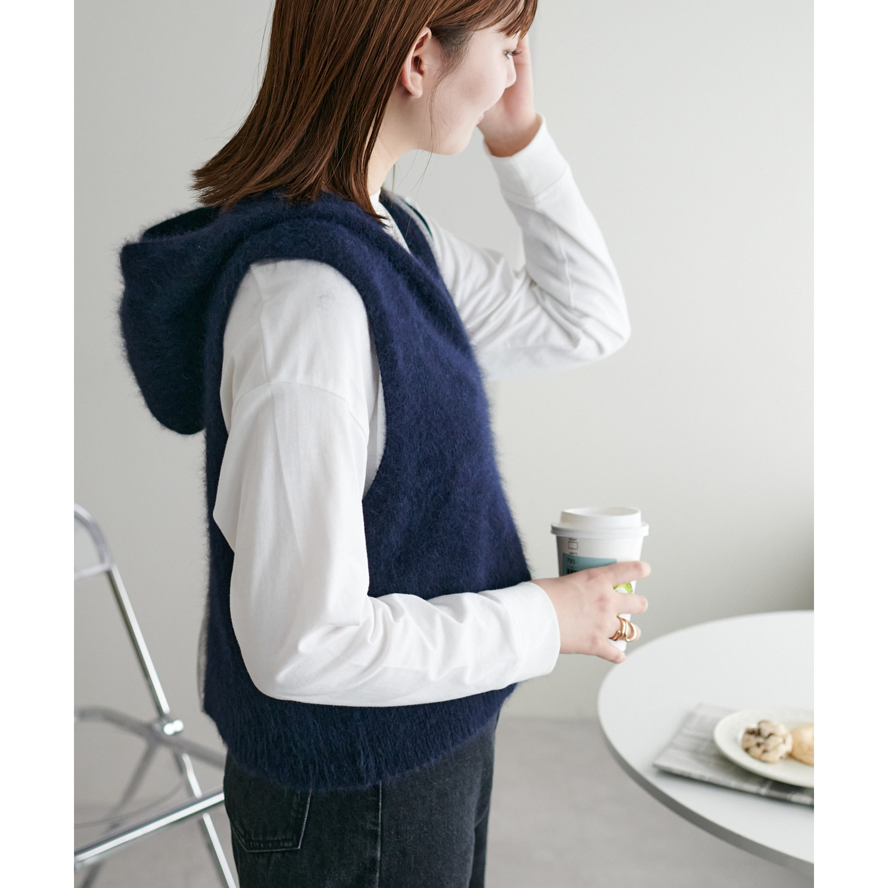 幅広いアイテムと合わせて着回しが楽しめるフードベスト!