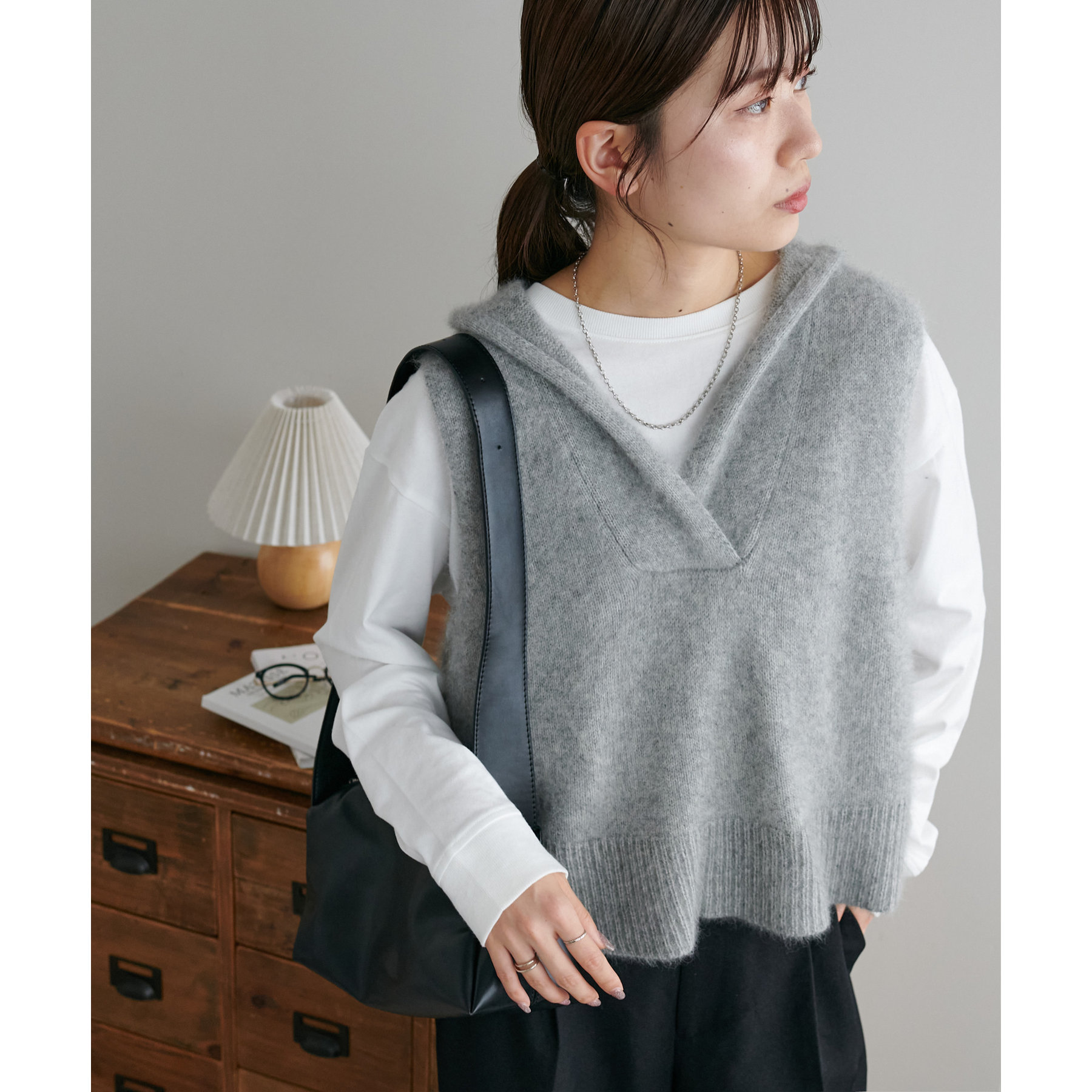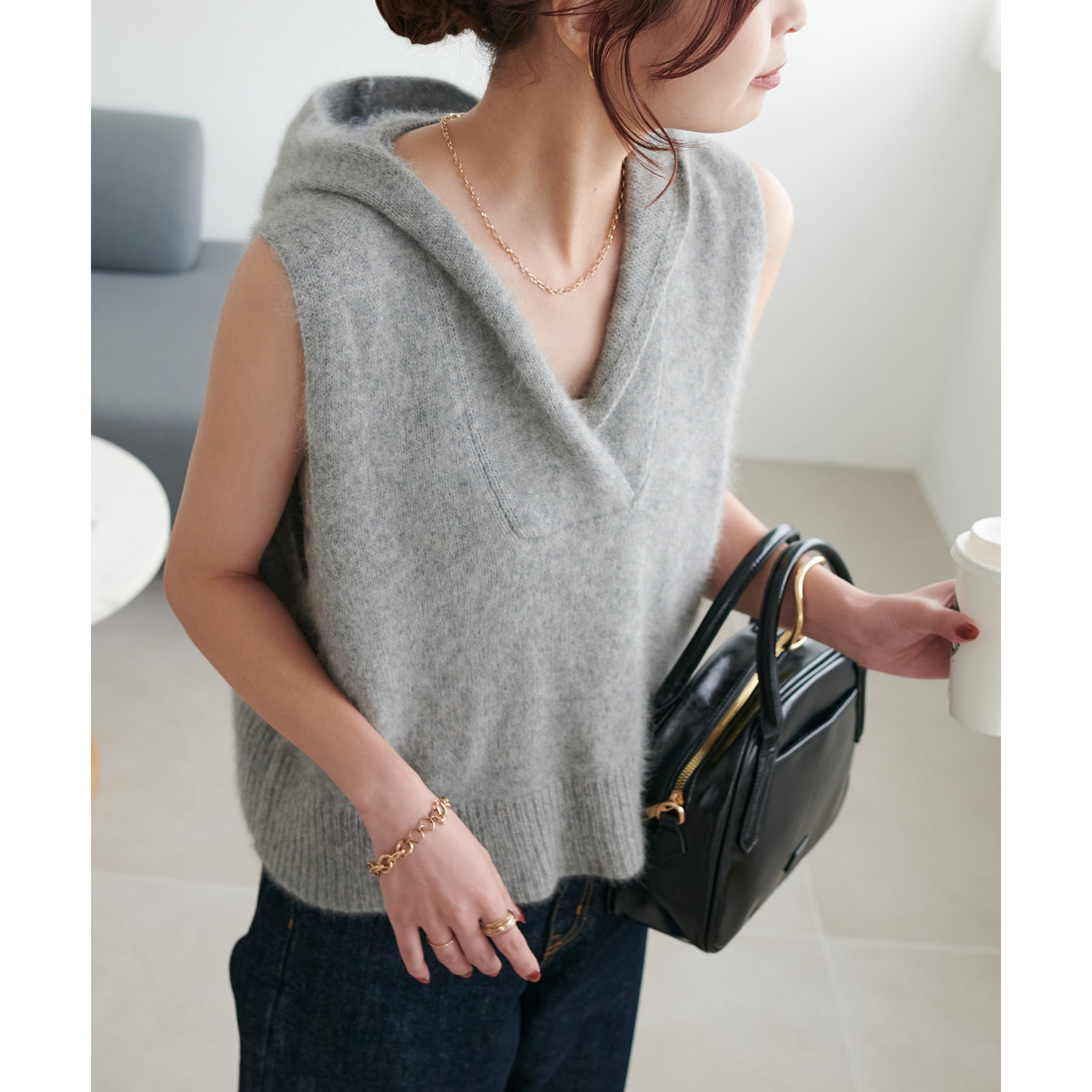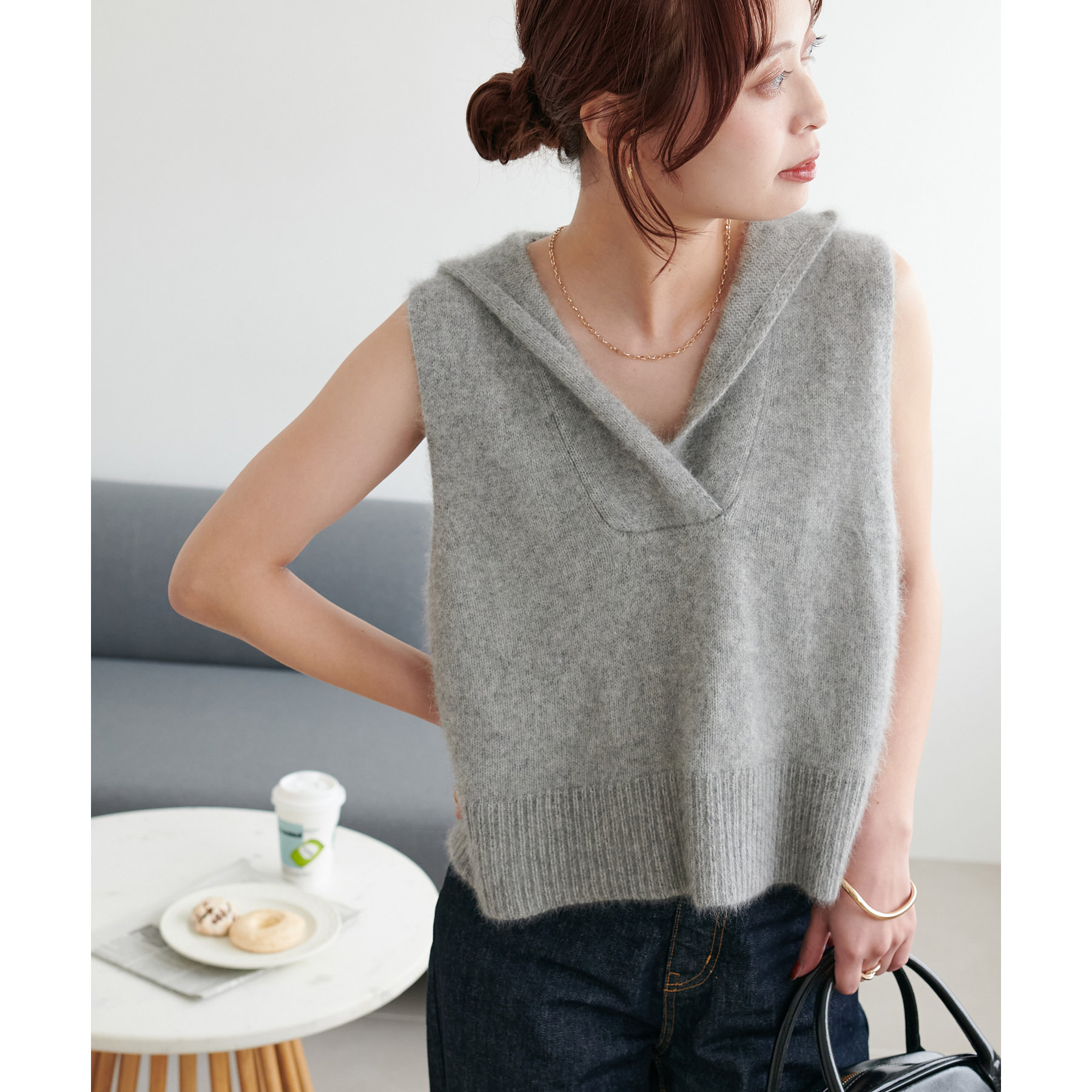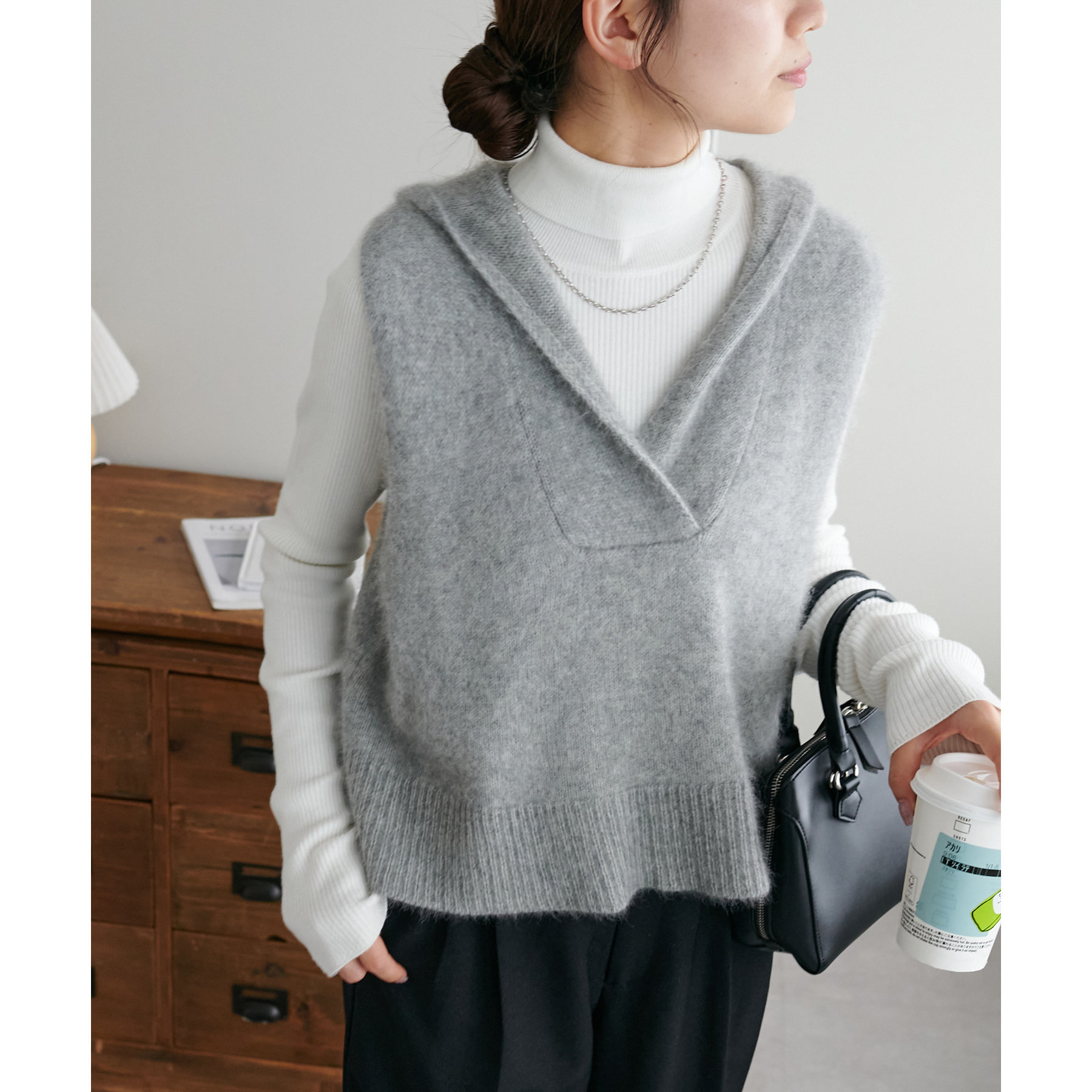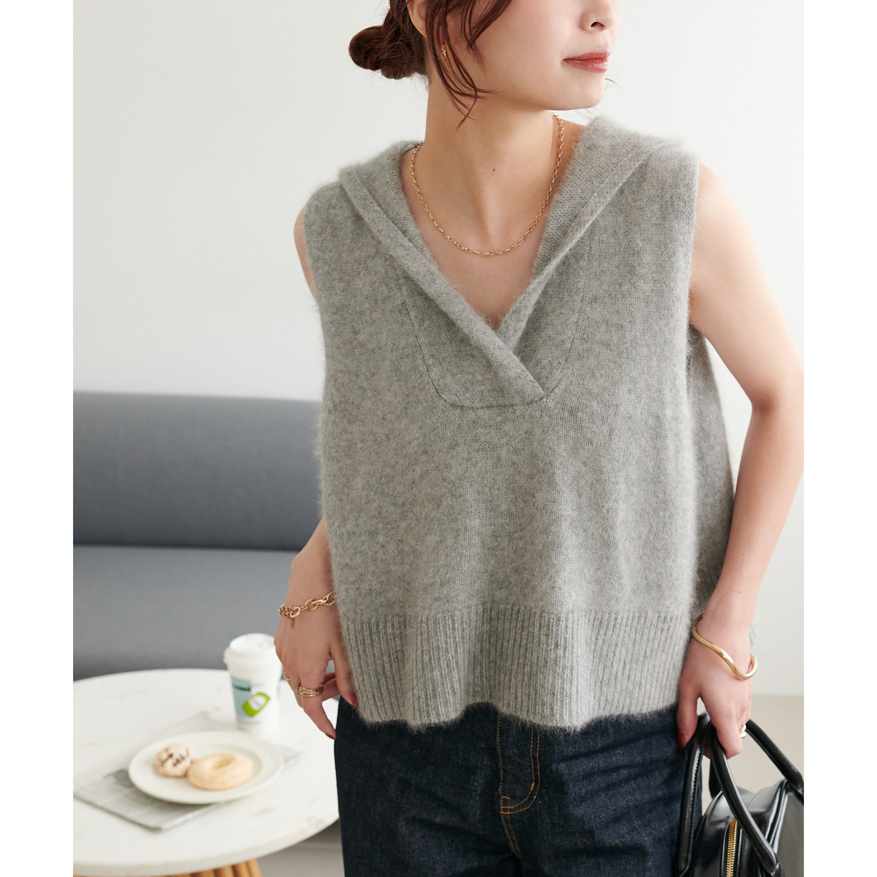 幅広いアイテムと合わせて着回しが楽しめるフードベスト!