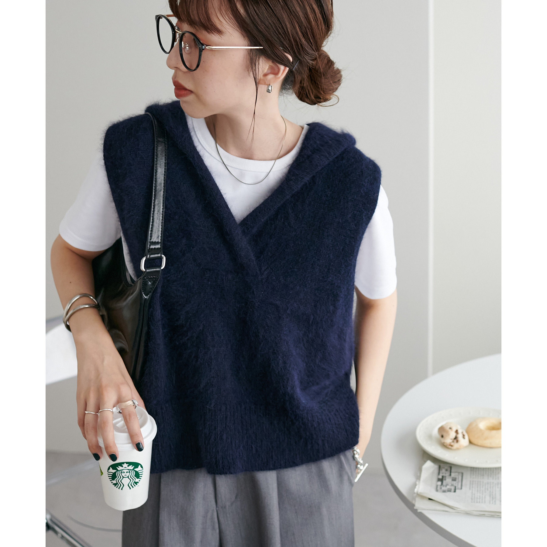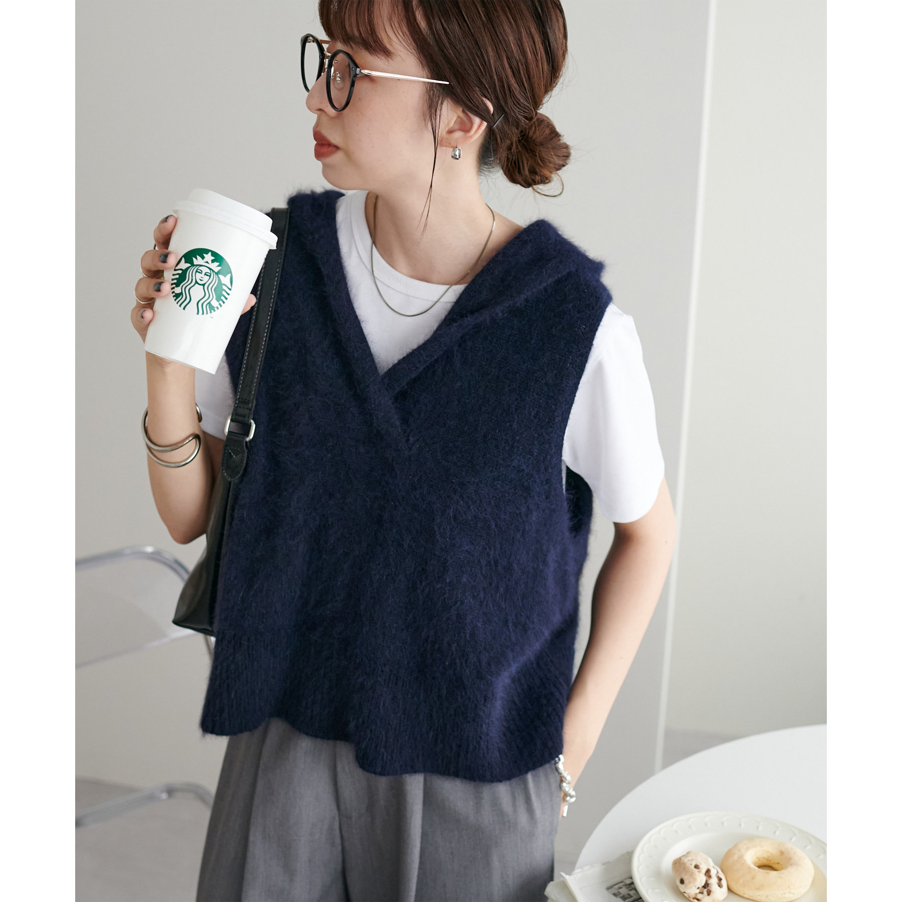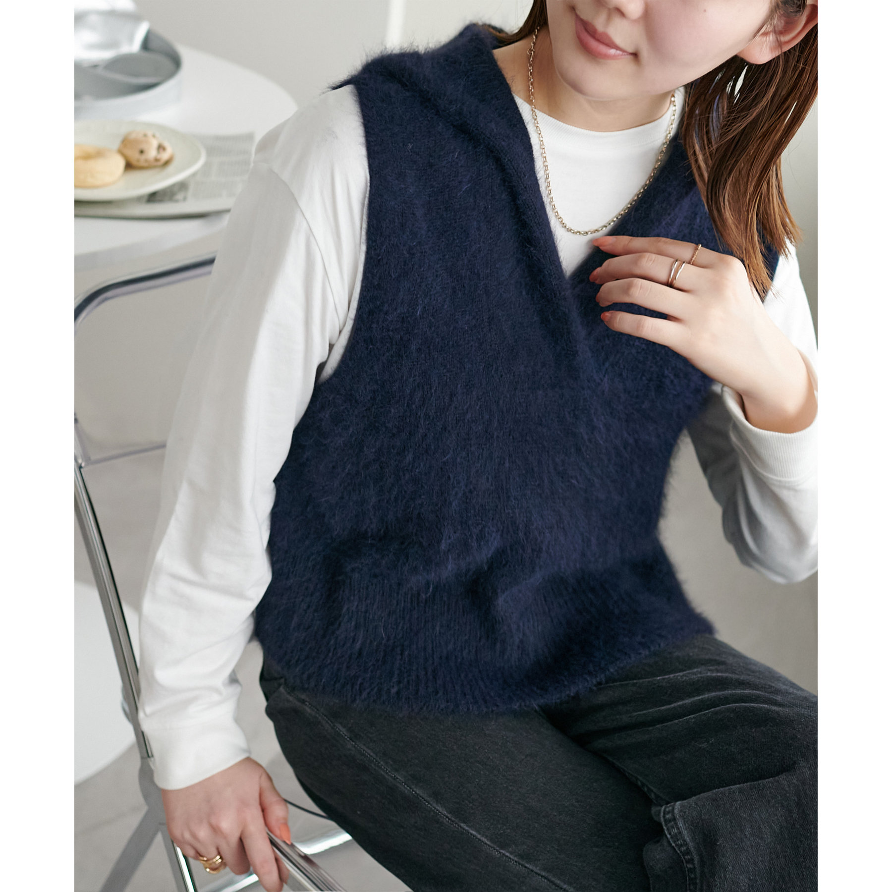 首元はVネック仕様なので、顔回りをすっきりとした印象に!