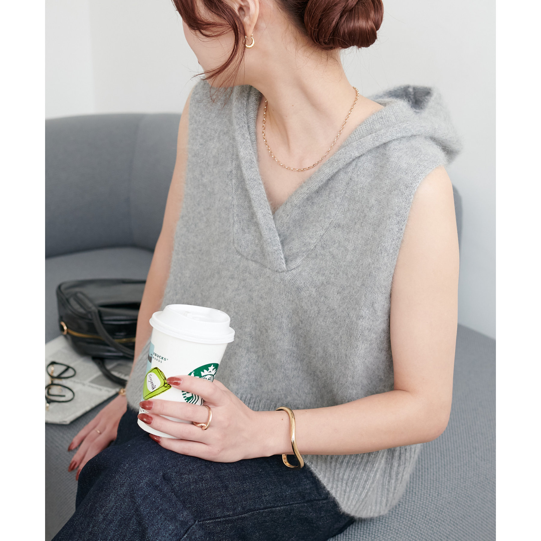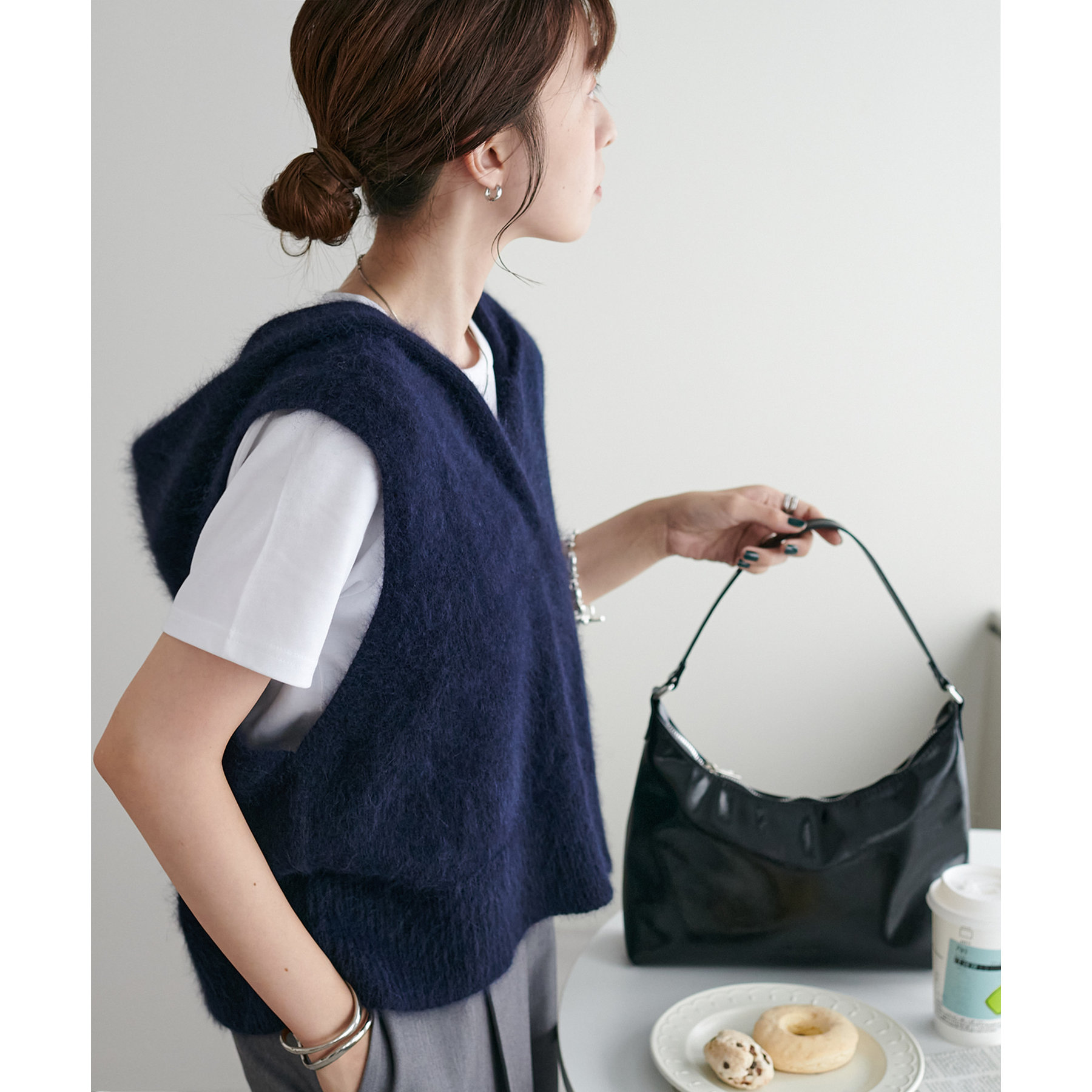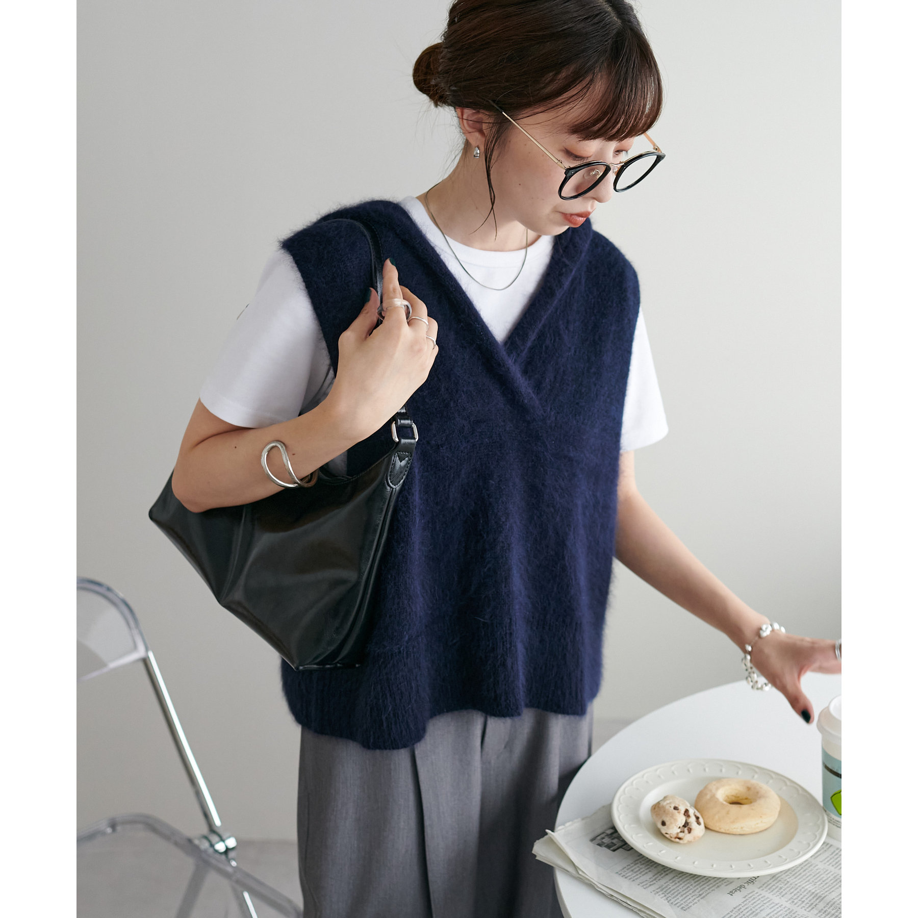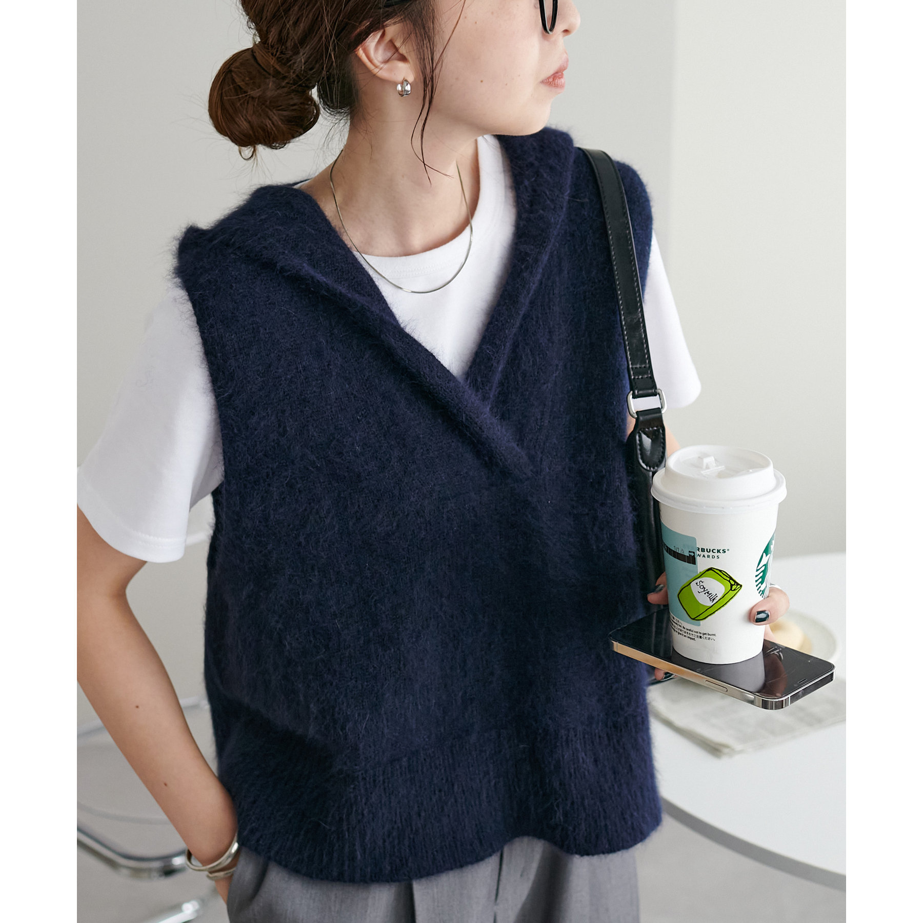 首元はVネック仕様なので、顔回りをすっきりとした印象に!