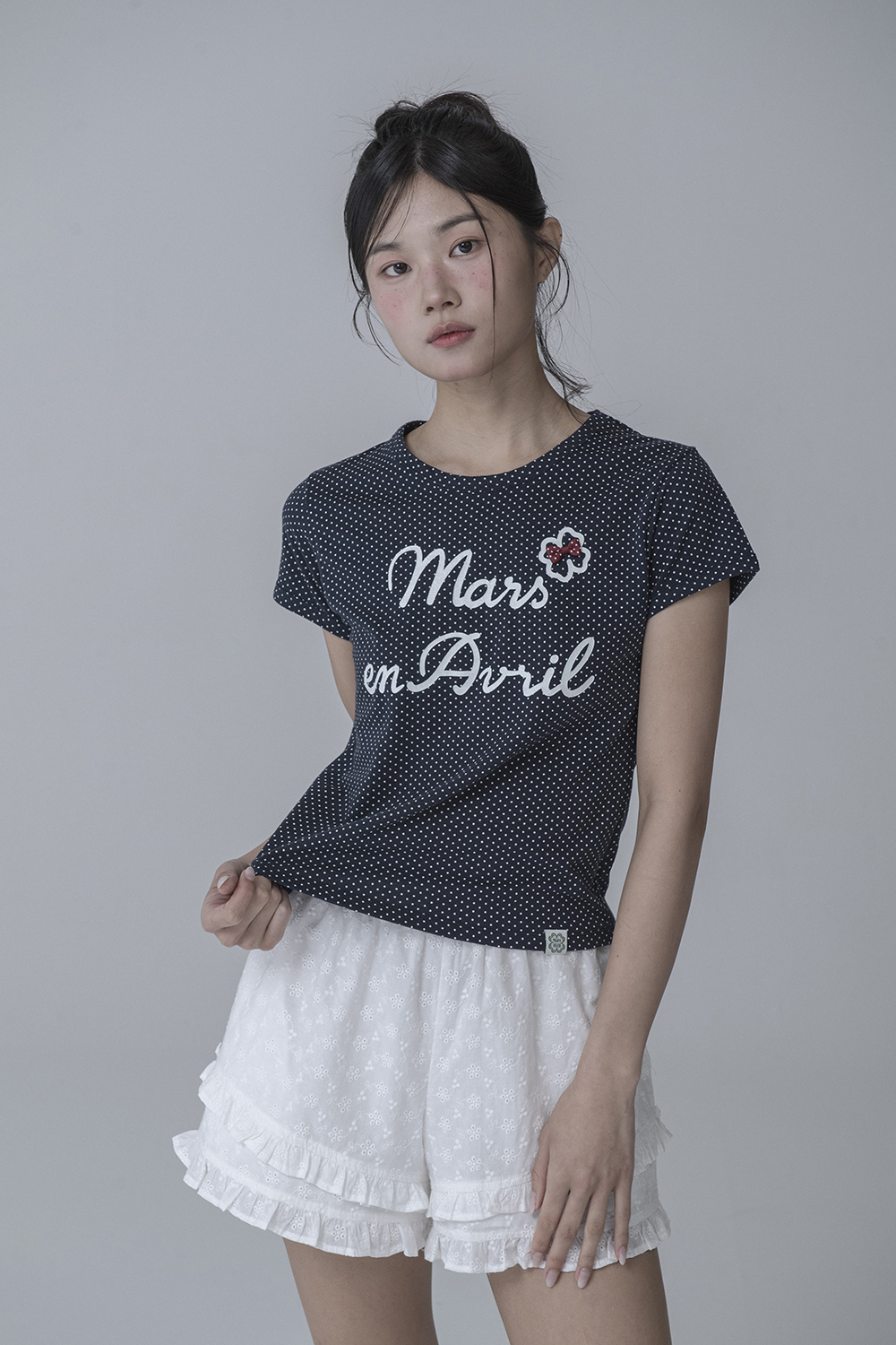 DOT LETTERING RIBBON TSHIRT_NAVY
