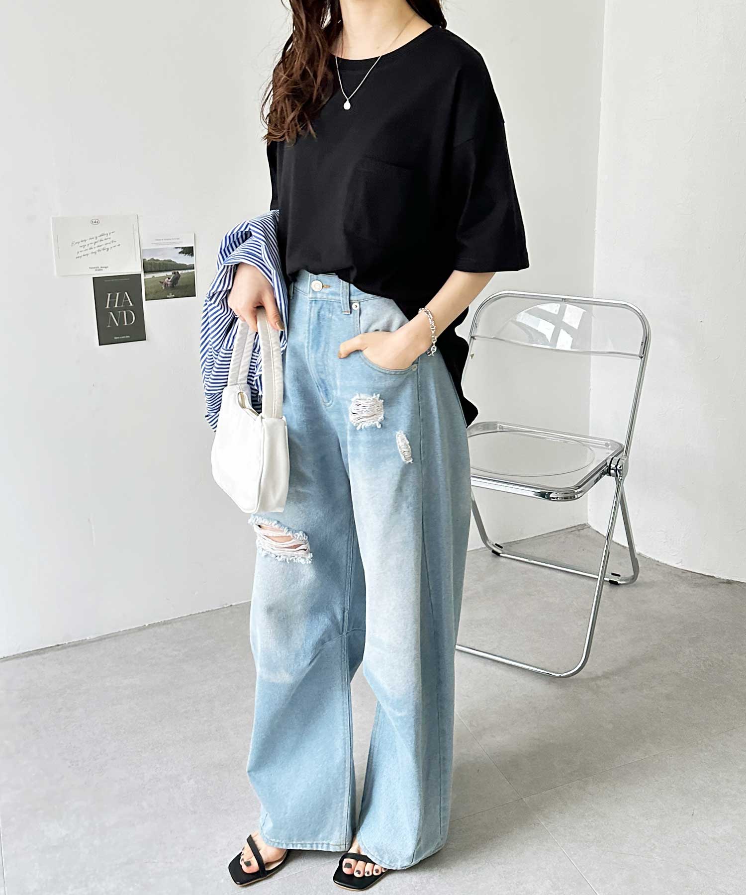 ◯トレンドのビッグTシャツはラウンドヘムで差をつけて