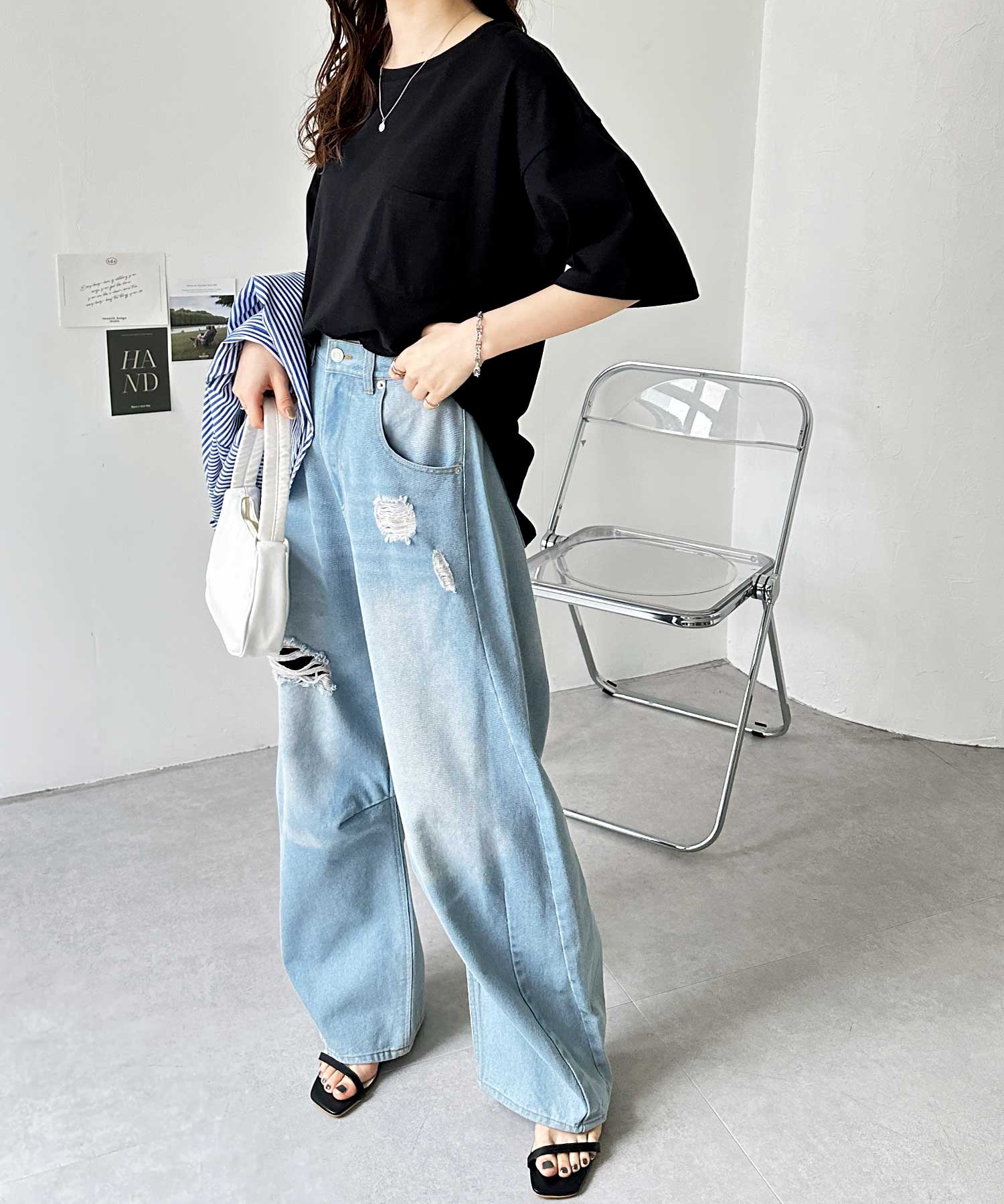 こなれ感のあるワイドシルエットで、ゆるっと感も可愛い。
