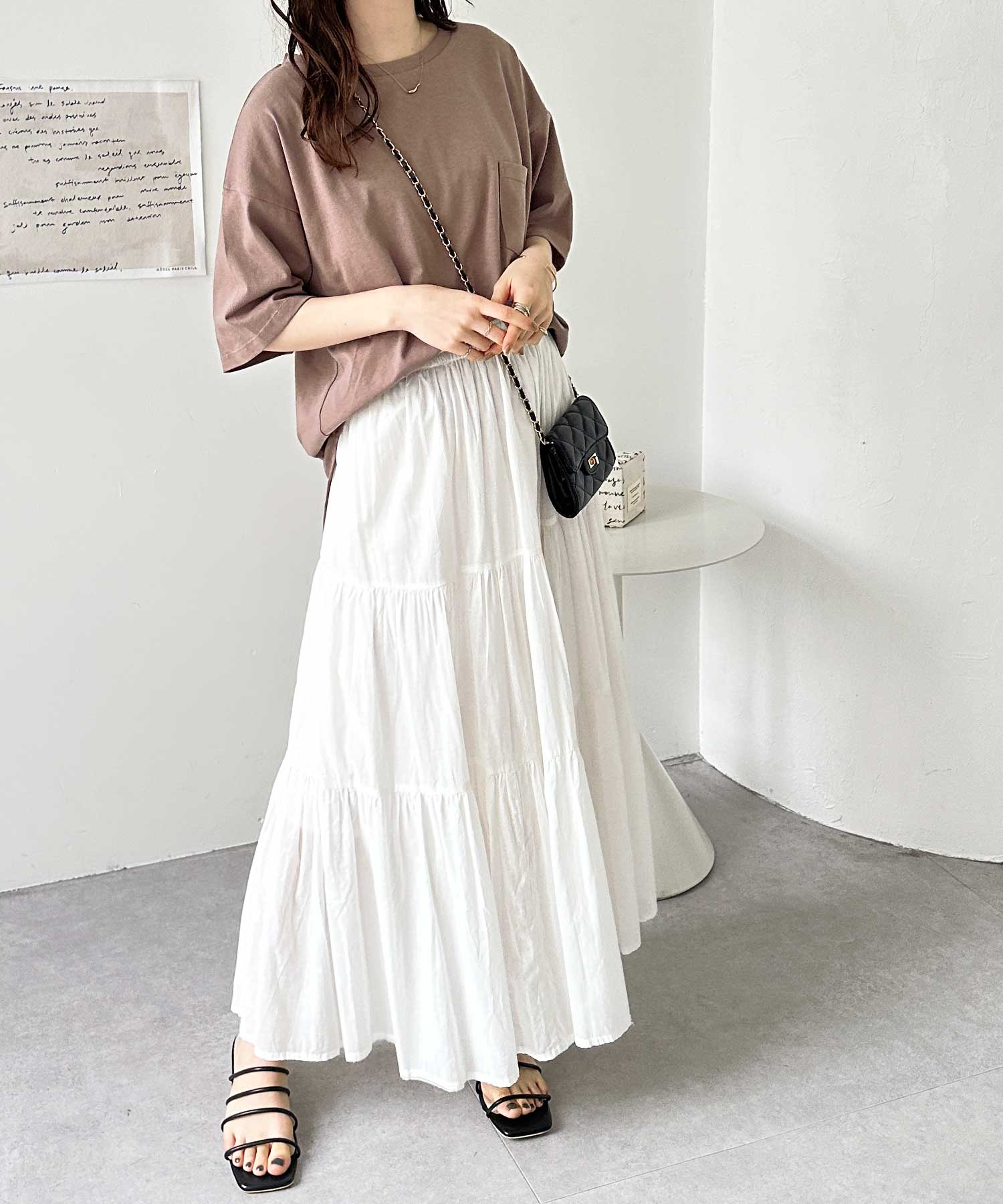 裾を見せるレイヤードスタイルのインナーとして着るのも、おすすめです。