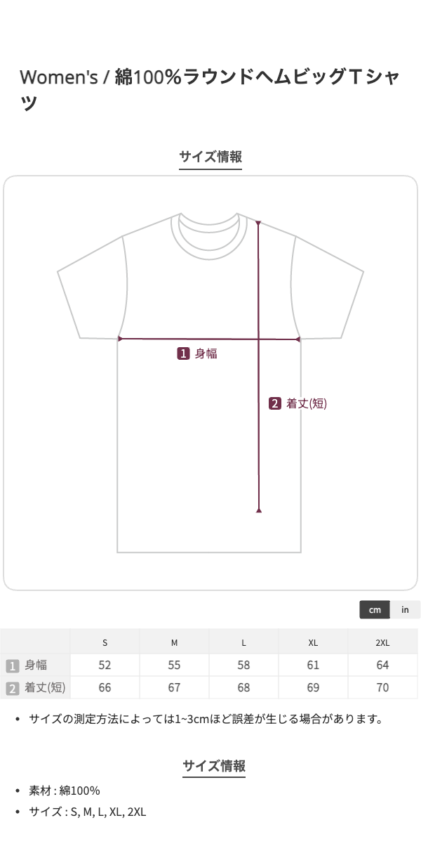 柔らかでしっかりとした綿100%素材のビッグTシャツ。