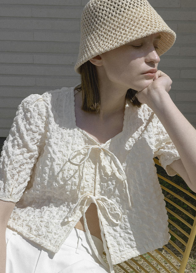(Z-BL-4244)BUBBLE VOLUME TIE BLOUSE