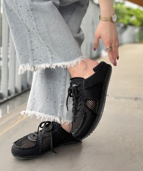 《JaVaジャバコラボ》風を履こう。足元から涼しく軽やかに!メッシュデザインスライドオンスニーカー jv1129022