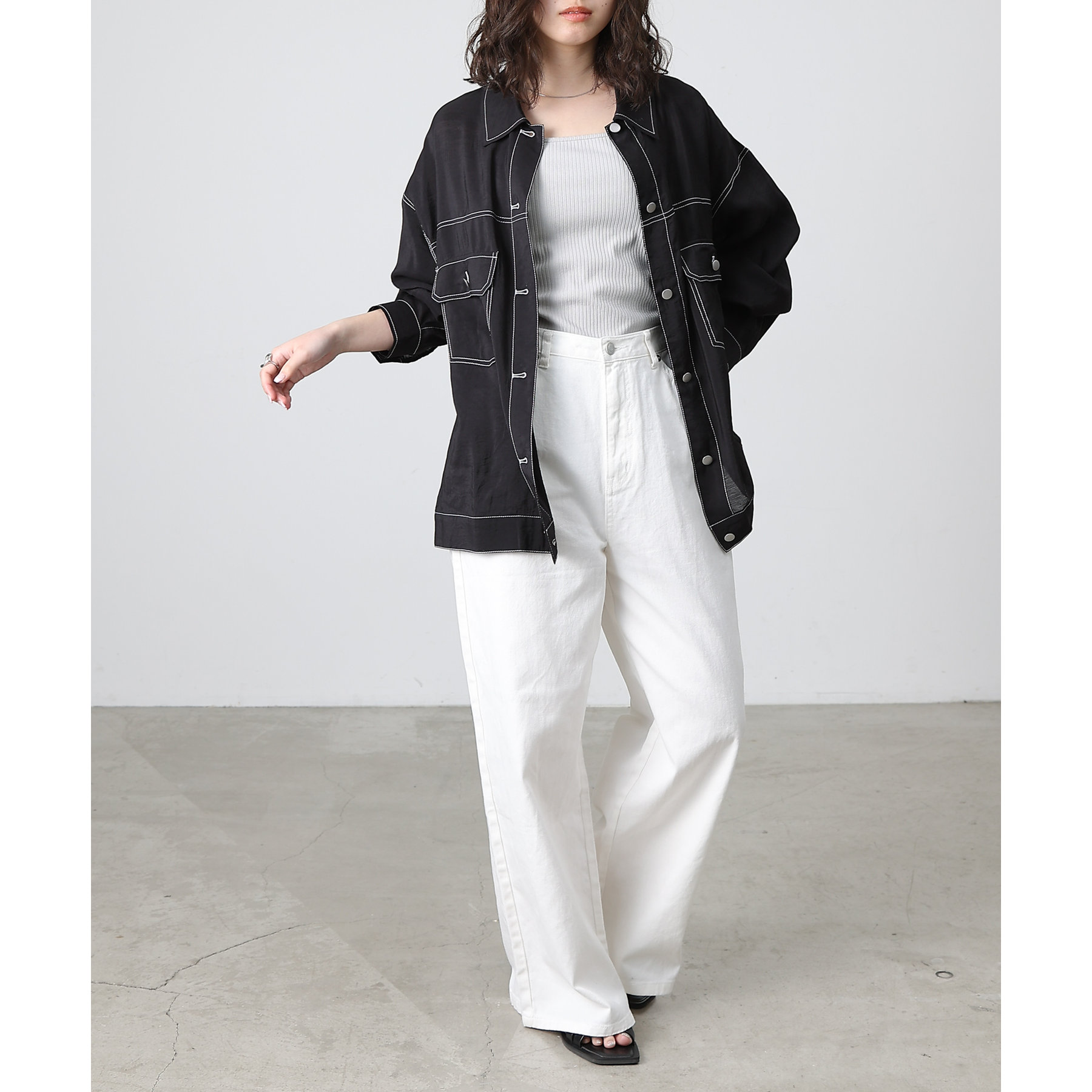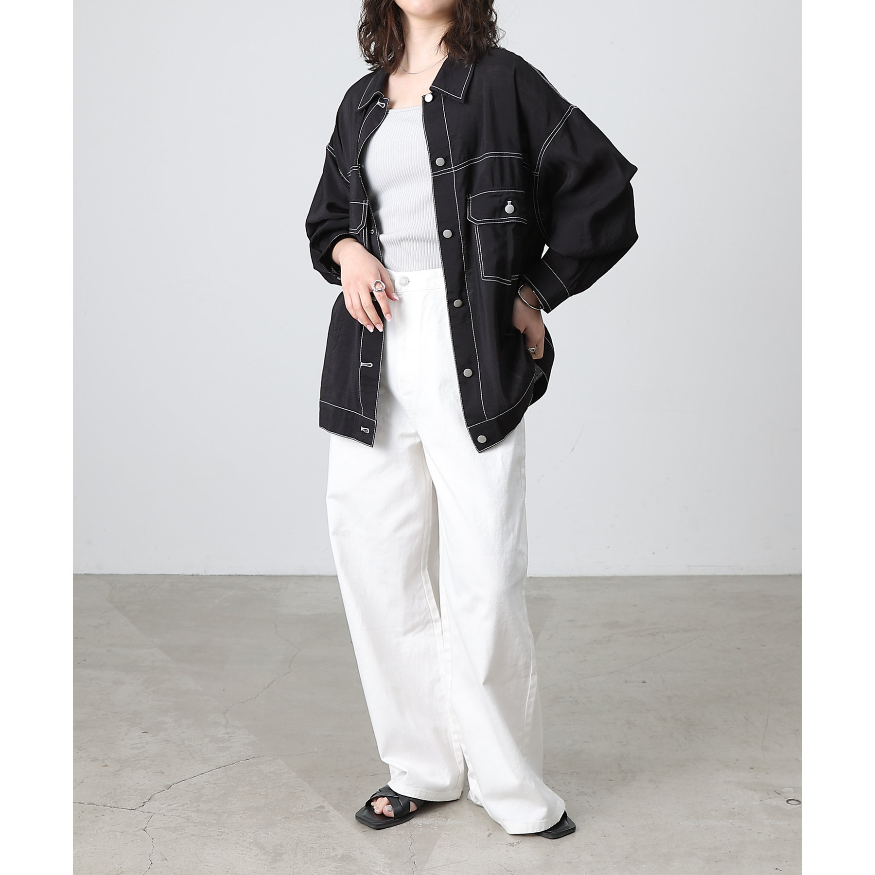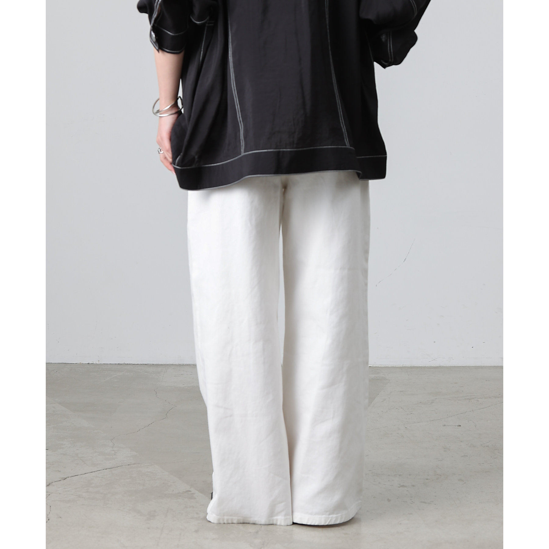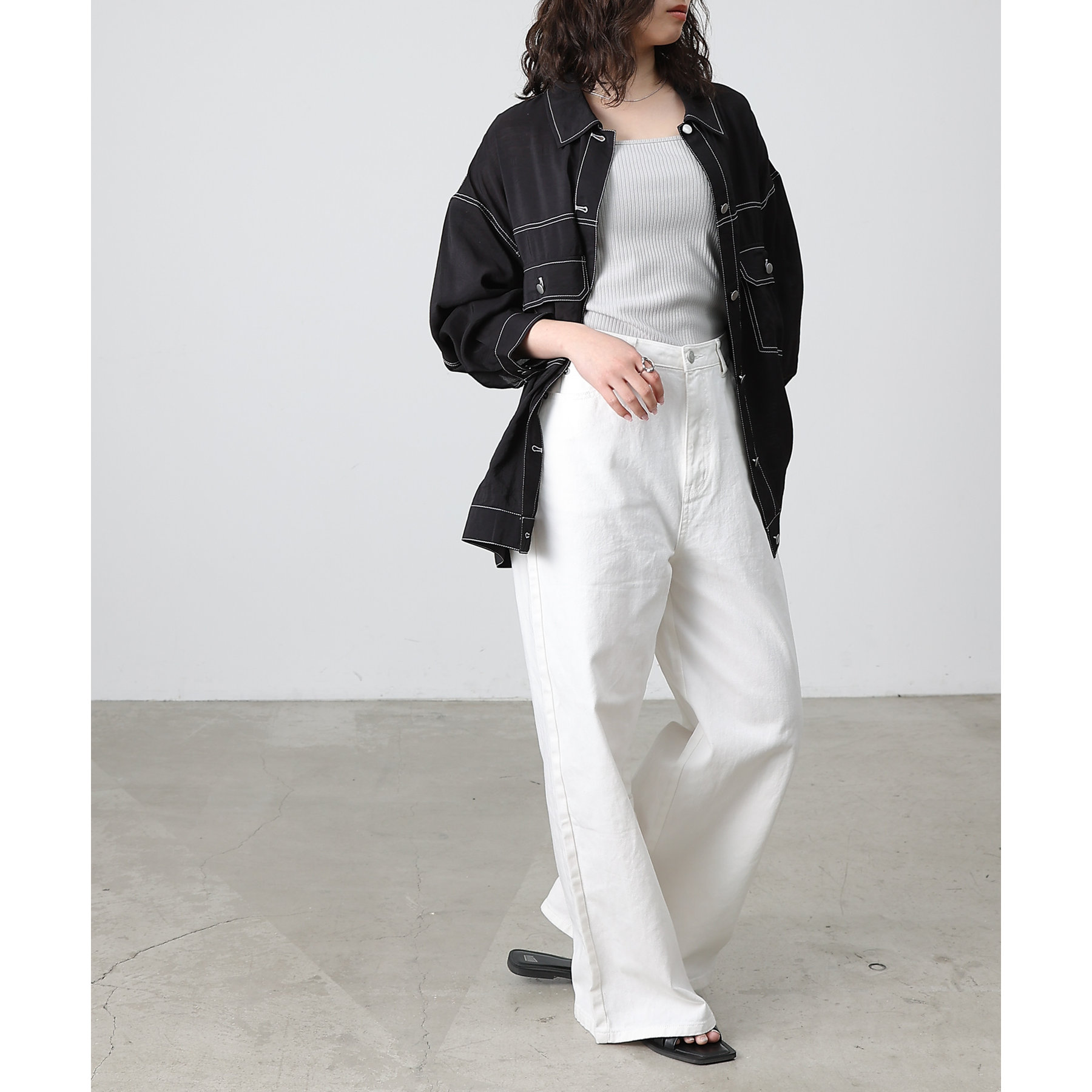 体系を拾いにくいワイドなシルエットがスタイルアップ効果を演出。