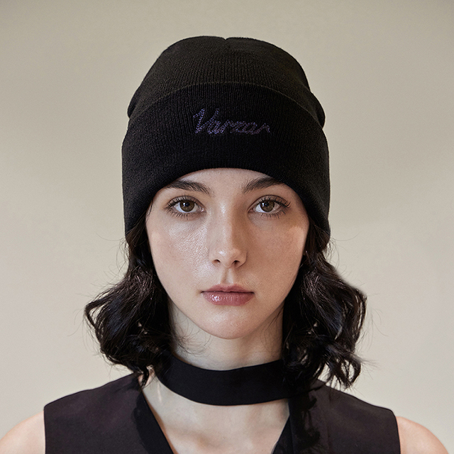 VARZAR Chain Logo Natural Beanie Black
