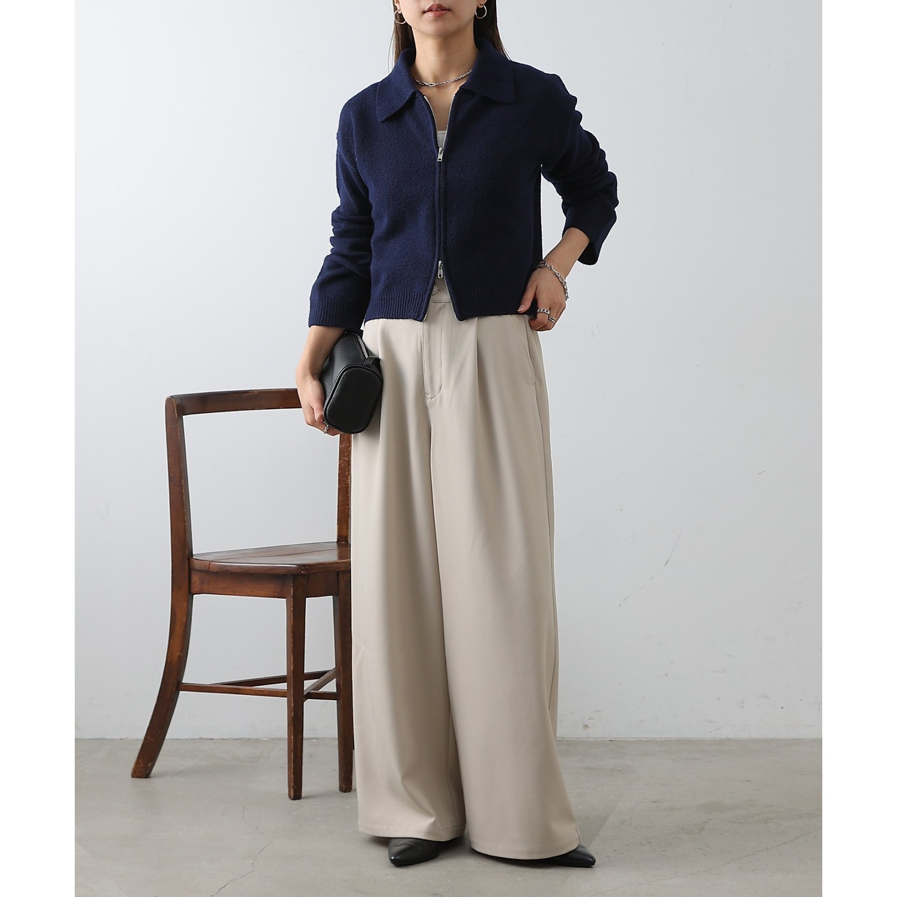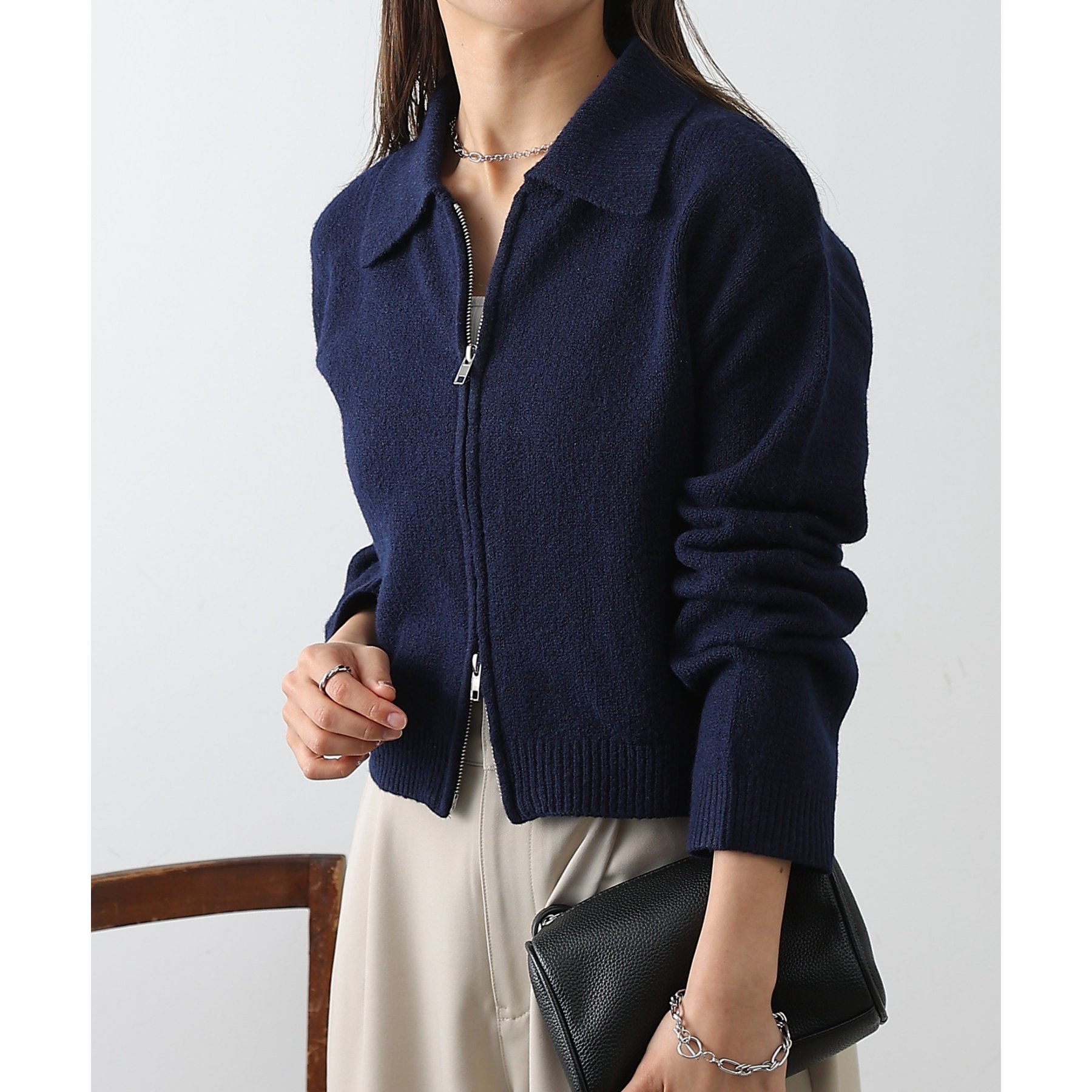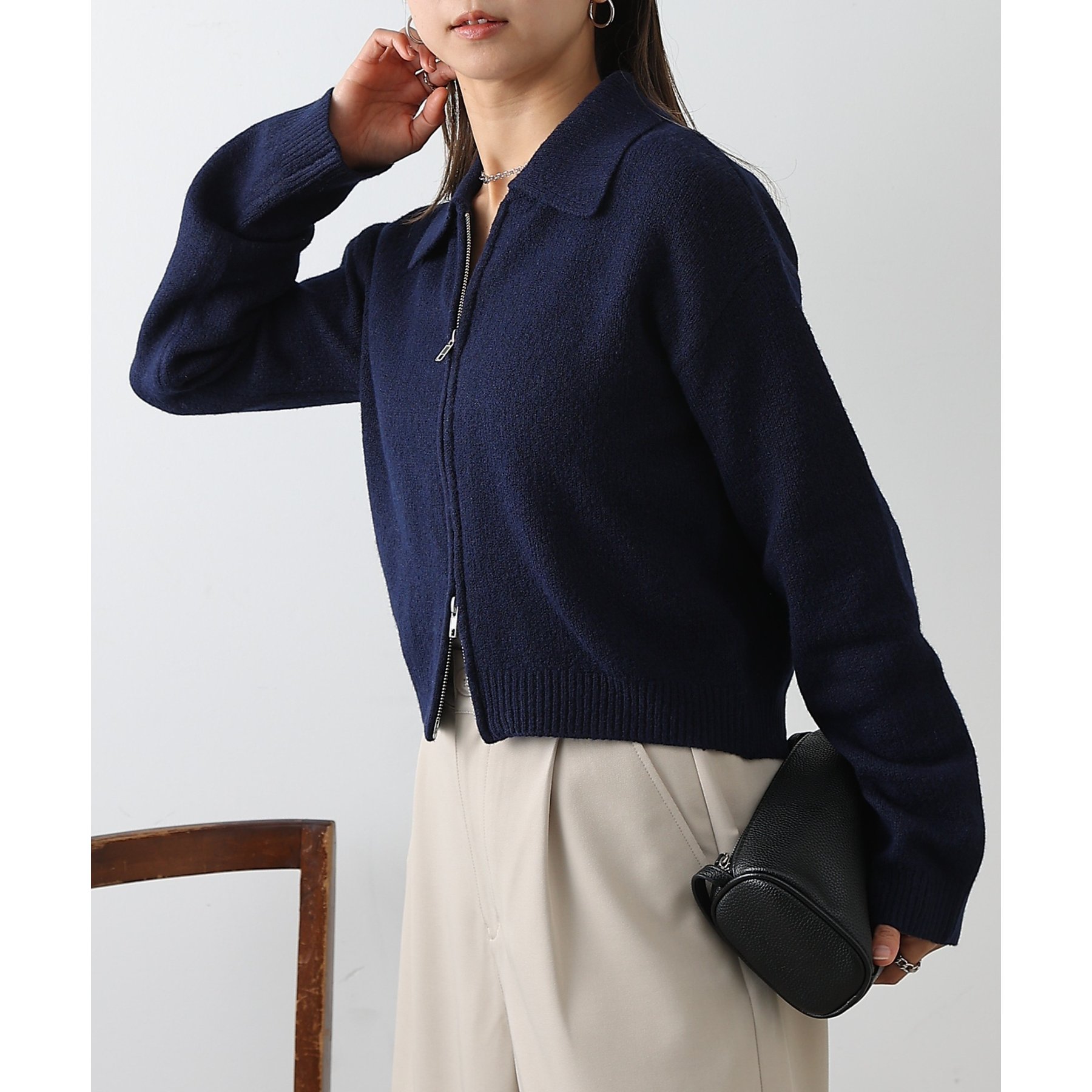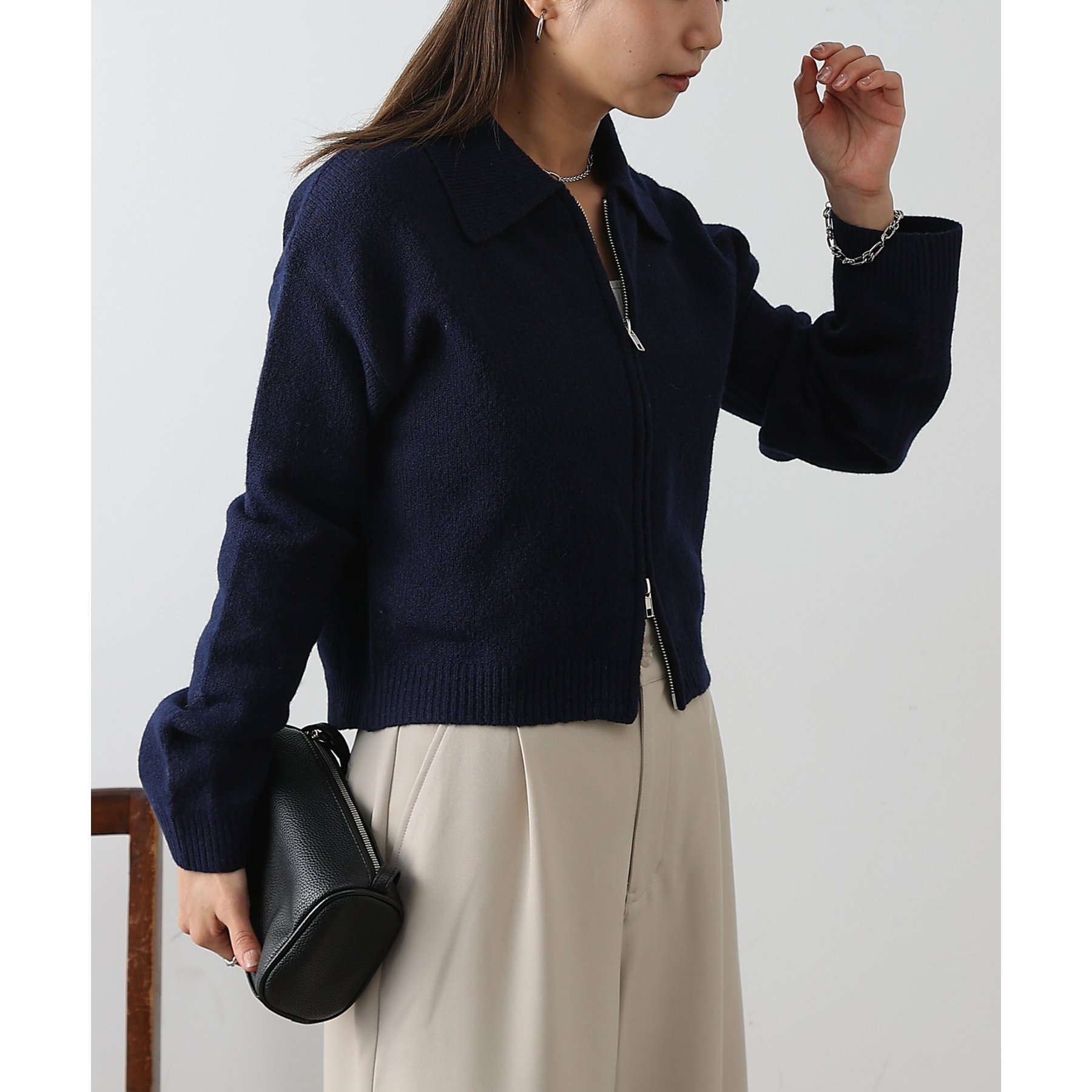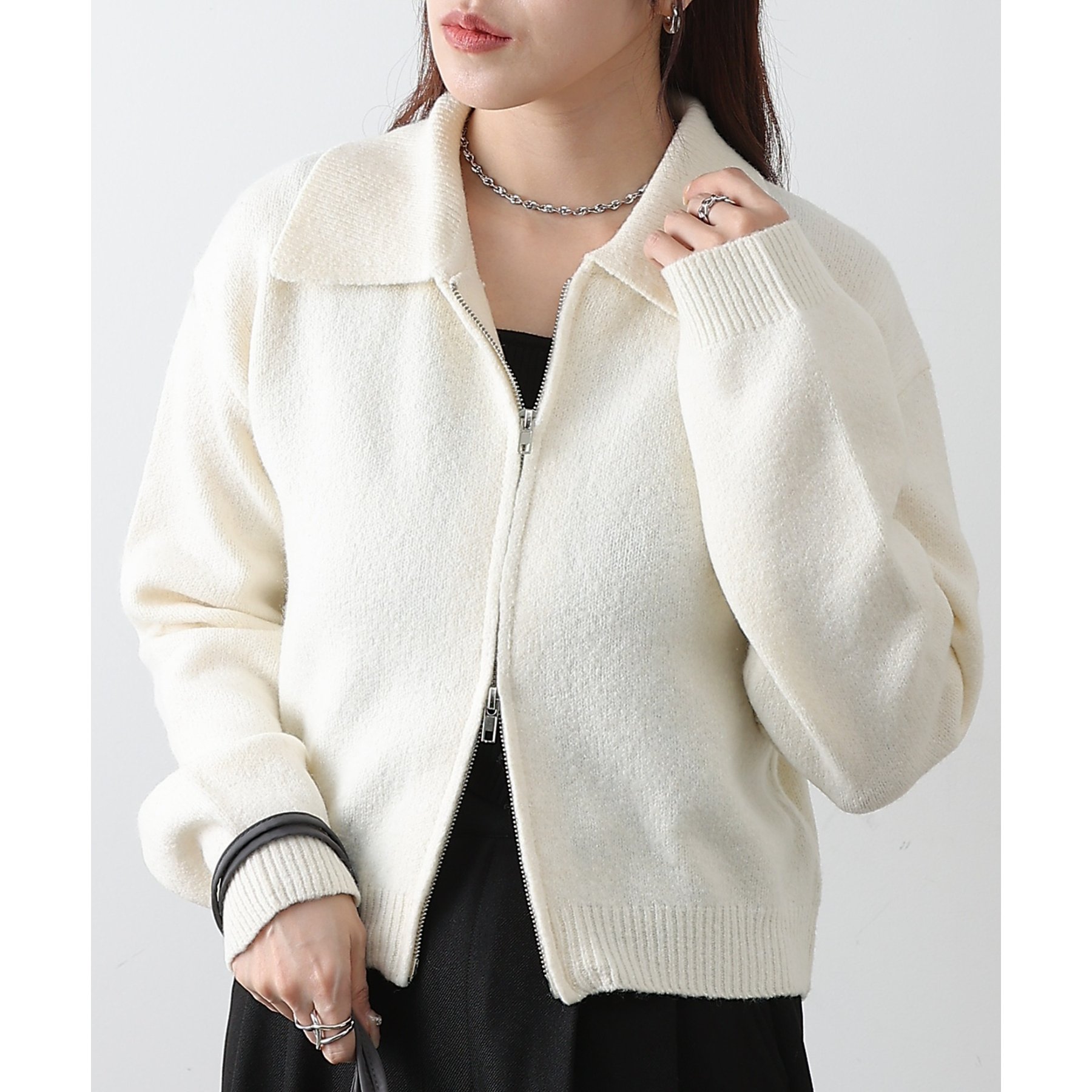 トレンドのダブルジップでお好みのシルエットを楽しめるだけでなく、体のラインにフィットするようなシルエットなので自然とスタイルアップ見えが叶う一枚◎立体的な襟デザインは顔まわりをすっきり見せてくれるのでスタイリングにほどよい抜け感をプラスしてくれます。