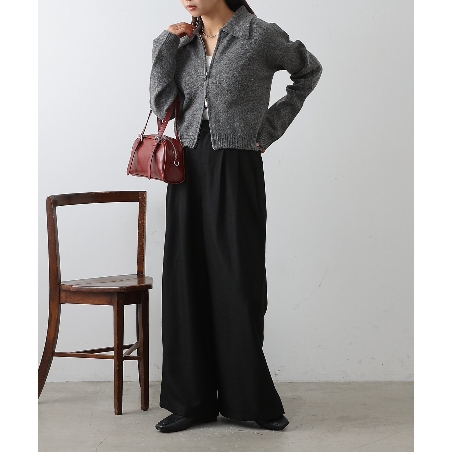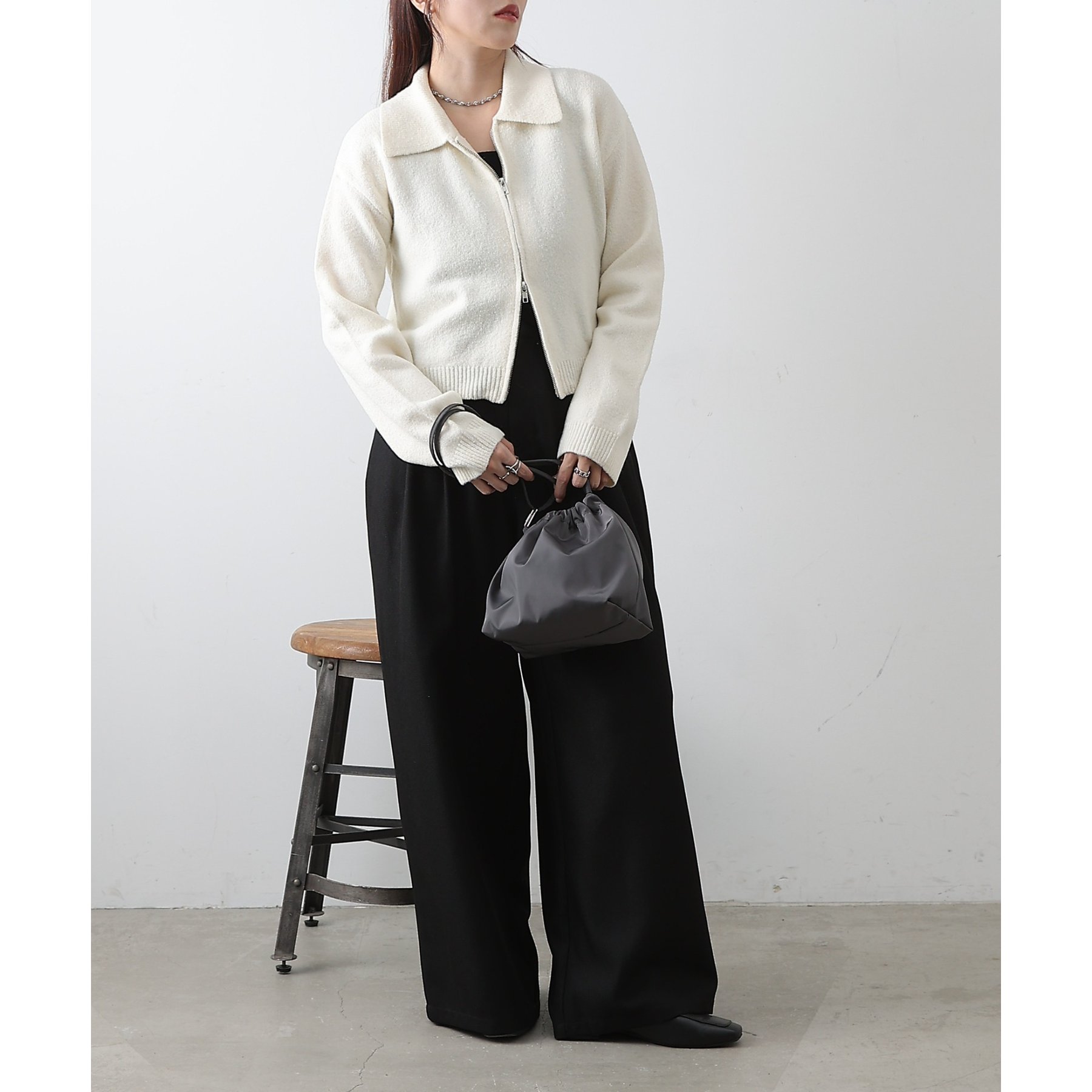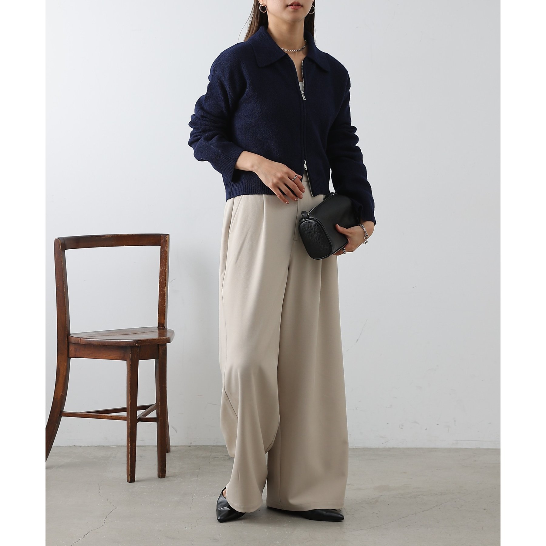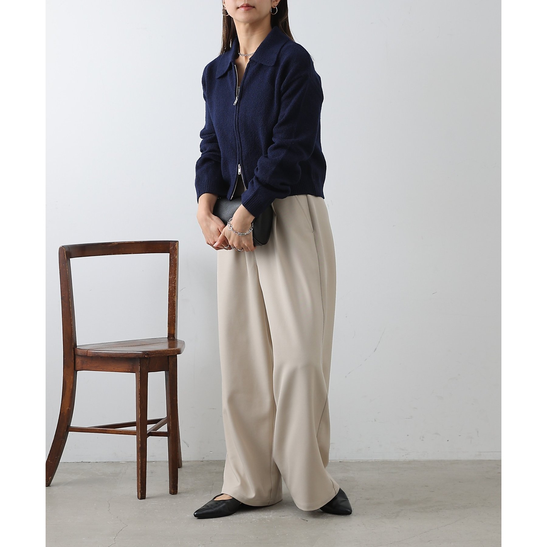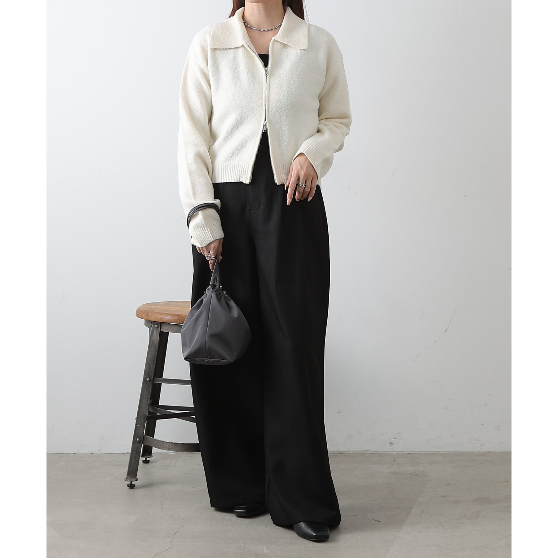 トレンドのダブルジップでお好みのシルエットを楽しめるだけでなく、体のラインにフィットするようなシルエットなので自然とスタイルアップ見えが叶う一枚◎立体的な襟デザインは顔まわりをすっきり見せてくれるのでスタイリングにほどよい抜け感をプラスしてくれます。