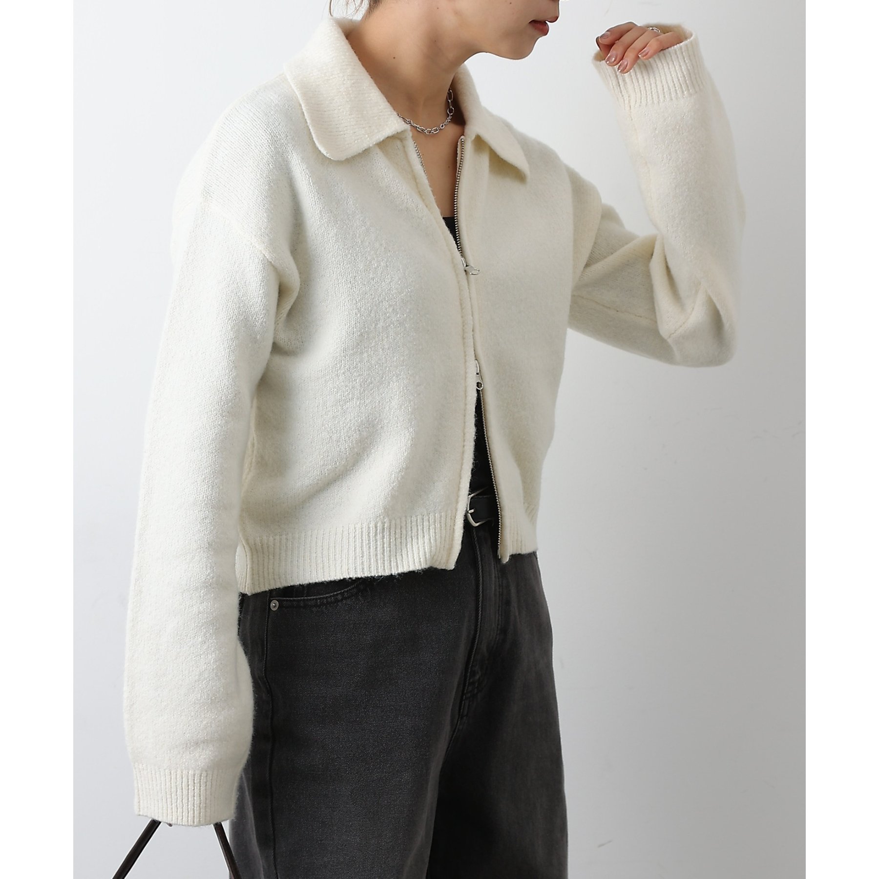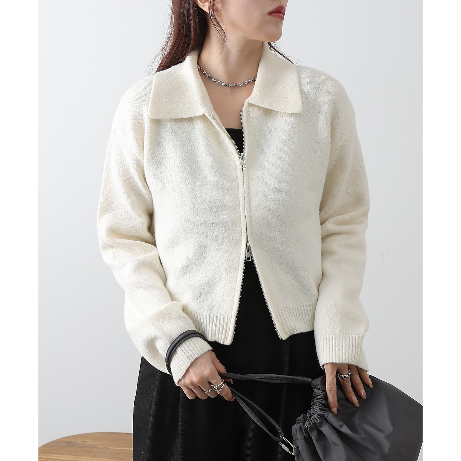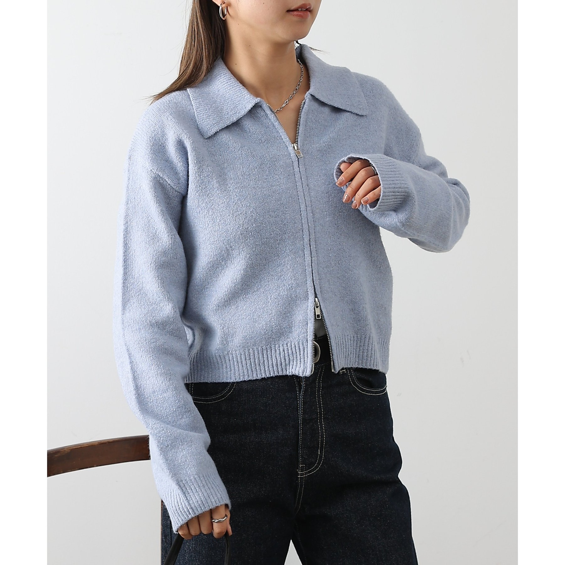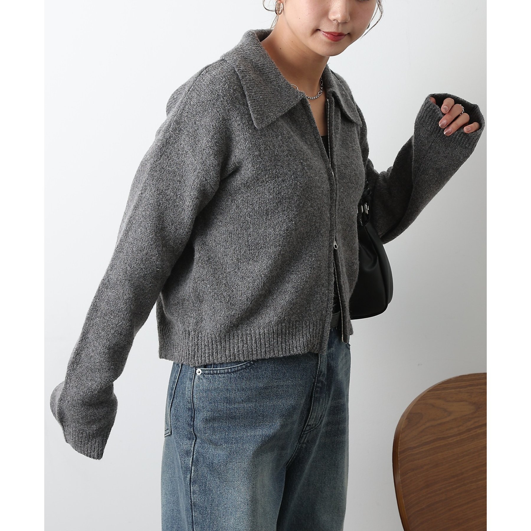 ふんわりとした柔らかな風合いが魅力のジップカーディガン。