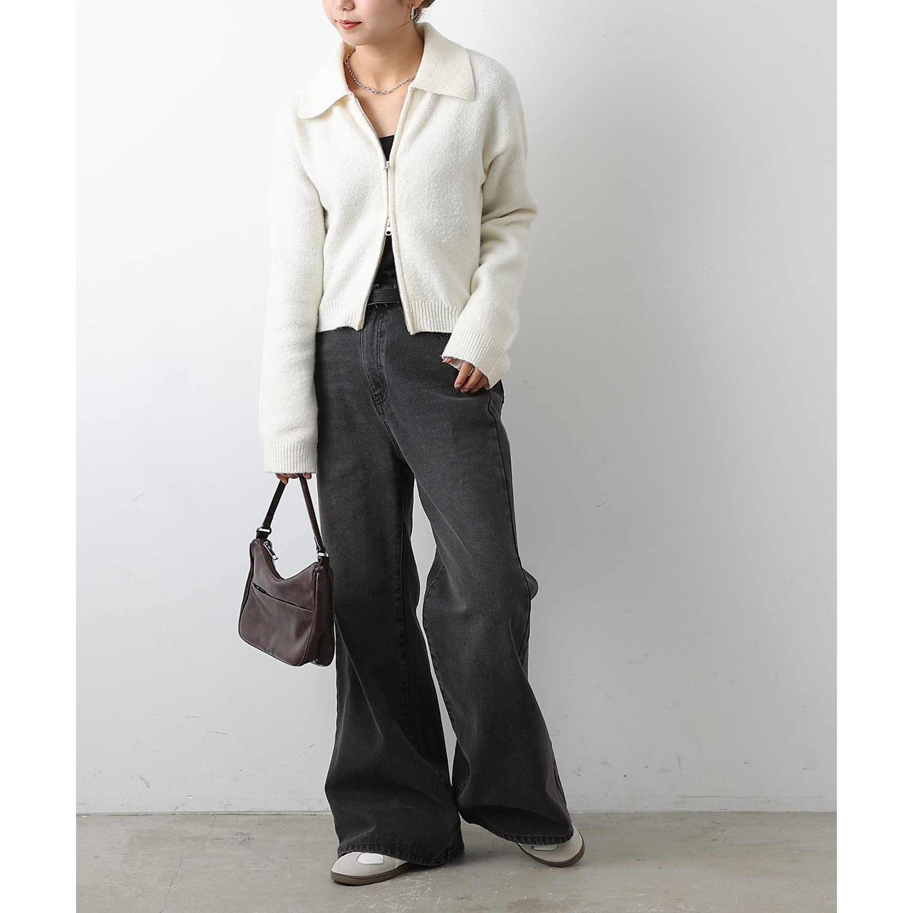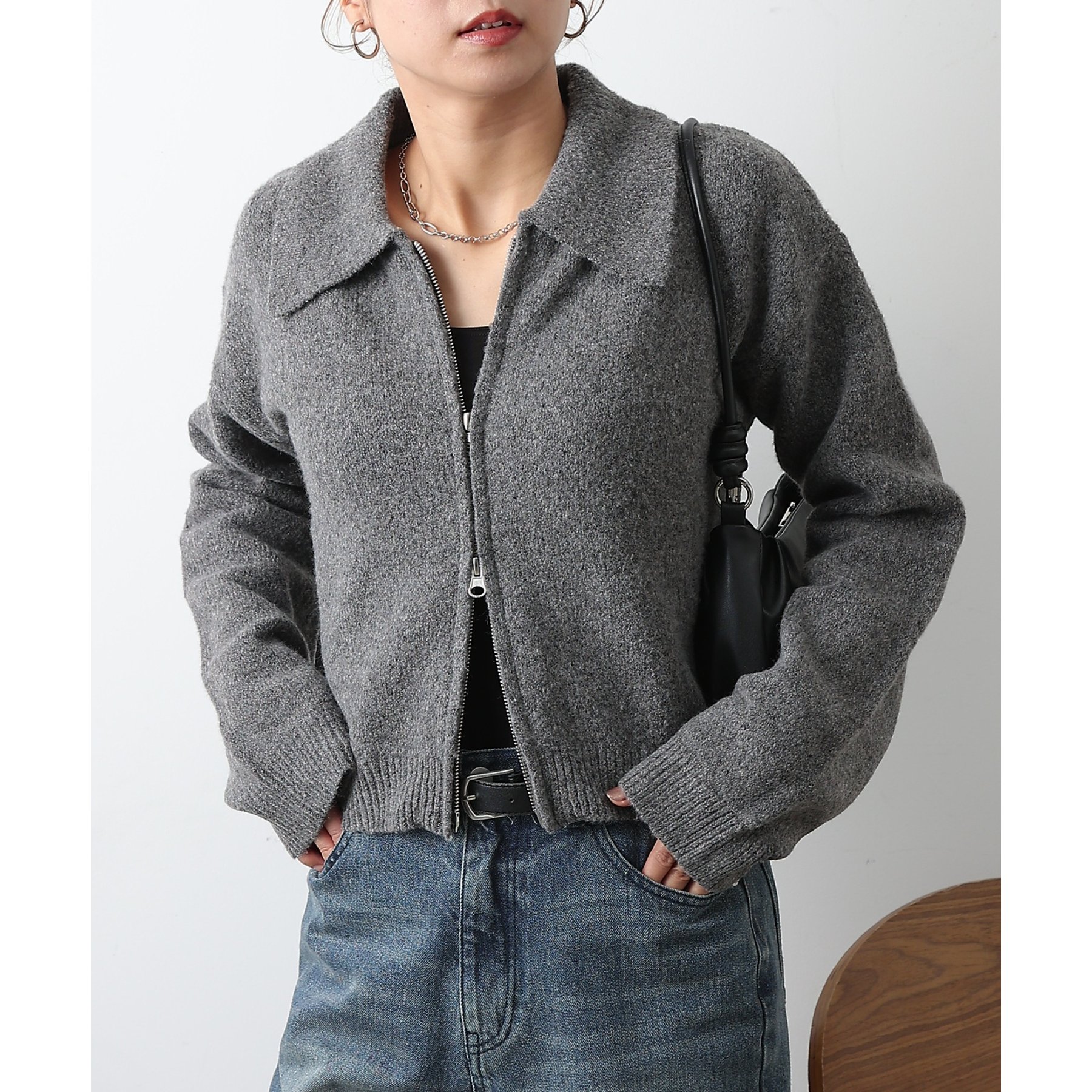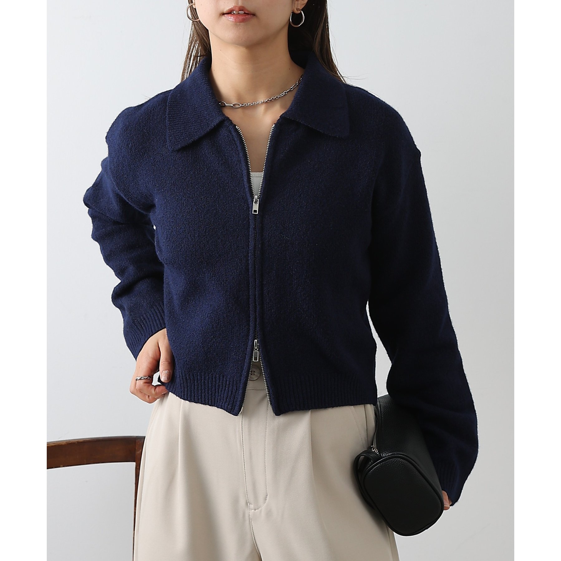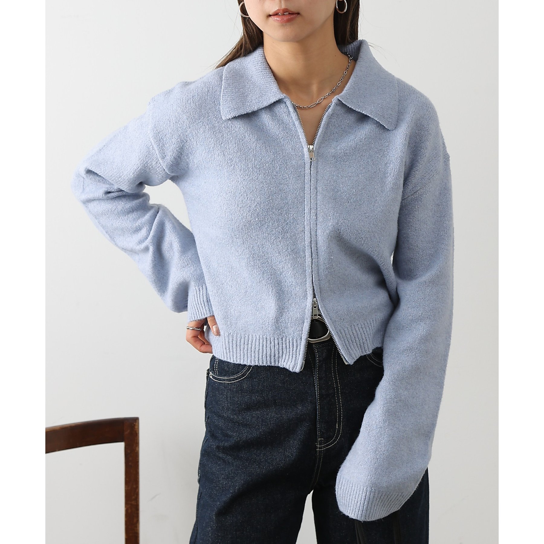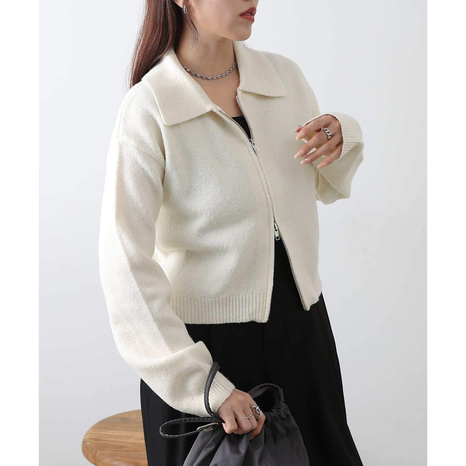 ふんわりとした柔らかな風合いが魅力のジップカーディガン。