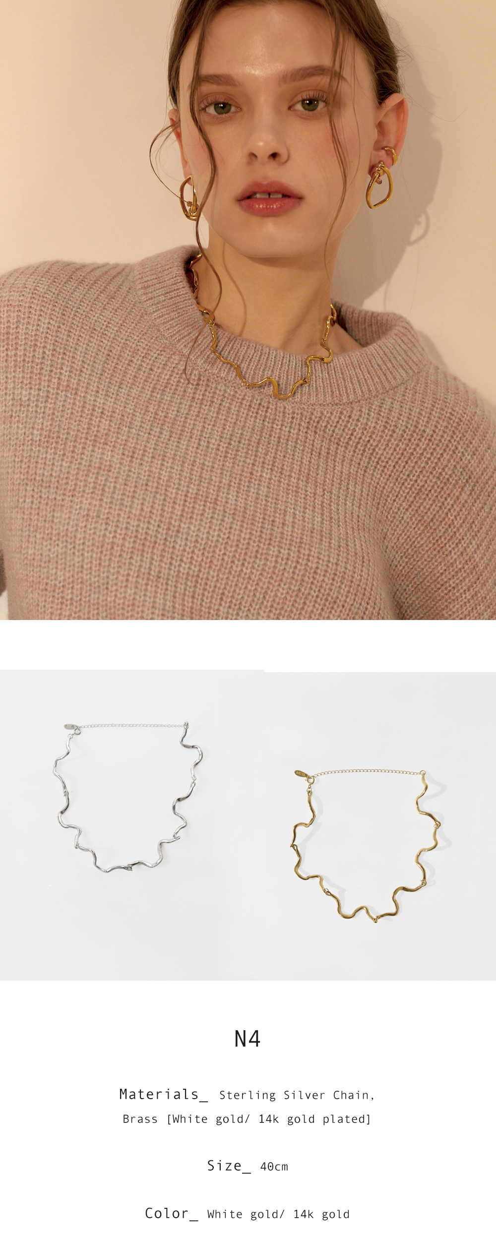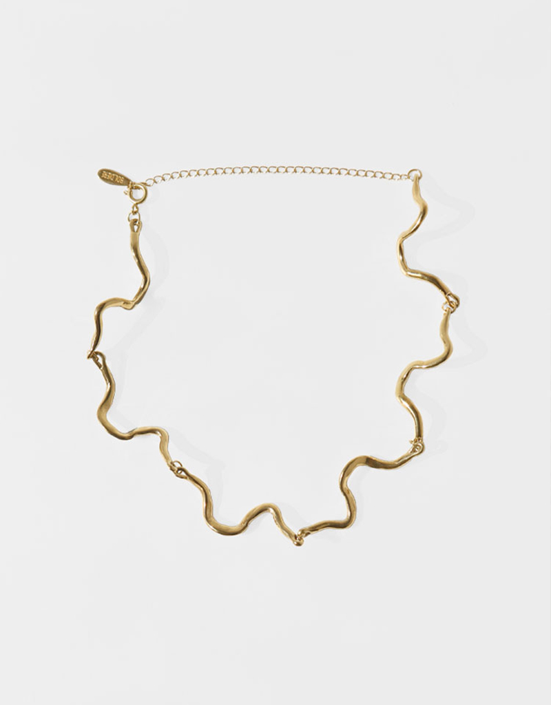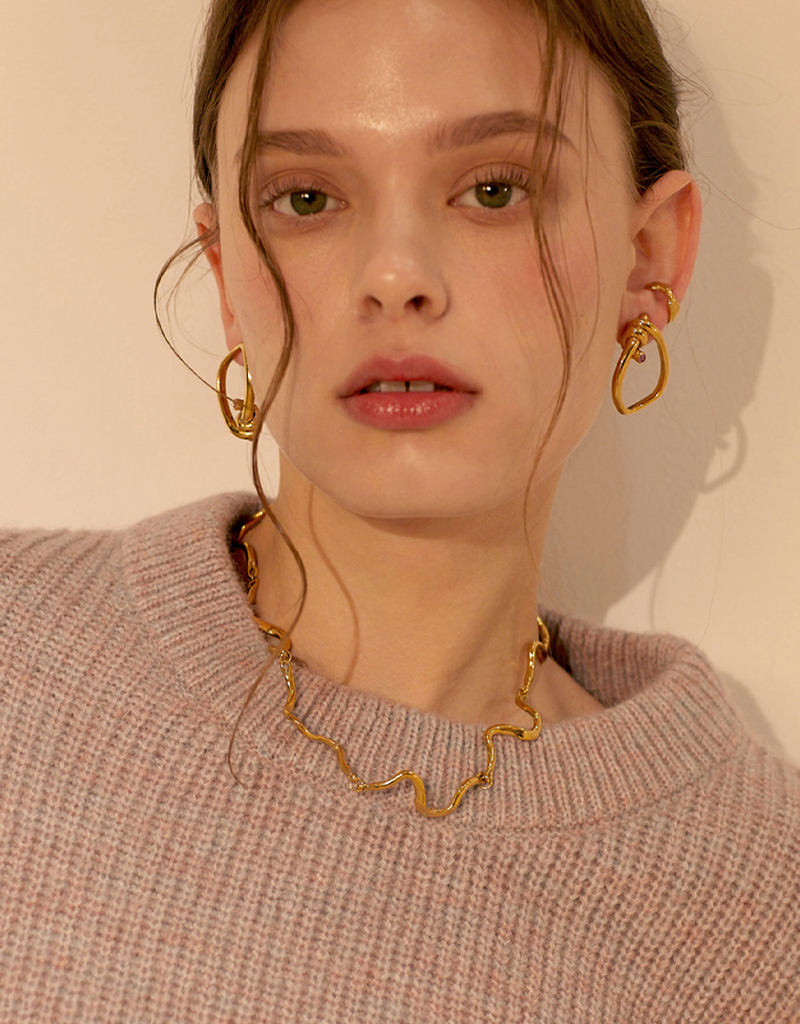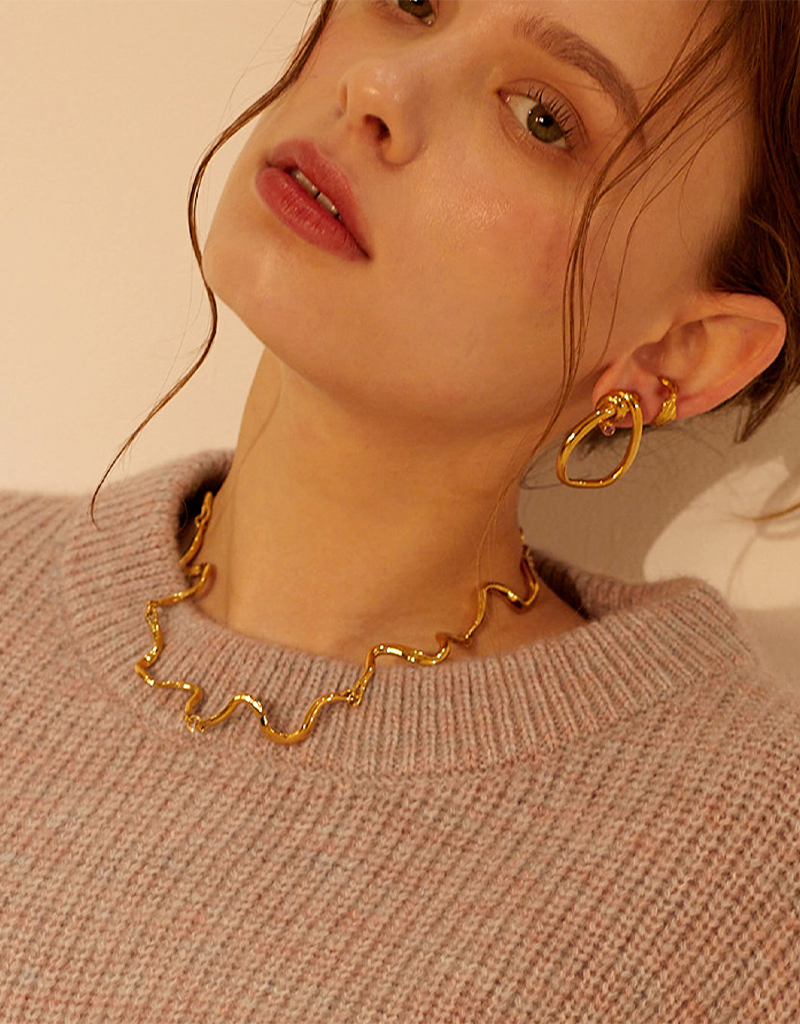 有機的なシェイプのパーツが一つひとつ繋がり、首元に自然に沿うようにフィットします。