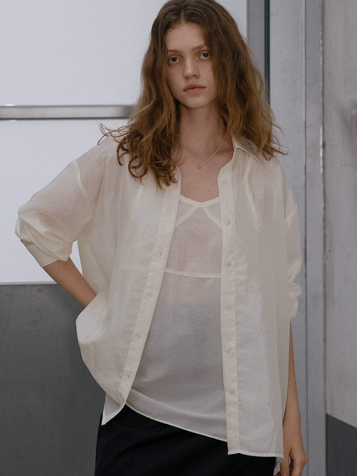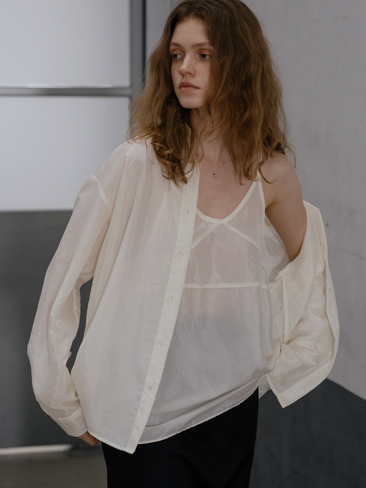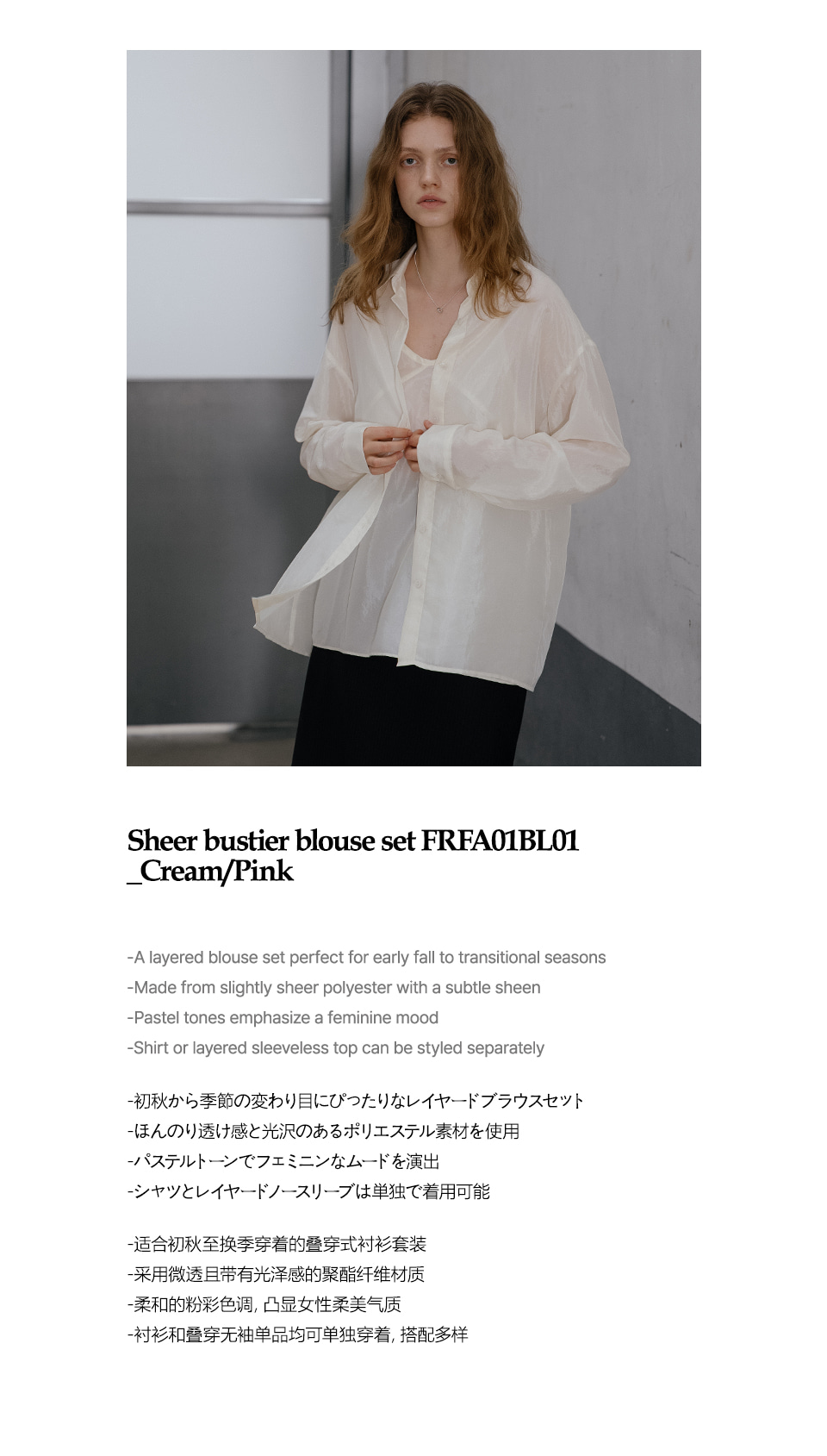 Sheer bustier blouse set FRFA01BL01_Cream