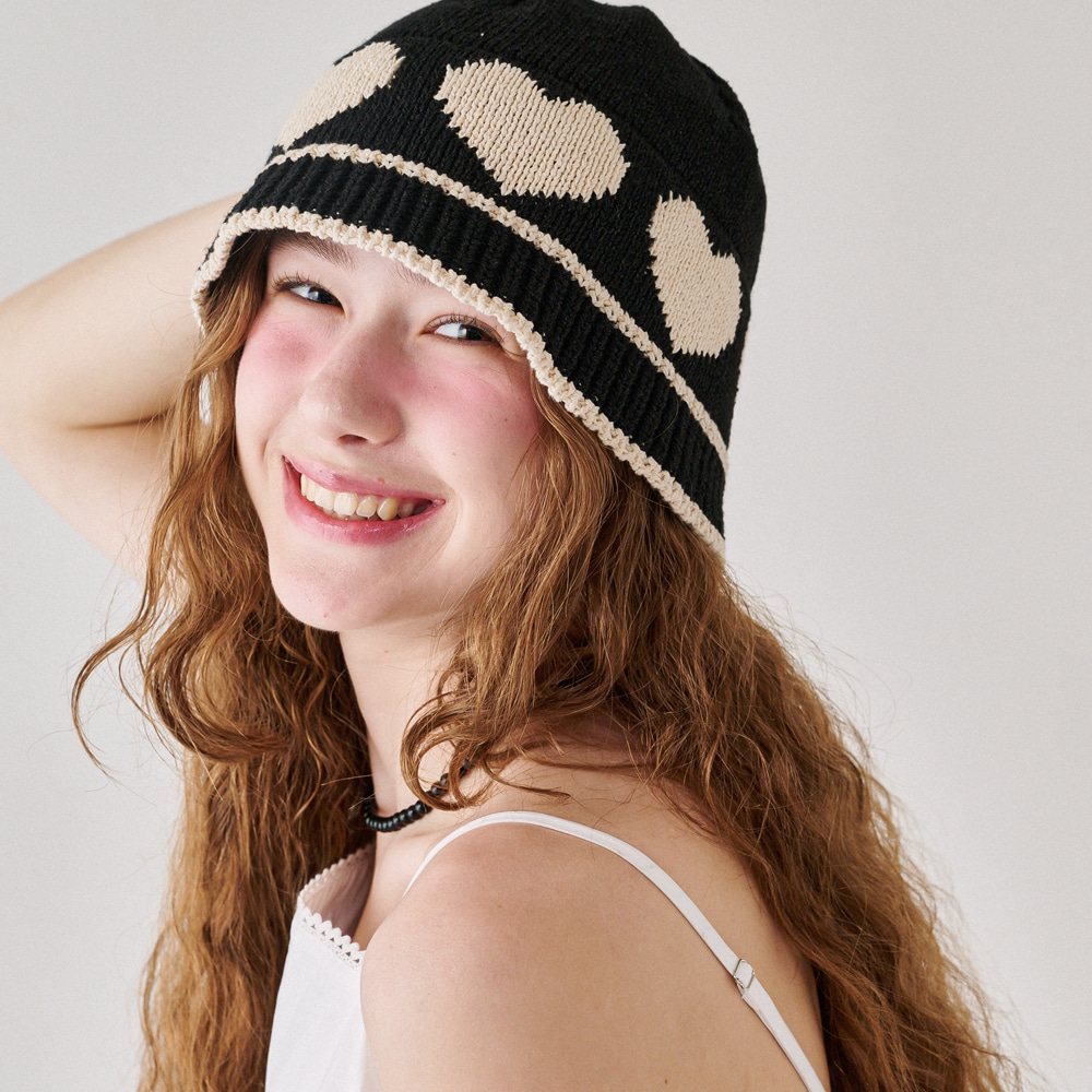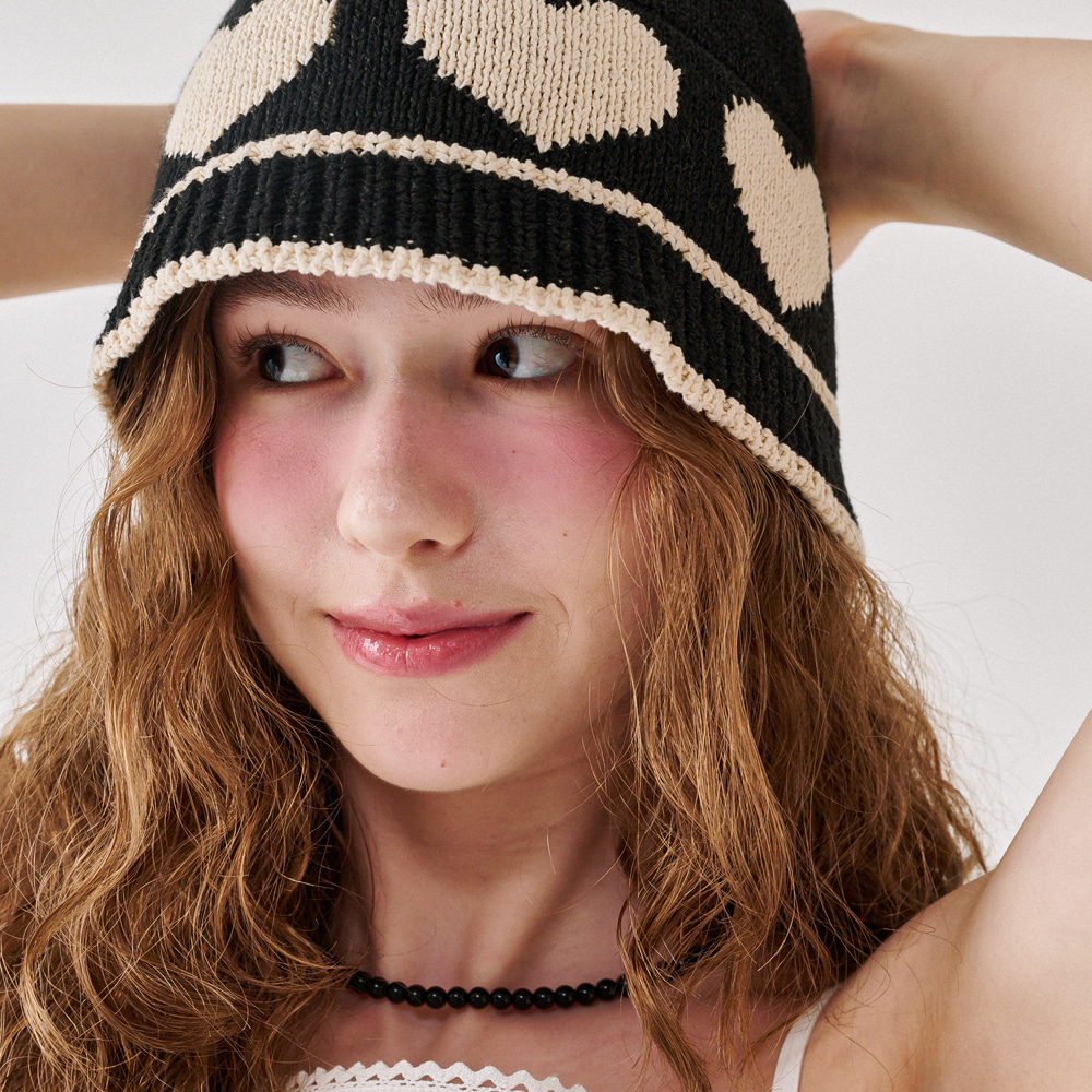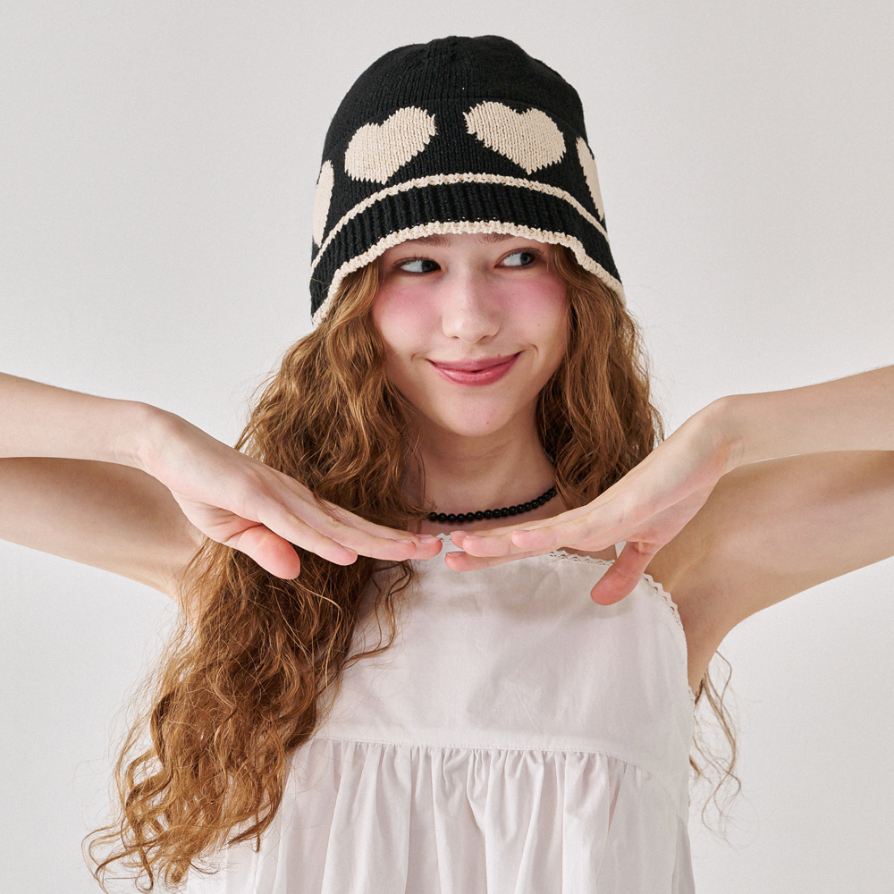 HEART SUMMER KNIT BUCKET HAT BLACK