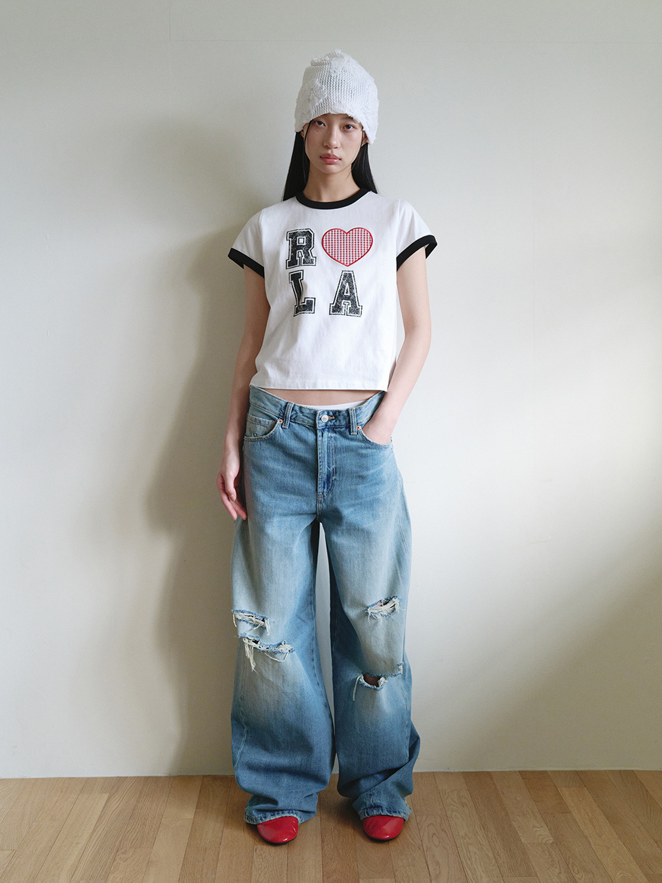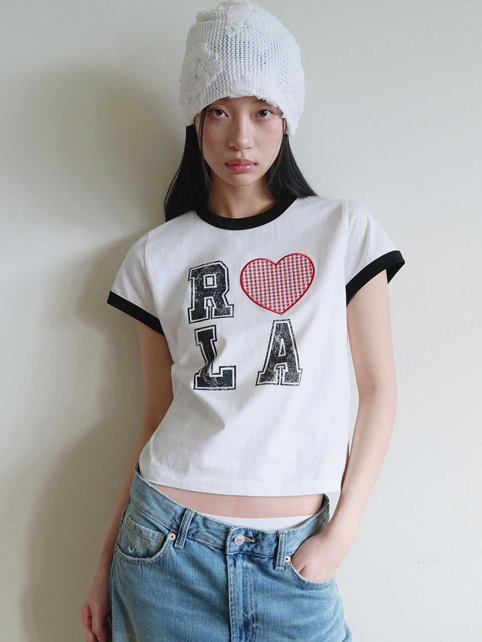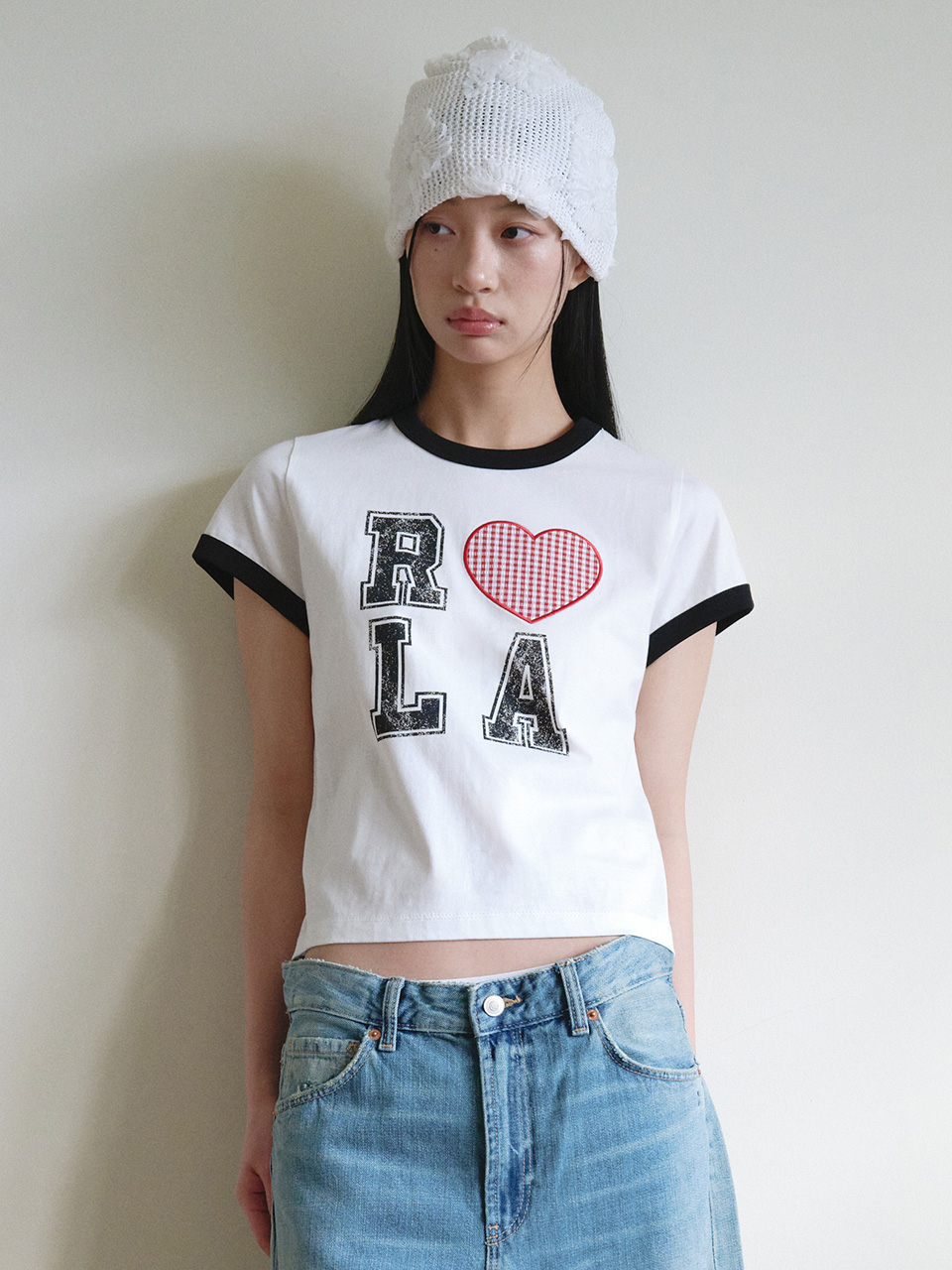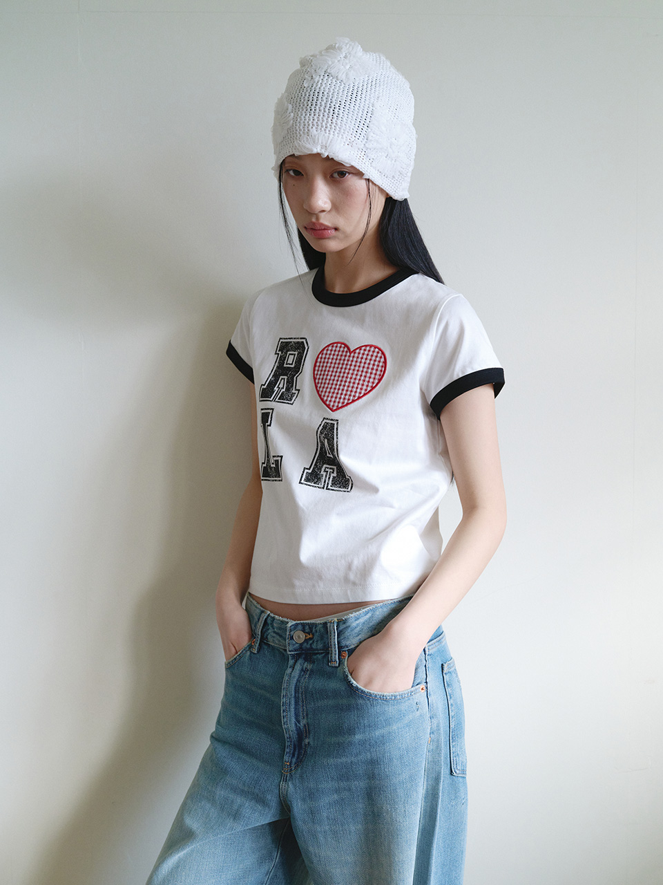 I LOVE ROLA PATCHWORK RINGER T-SHIRT WHITE