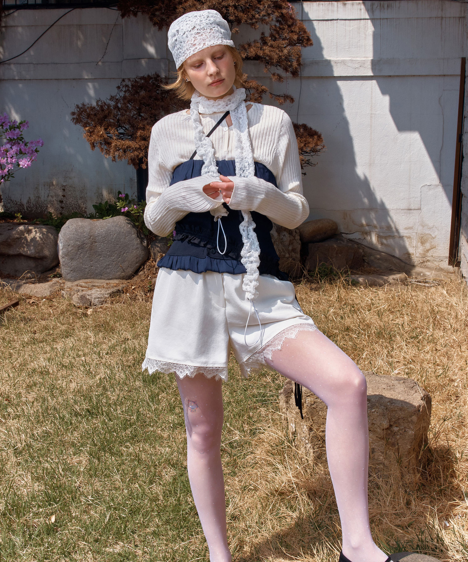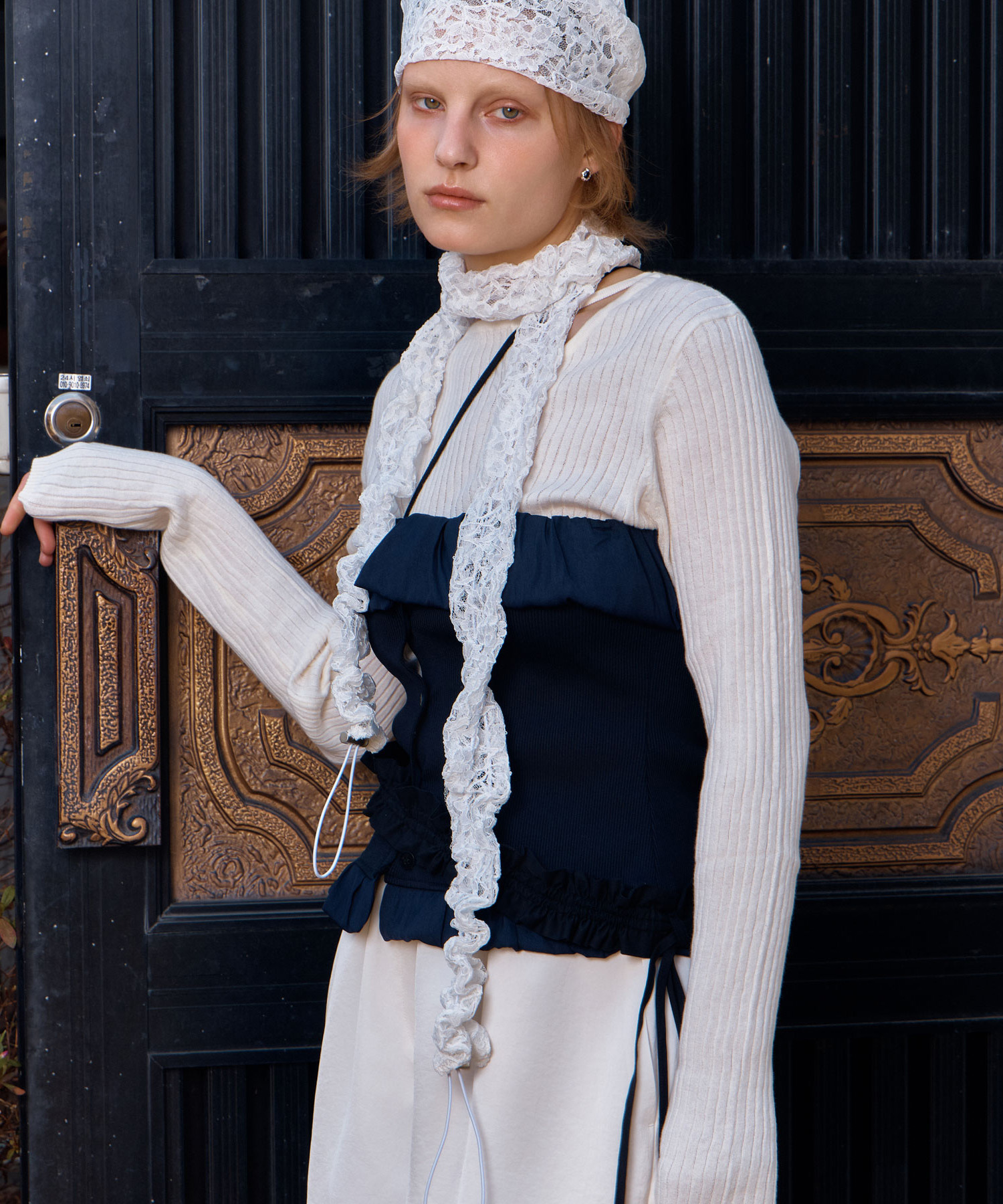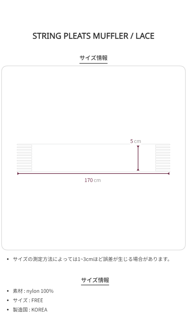STRING PLEATS MUFFLER / LACE / WHITE(夏スカーフ)