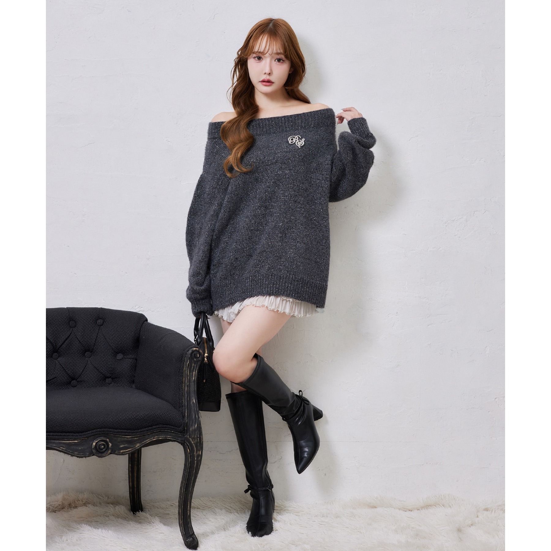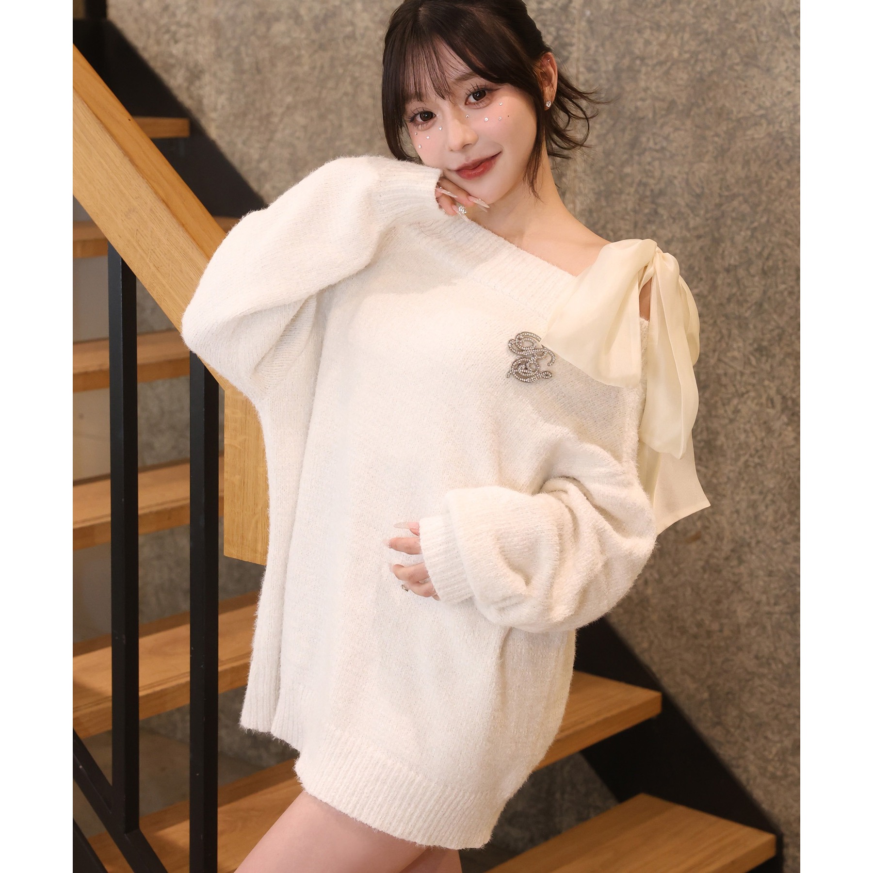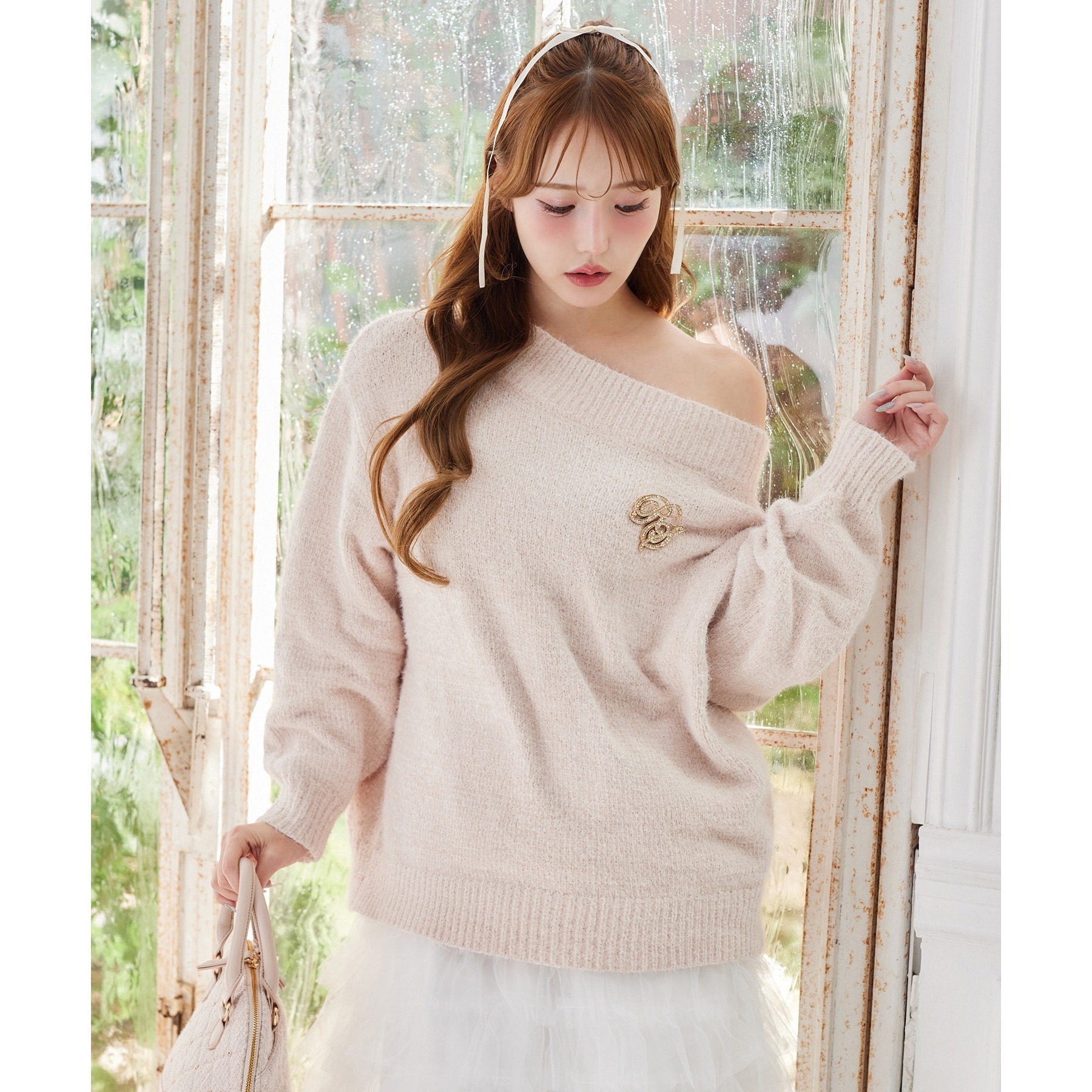 付属のブローチがアクセントになり、スタイリングをぐっと格上げしてくれます。