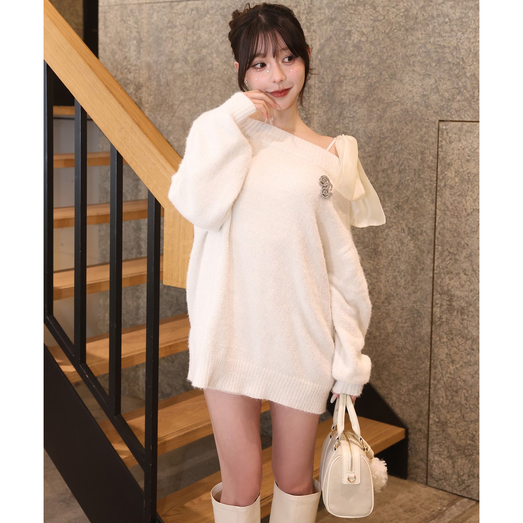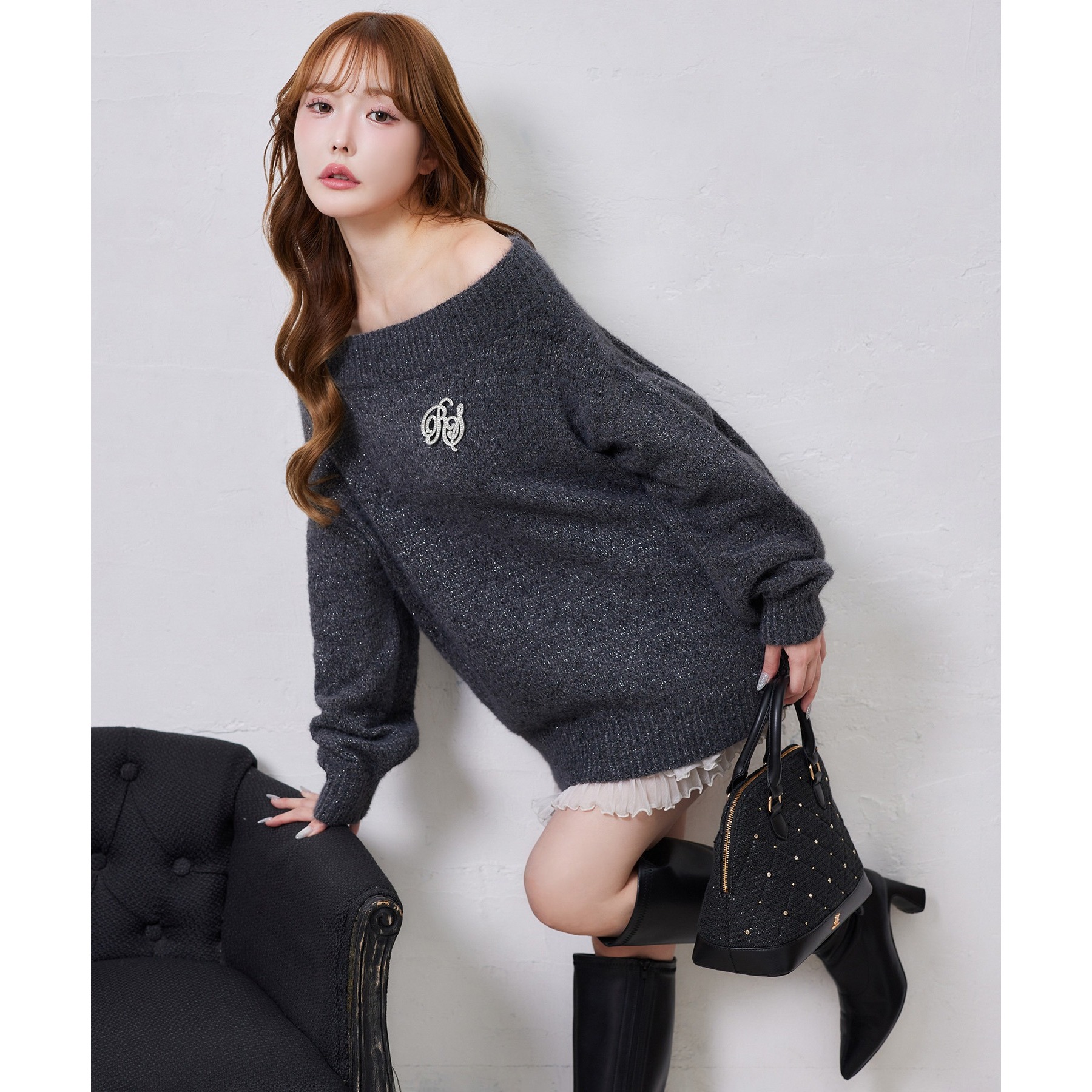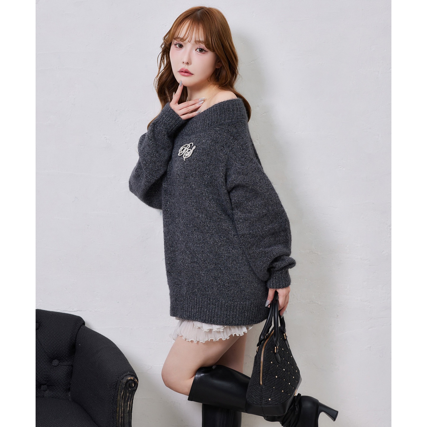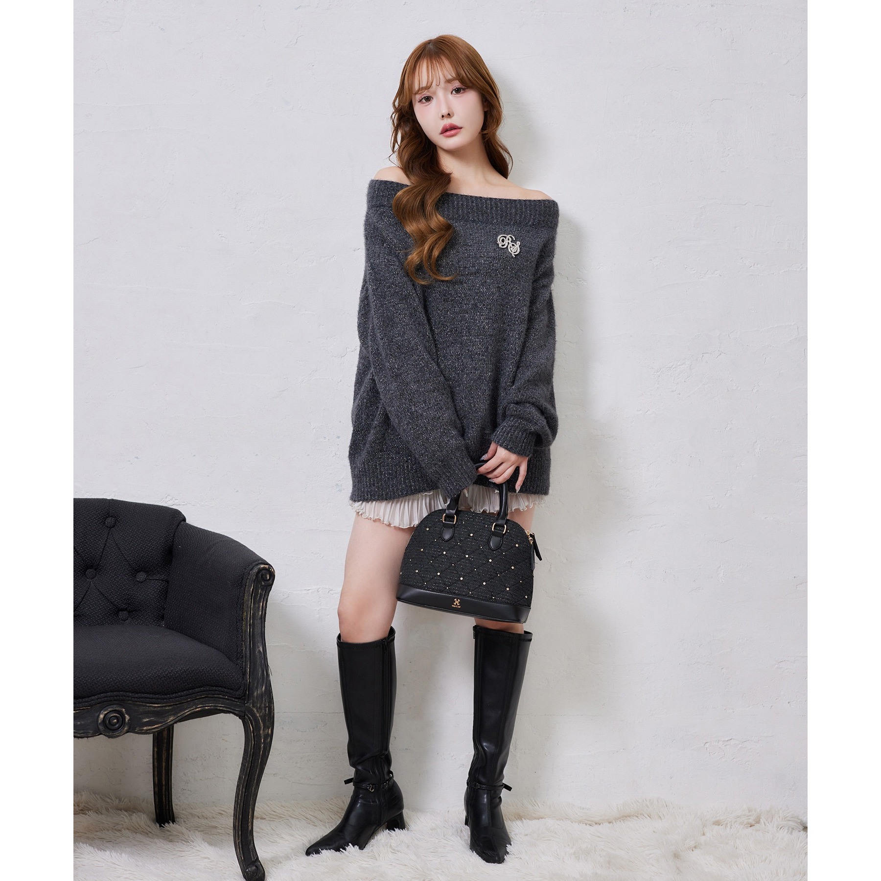 付属のブローチがアクセントになり、スタイリングをぐっと格上げしてくれます。
