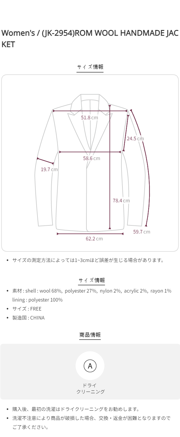 (JK-2954)ROM WOOL HANDMADE JACKET