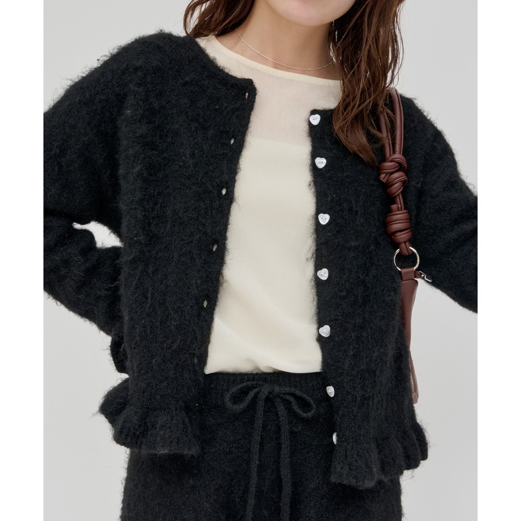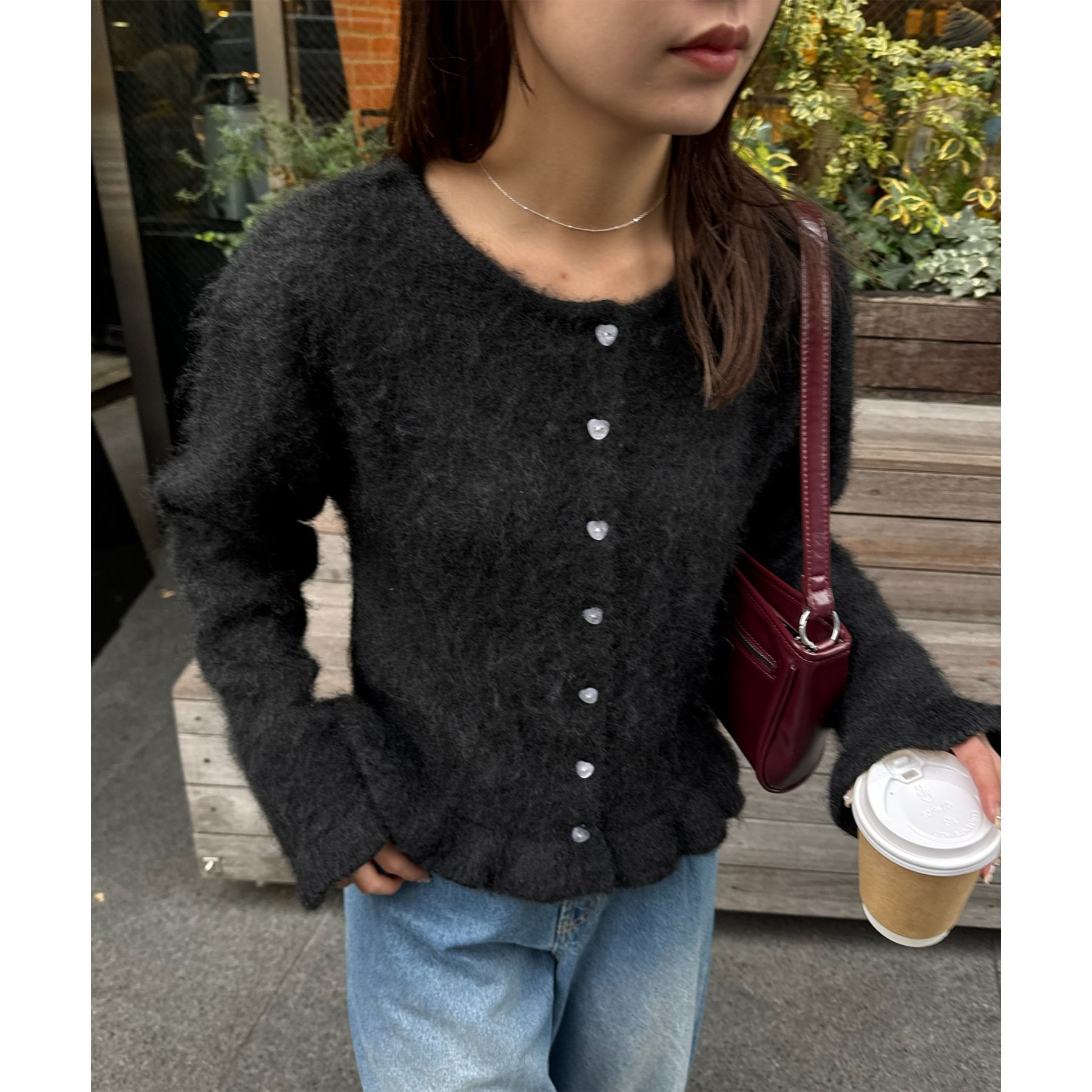 ふんわりフリルとハート釦が、心くすぐる一枚。
