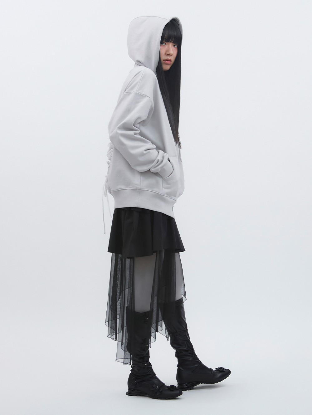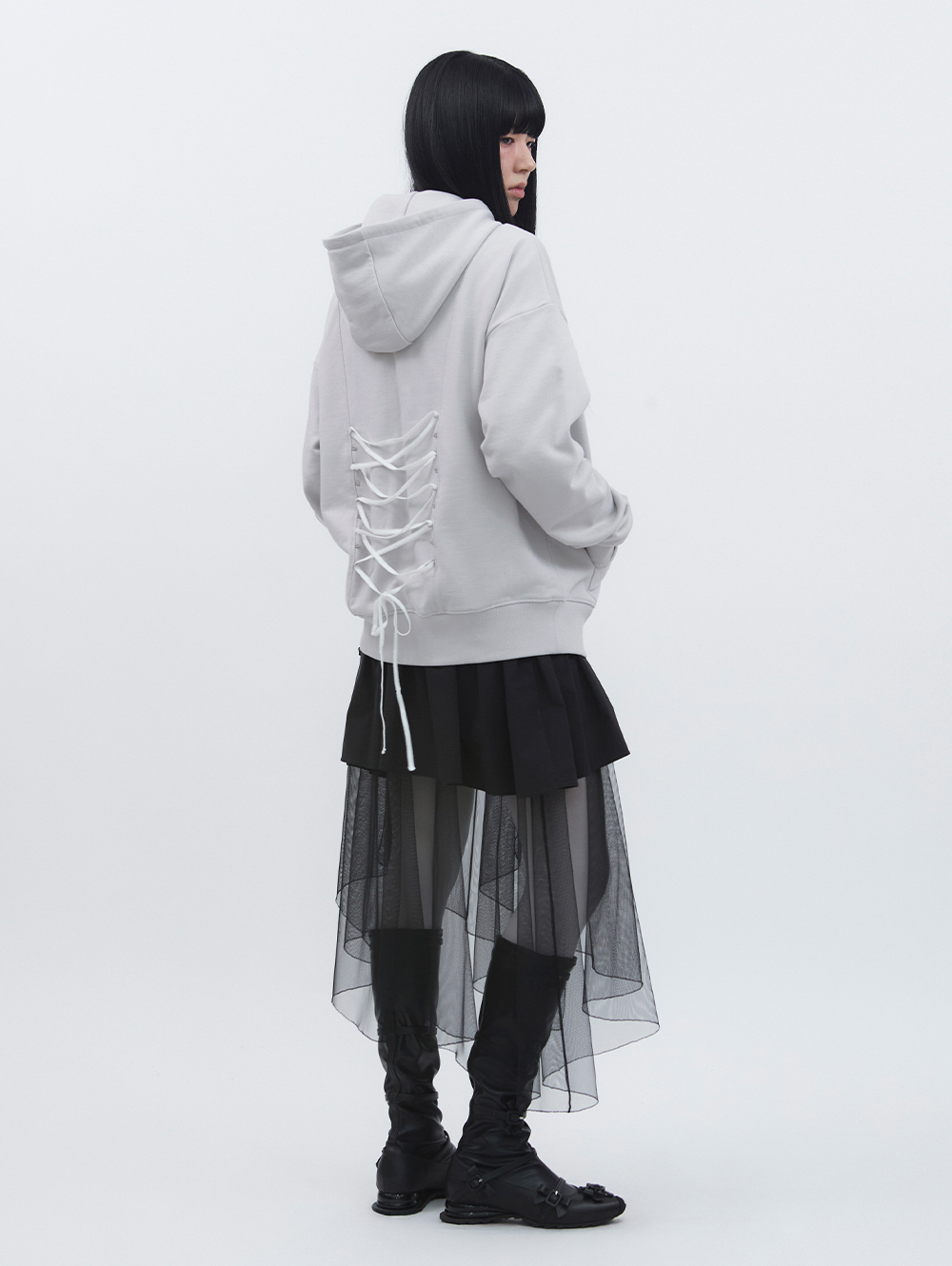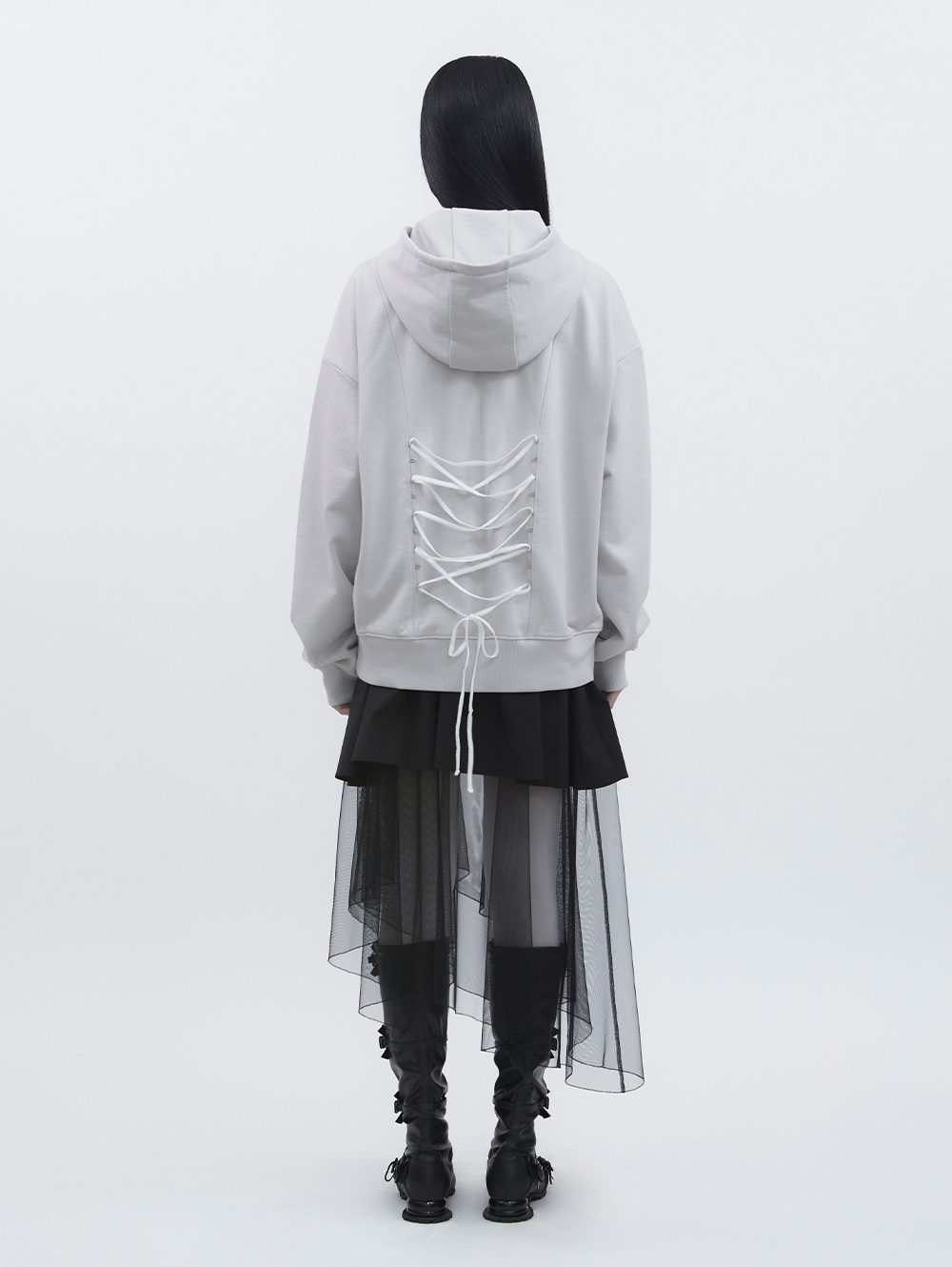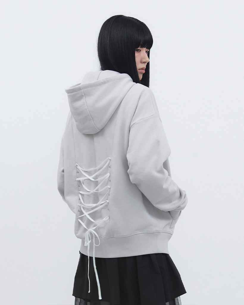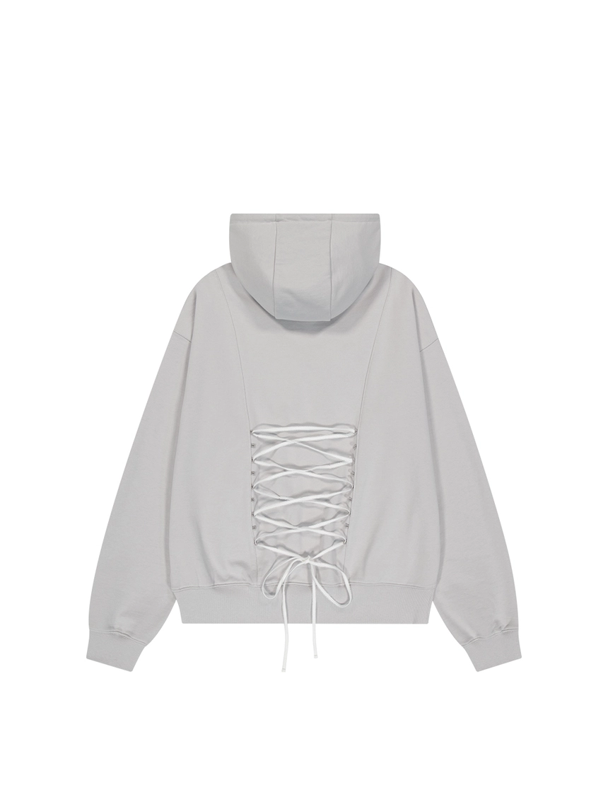 LACE UP HOOD ZIP-UP [LIGHT GREY]