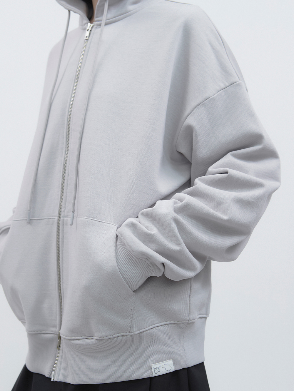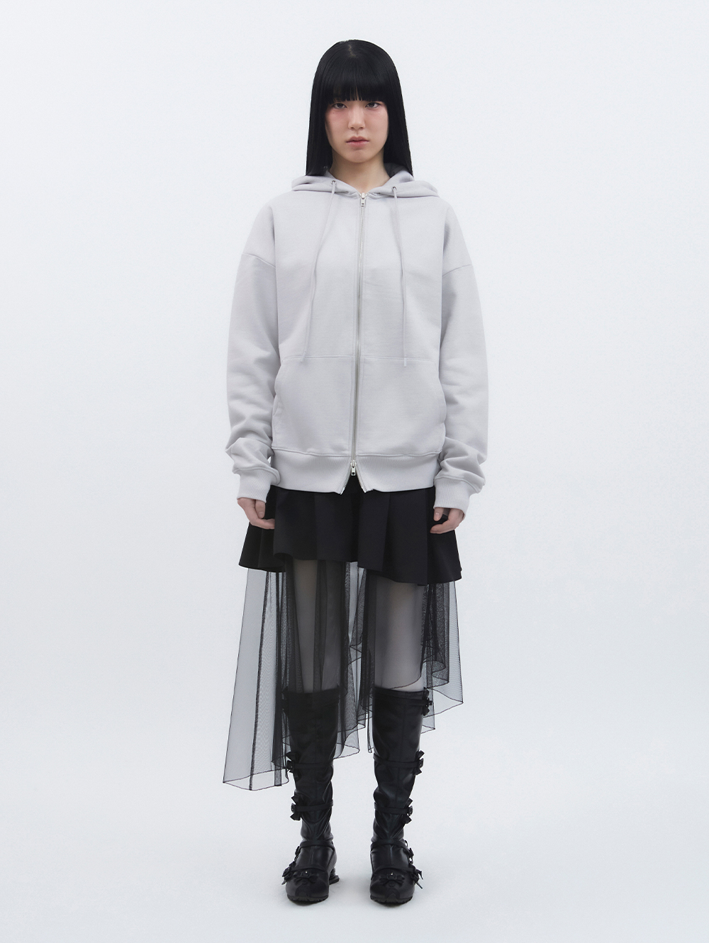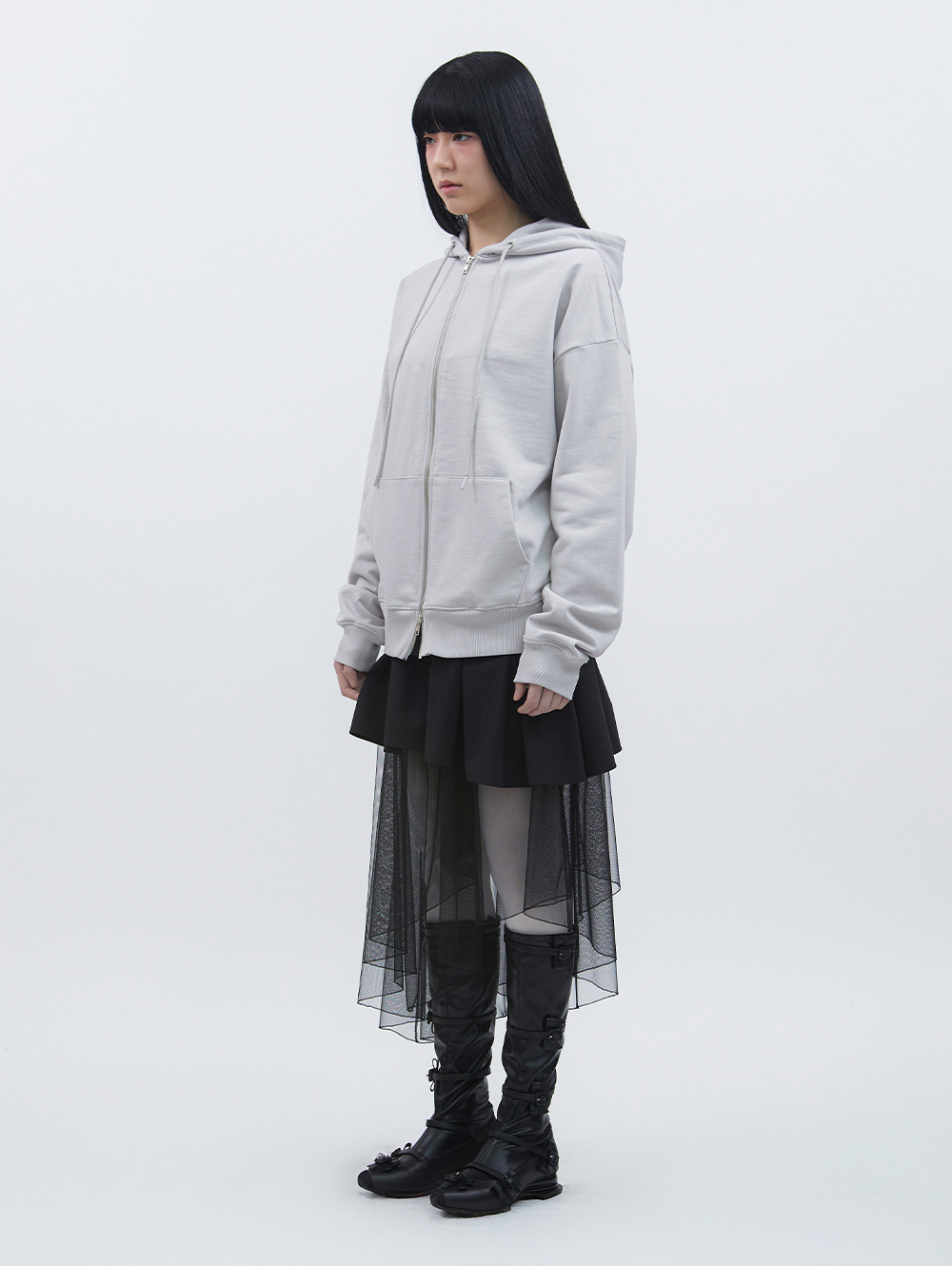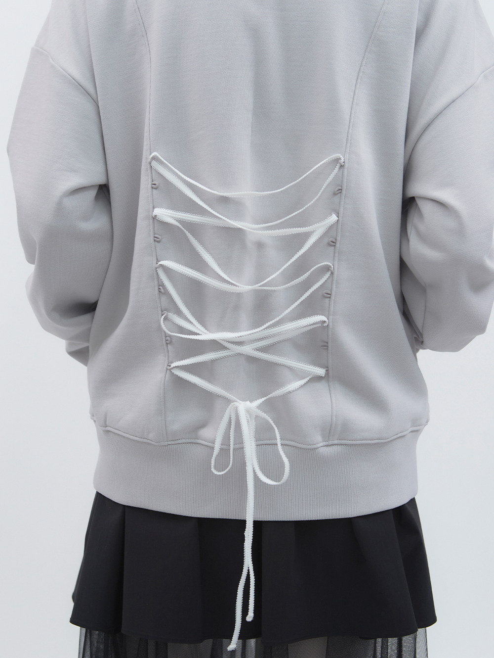 LACE UP HOOD ZIP-UP [LIGHT GREY]