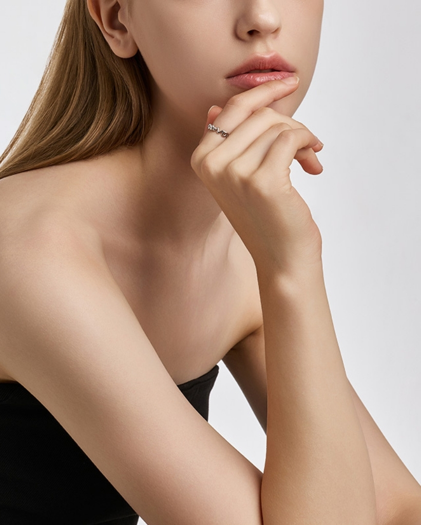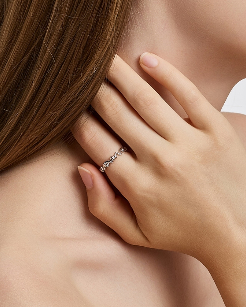 どの向きで着用しても、指の上で自然に流れる感覚を楽しめ、多彩な魅力を演出します。