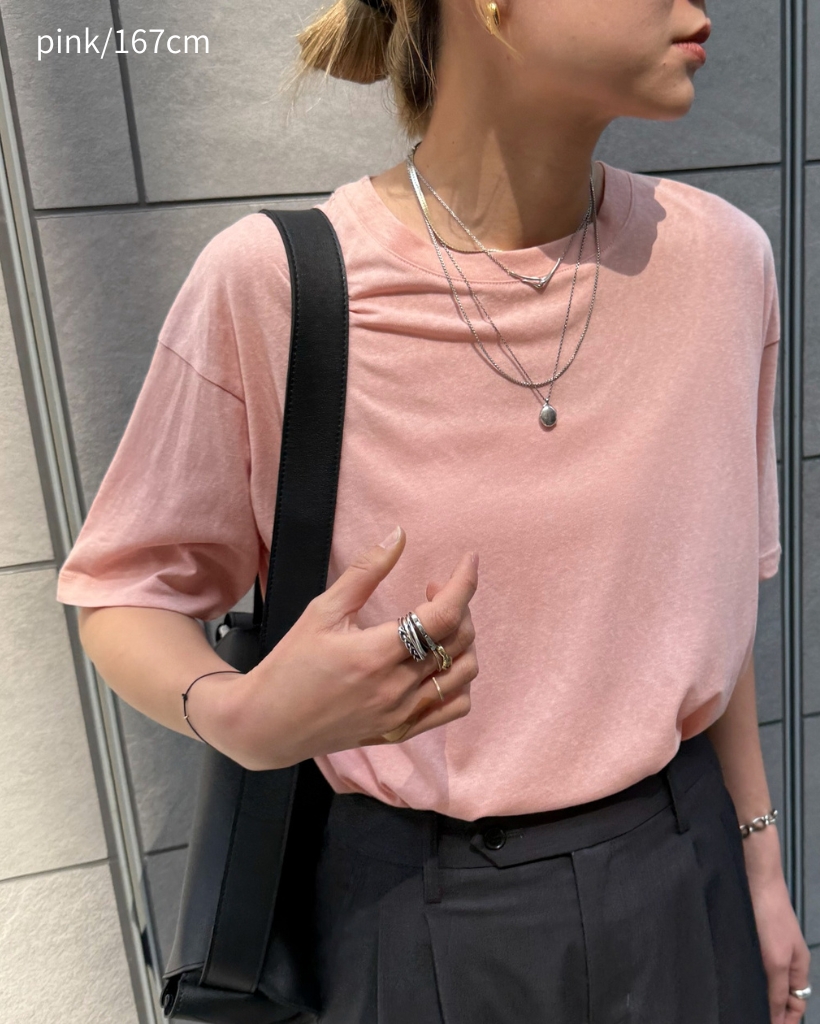 レーヨン混で肌触りは優しく着心地抜群◎シアー感も強すぎずコーディネートに取り入れやすい一着です。
