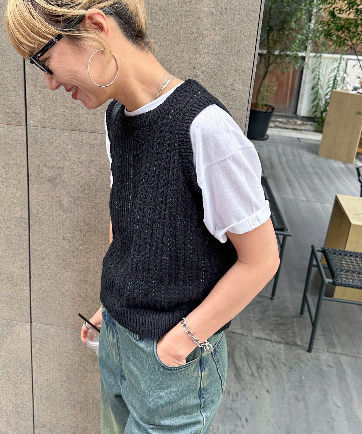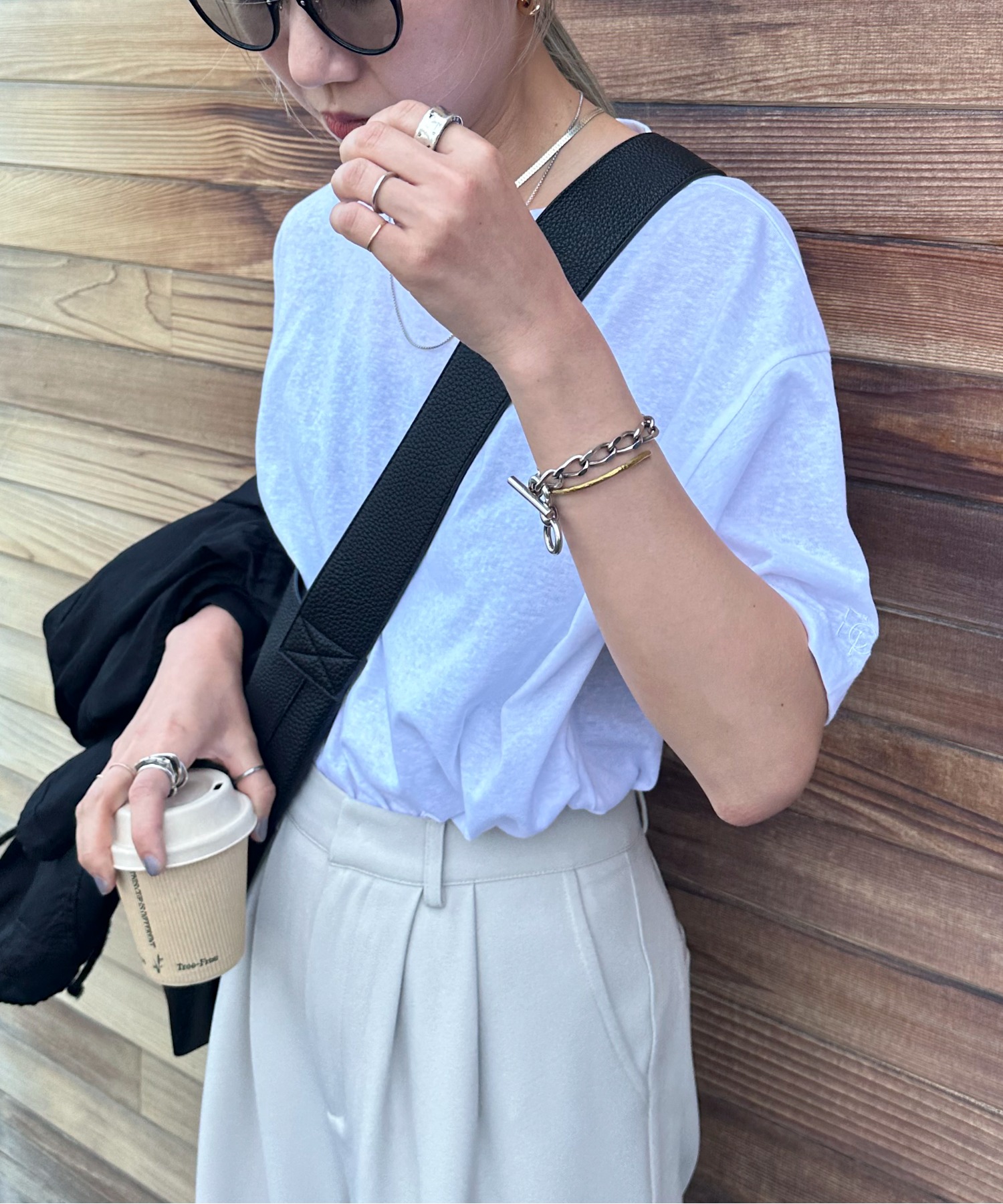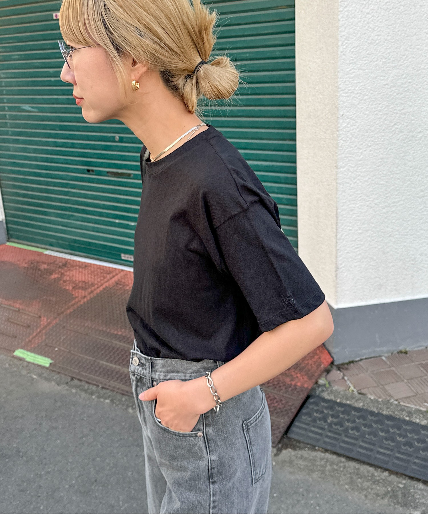 長袖と同素材を使用しており、レーヨン混の柔らかな落ち感がありゆるっと脱力感のあるシルエットが魅力。