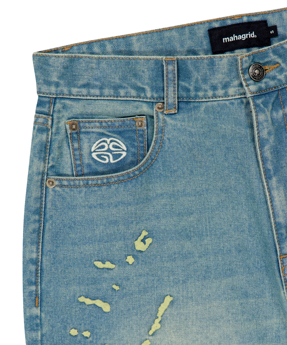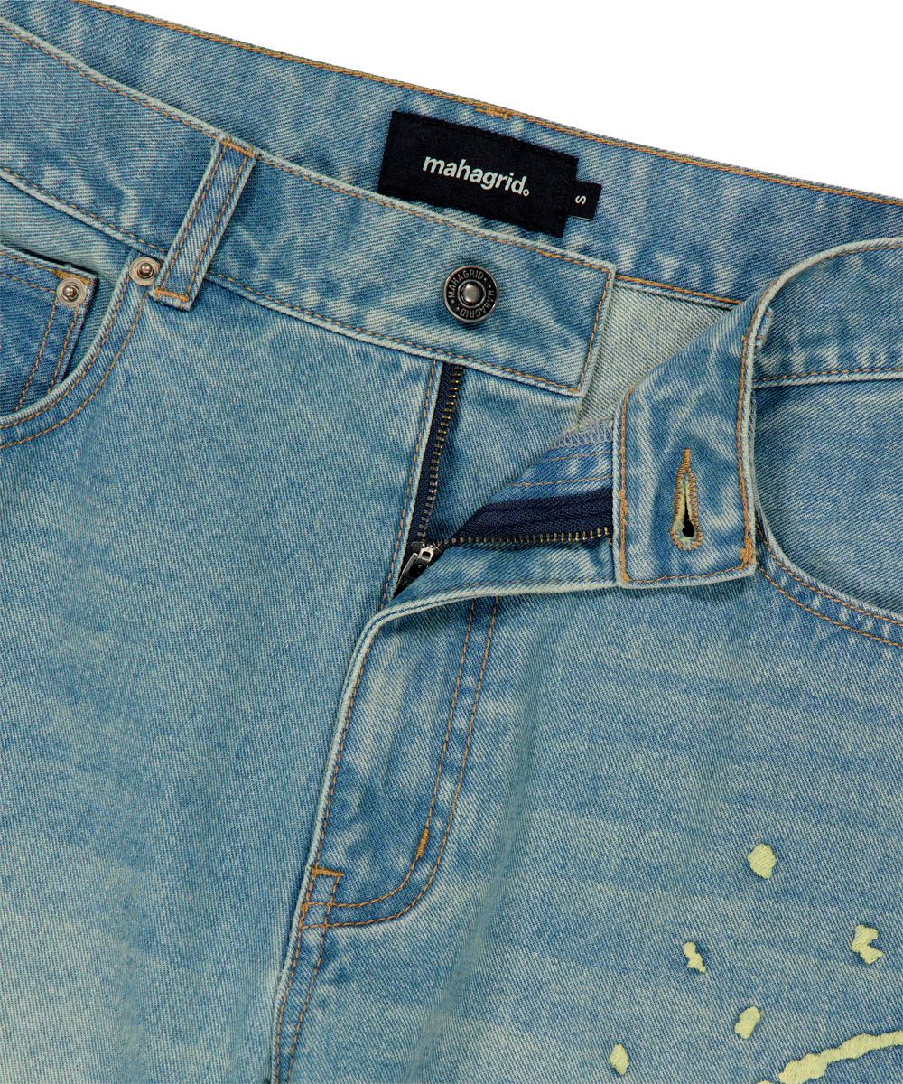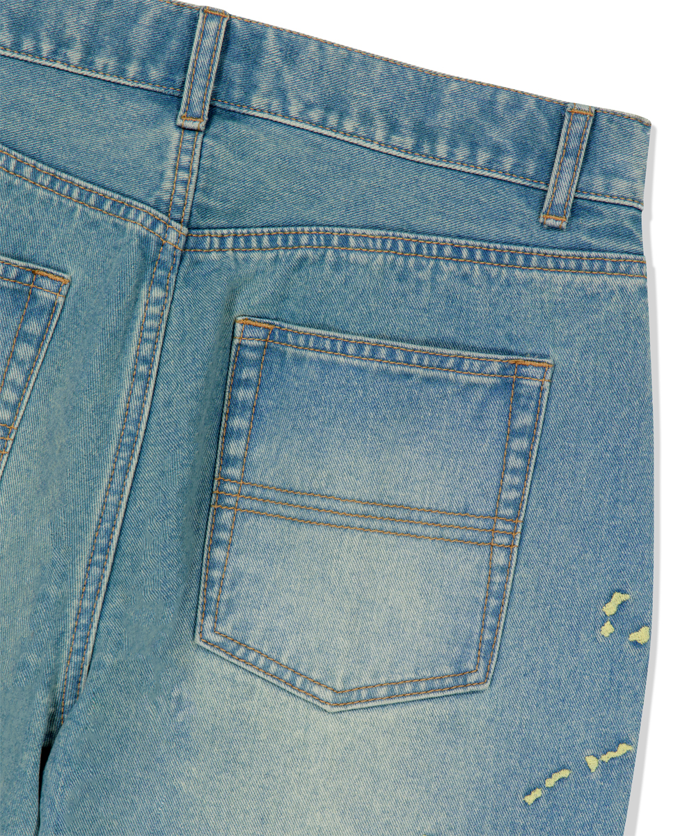 EMB SPLATTER DENIM PANT[BLUE]