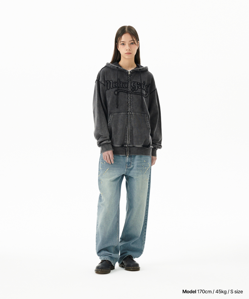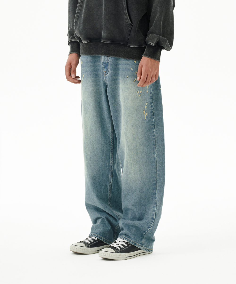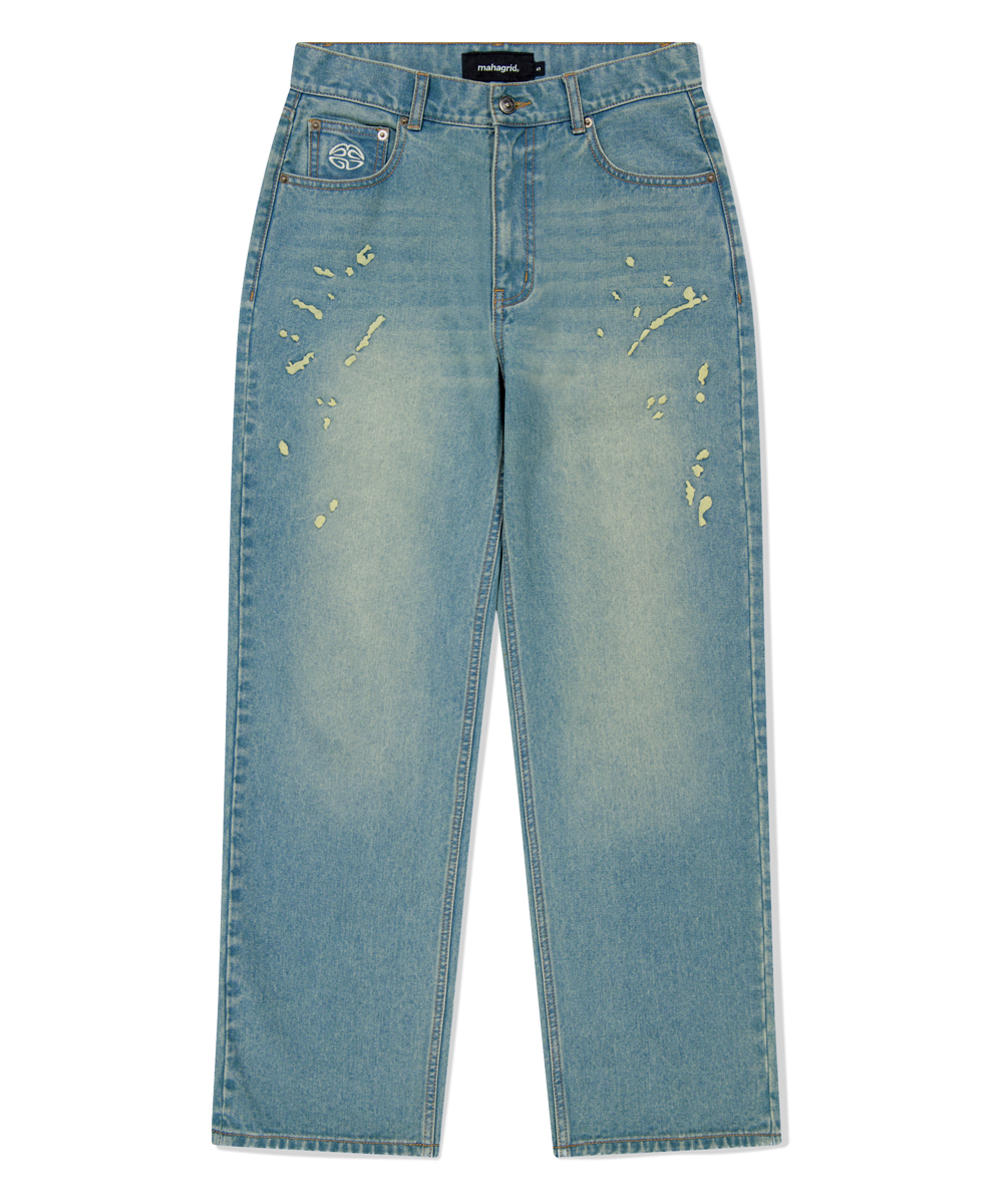 EMB SPLATTER DENIM PANT[BLUE]