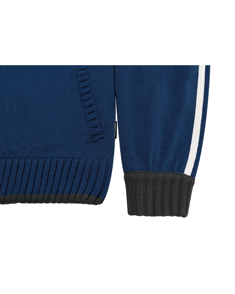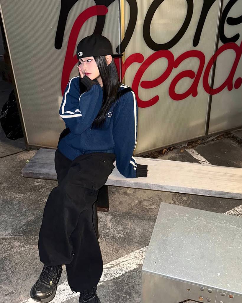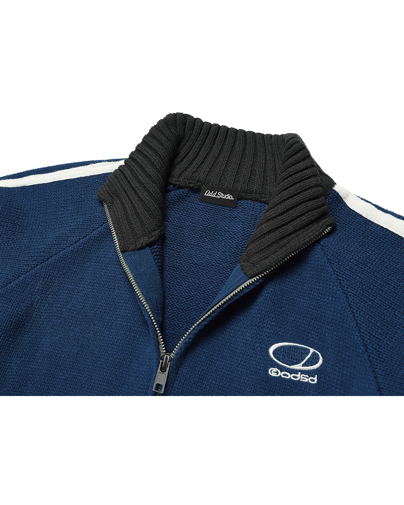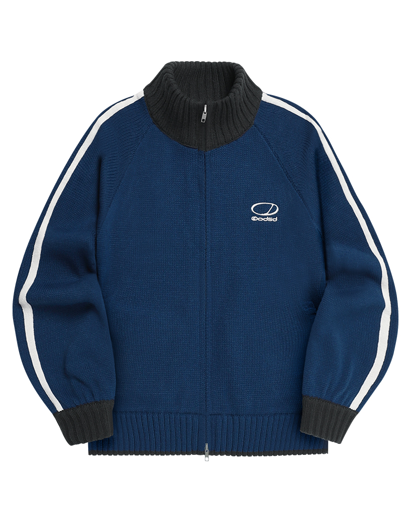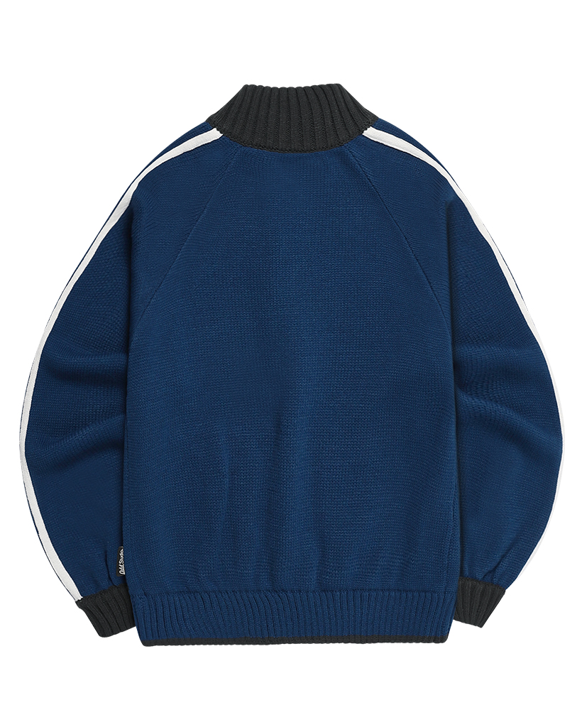 [K-POPアイドル着用] Sporty Track Semi Crop Knit Zip-Up - BLUE