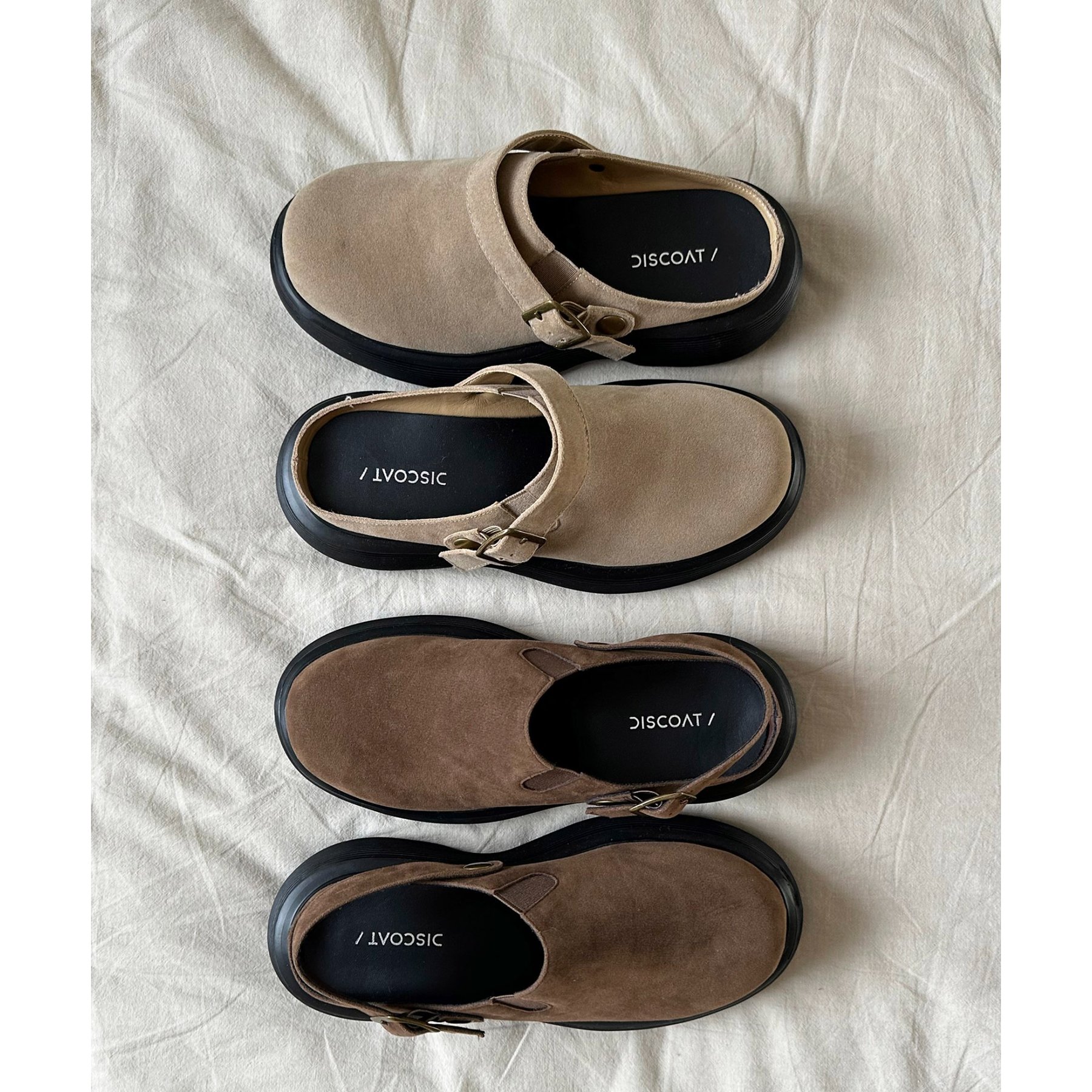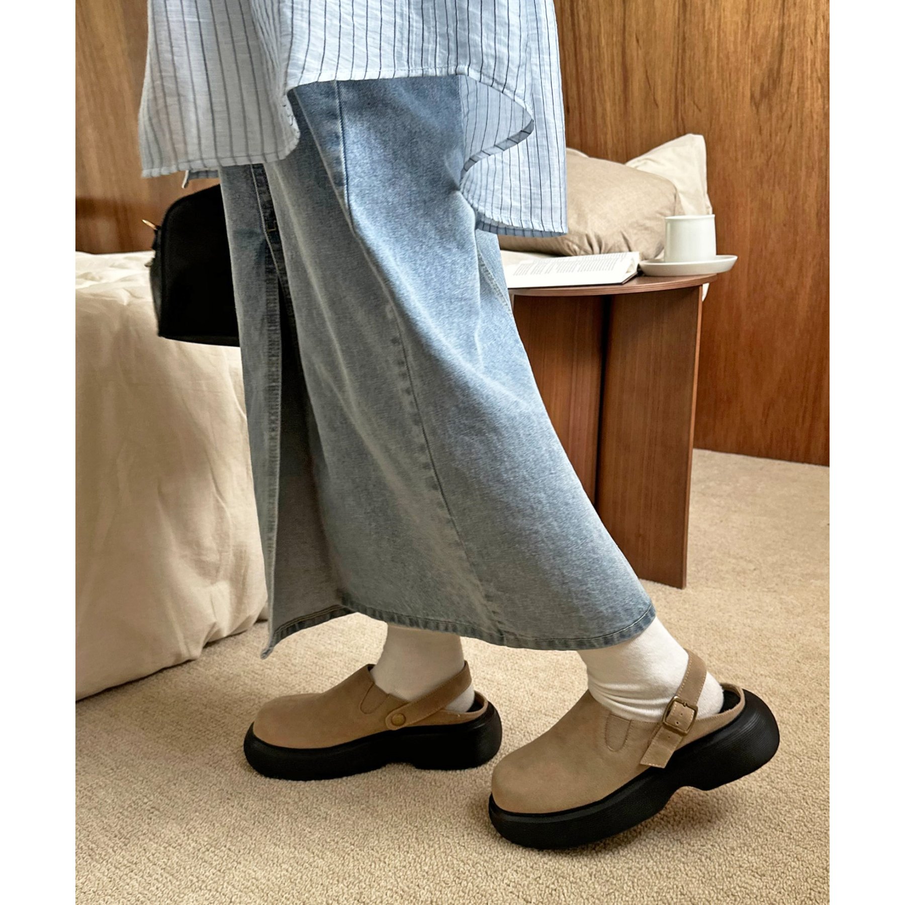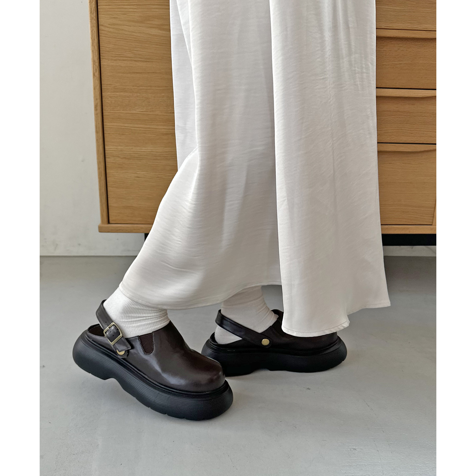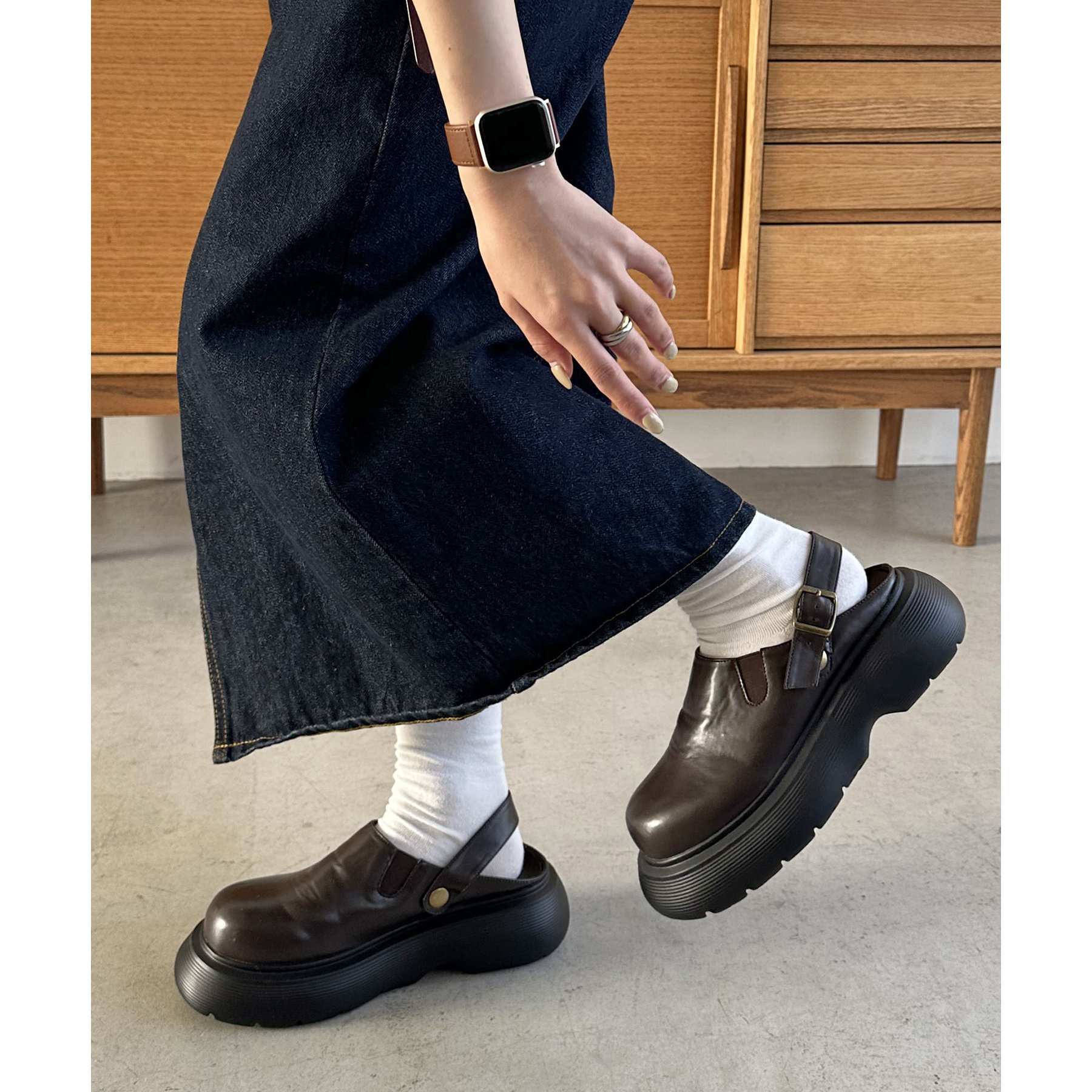 前から見ても、横から見てもぽってりとした丸みのあるシルエットが可愛いサボ。しっかりと厚みのあるソールでスタイルアップが叶います!また、見た目以上に軽く、クッション性のあるソールで快適な履き心地◎かかとのベルト部分は前後に可動するだけでなく、長さ調整も可能です!スタイリングはソックス合わせがオススメです◎(特にカラーソックスはトレンド感プラス♪)季節や系統問わず、ロングシーズン愛用できる一足です。