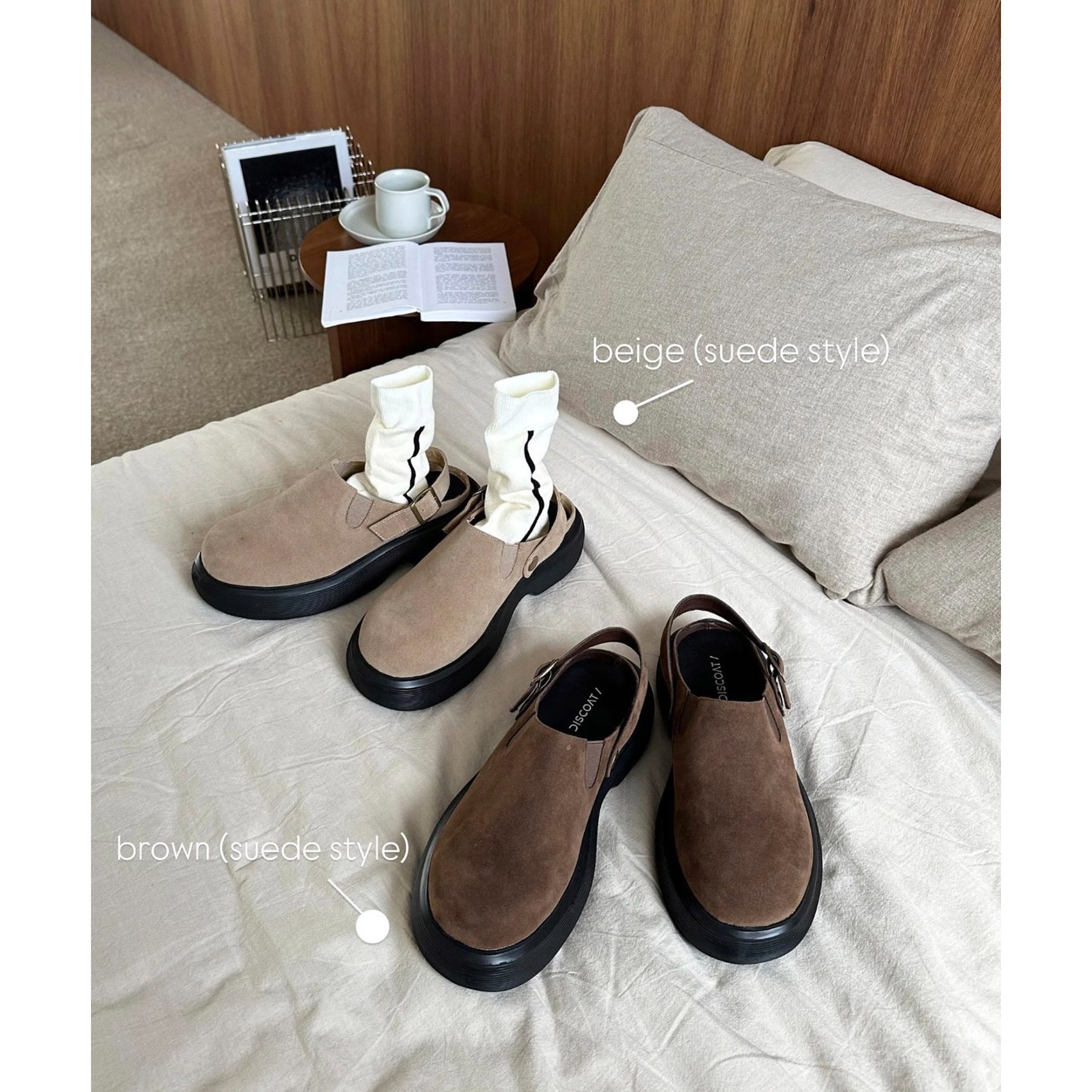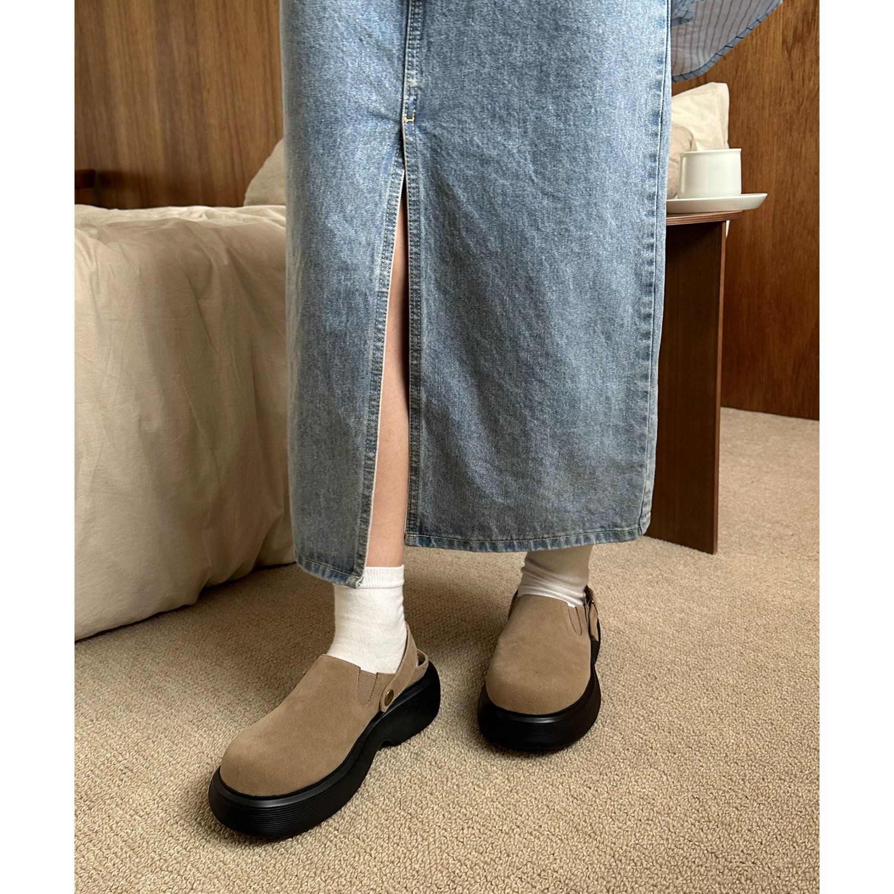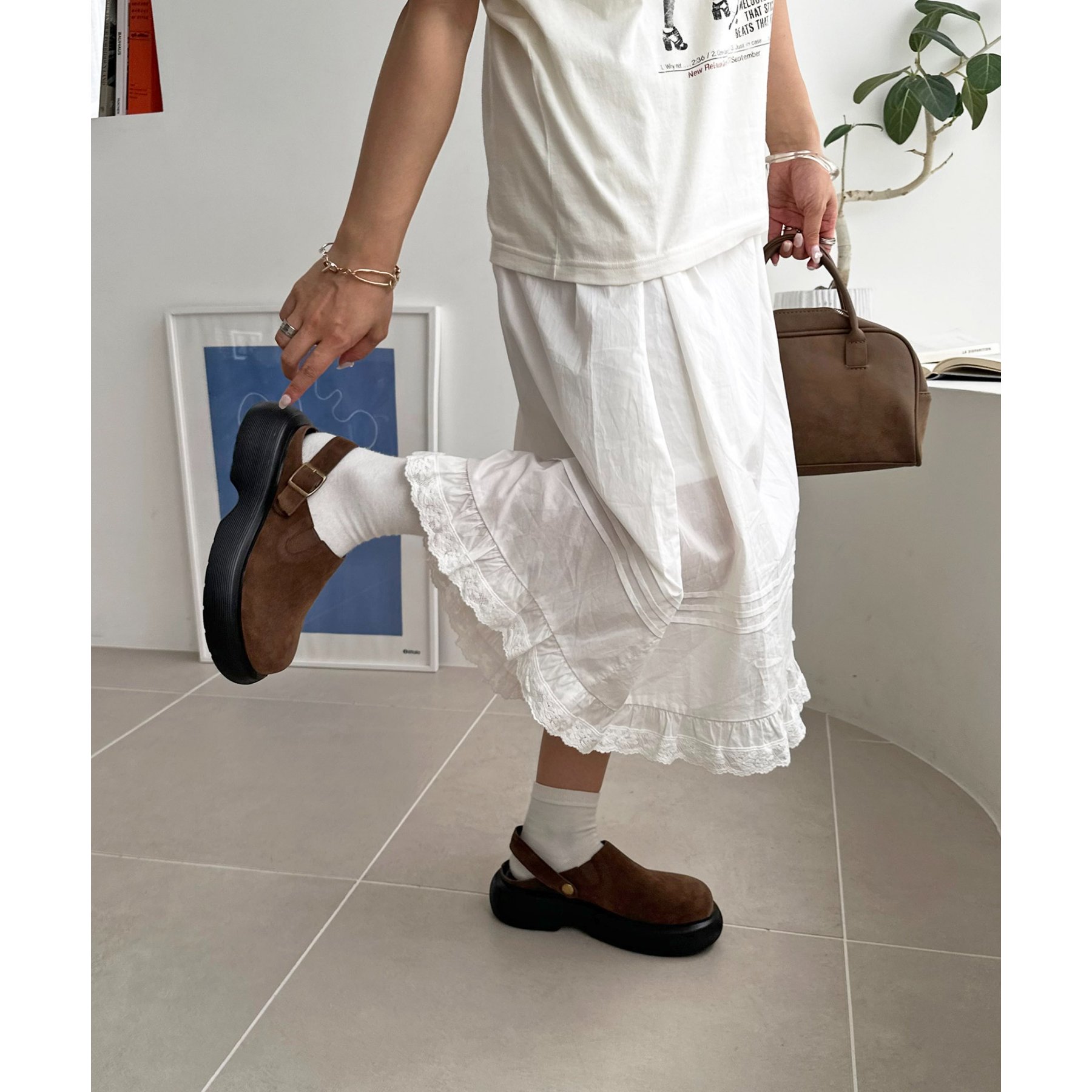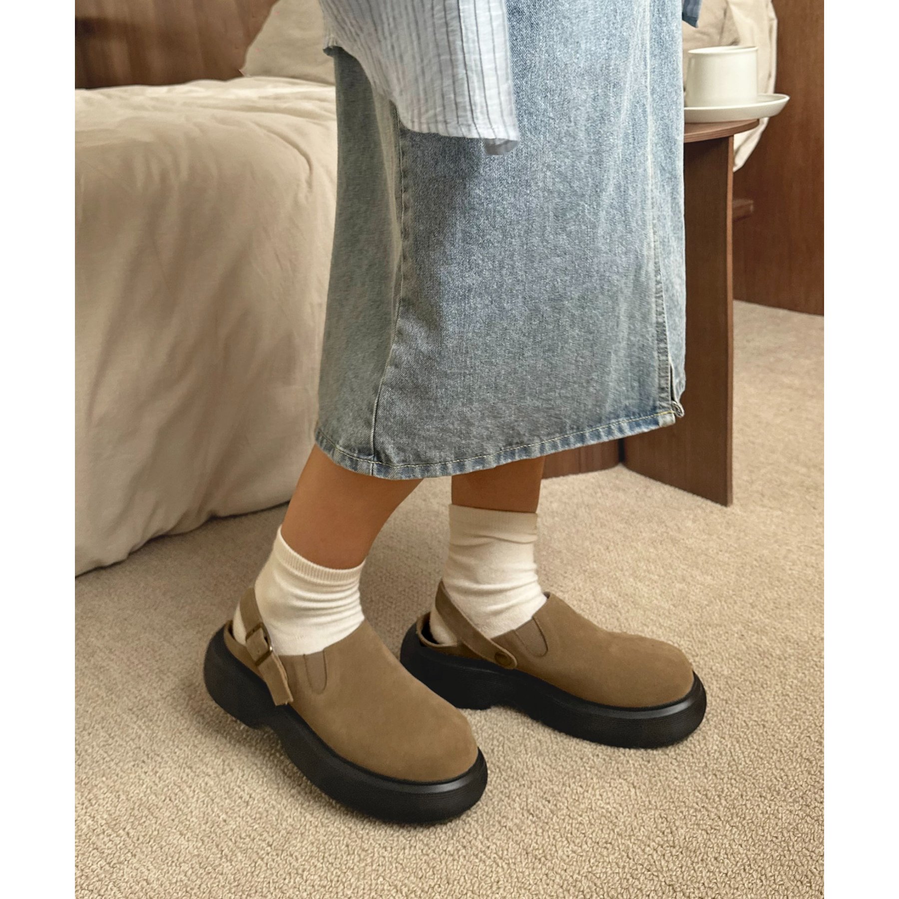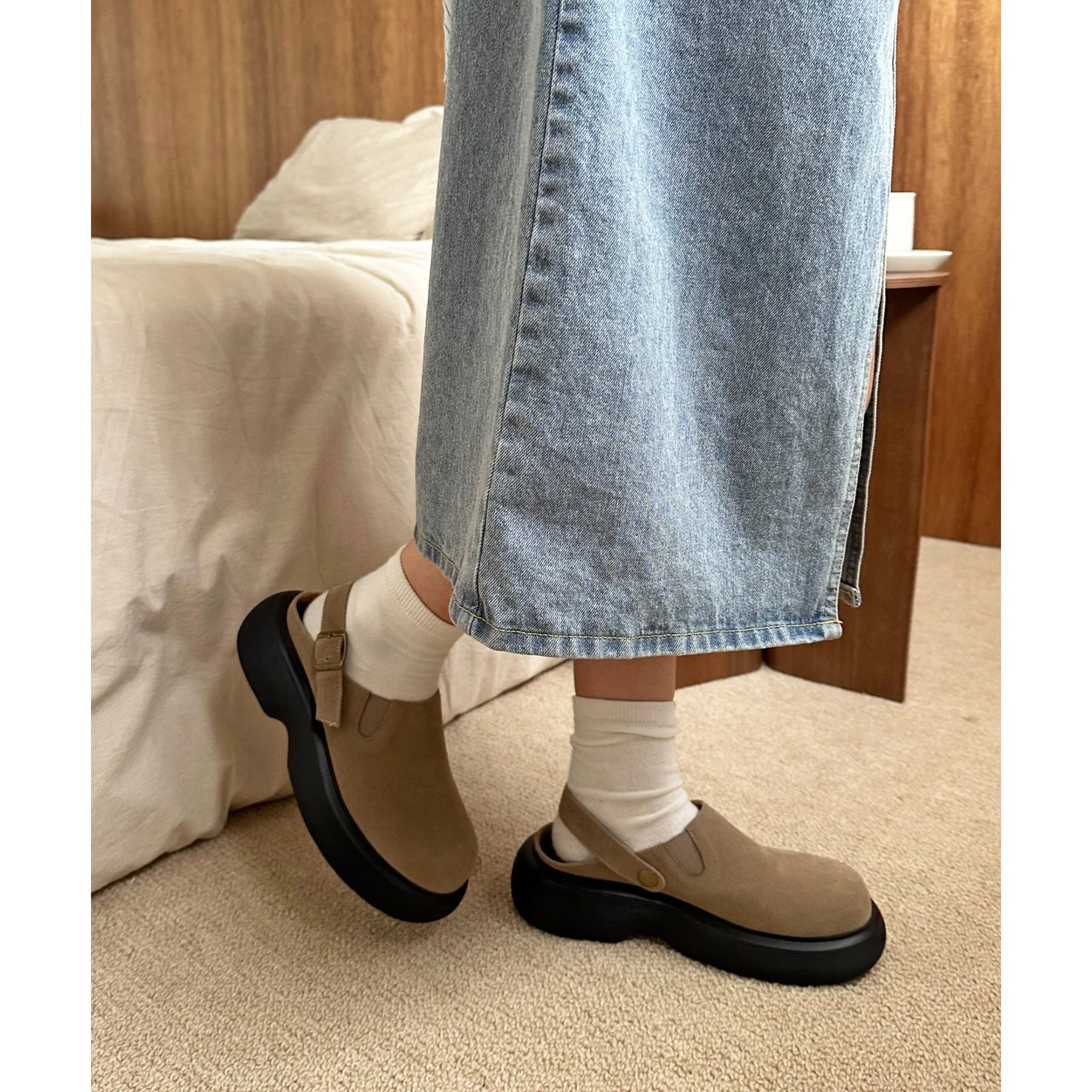 前から見ても、横から見てもぽってりとした丸みのあるシルエットが可愛いサボ。しっかりと厚みのあるソールでスタイルアップが叶います!また、見た目以上に軽く、クッション性のあるソールで快適な履き心地◎かかとのベルト部分は前後に可動するだけでなく、長さ調整も可能です!スタイリングはソックス合わせがオススメです◎(特にカラーソックスはトレンド感プラス♪)季節や系統問わず、ロングシーズン愛用できる一足です。