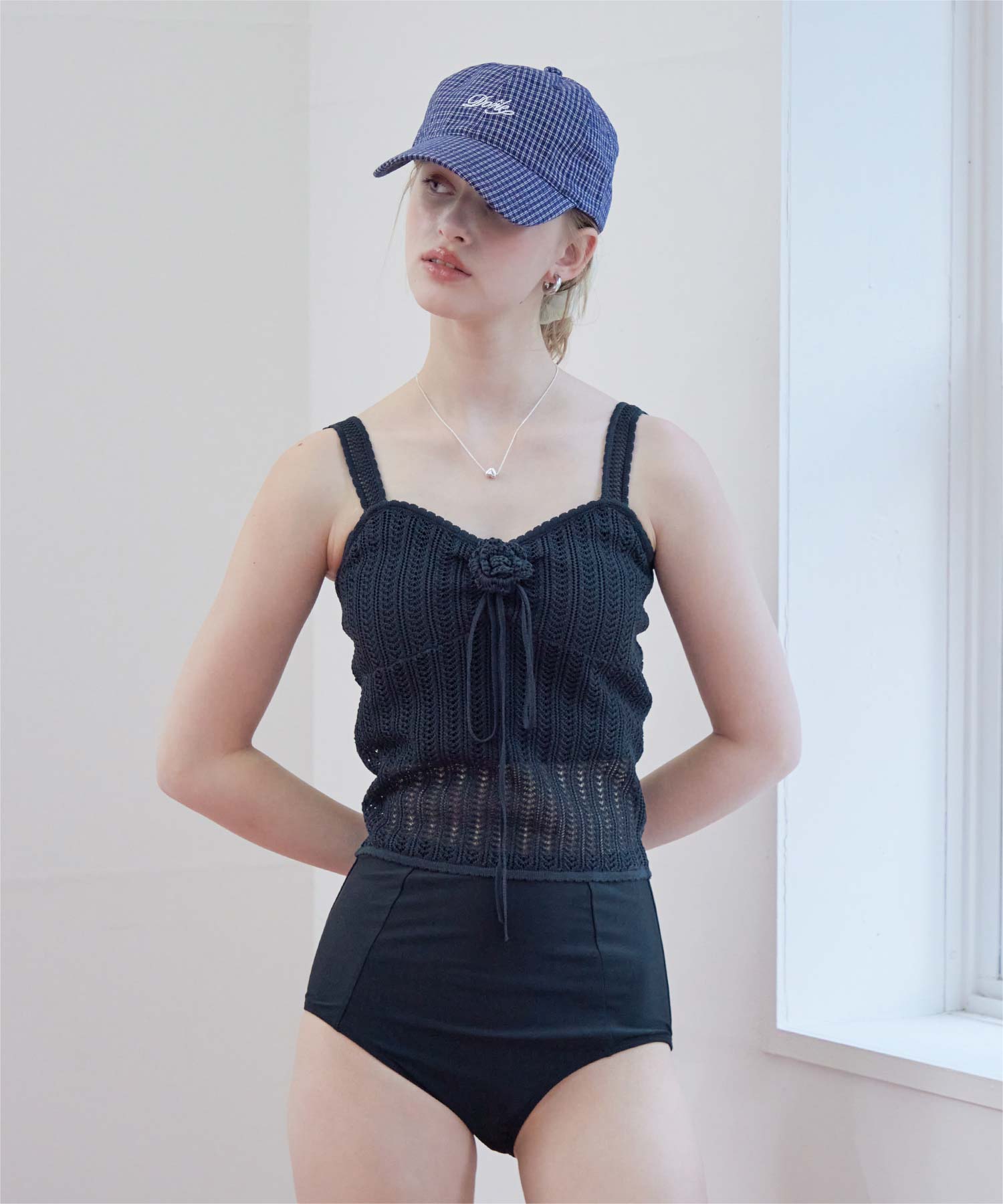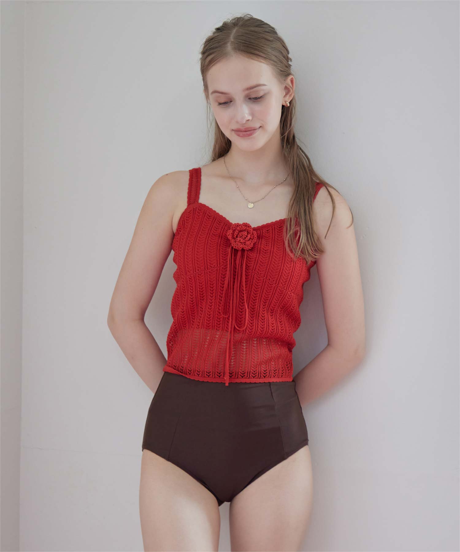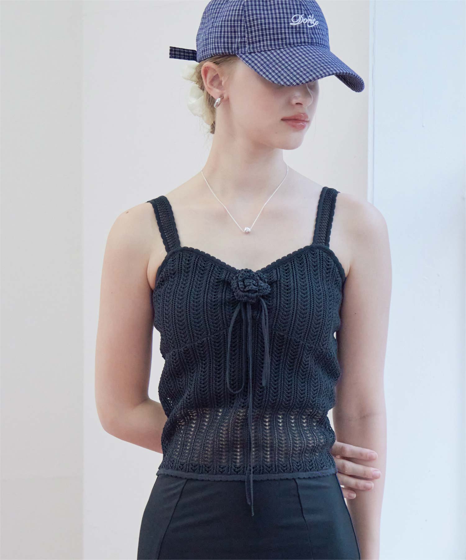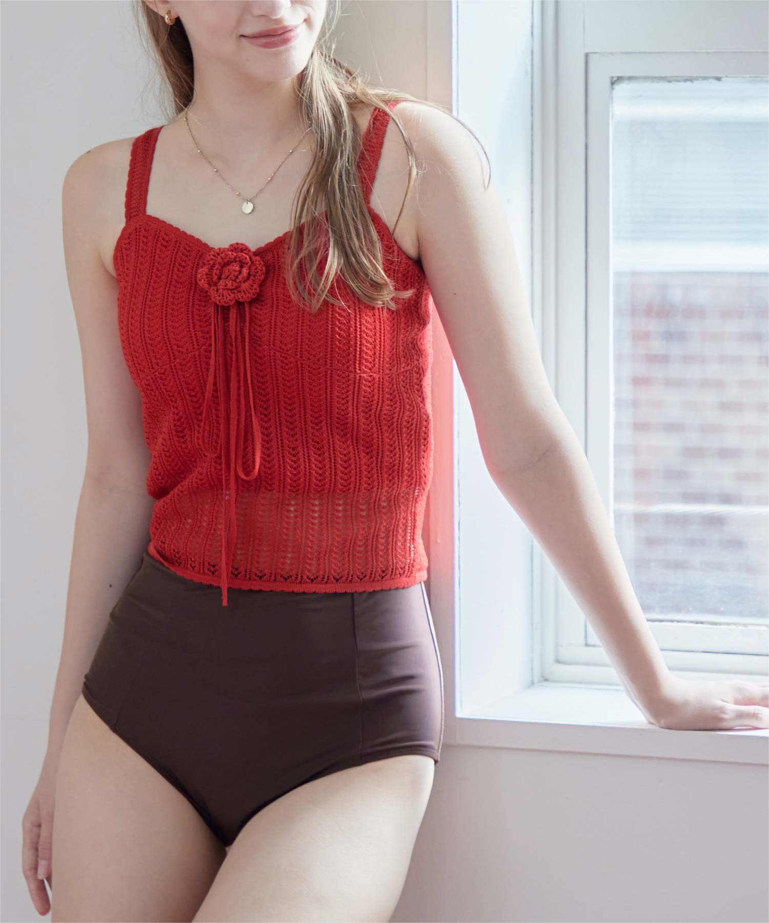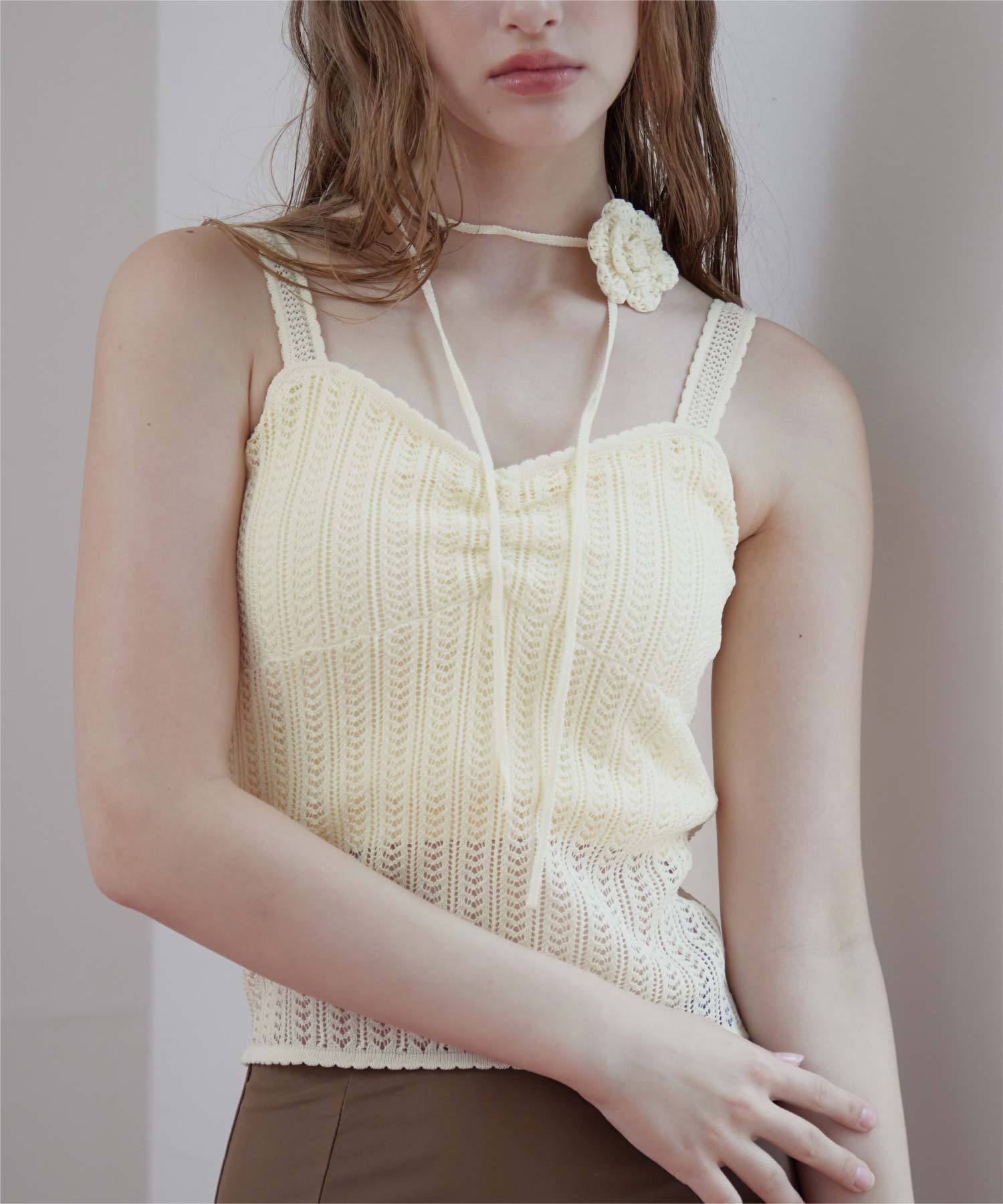・繊細な編地のニット素材がナチュラルな肌見せを演出し、甘くなり過ぎない上品な印象に。