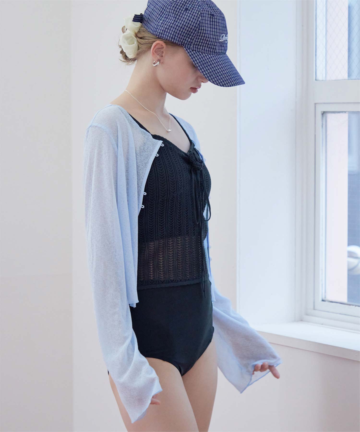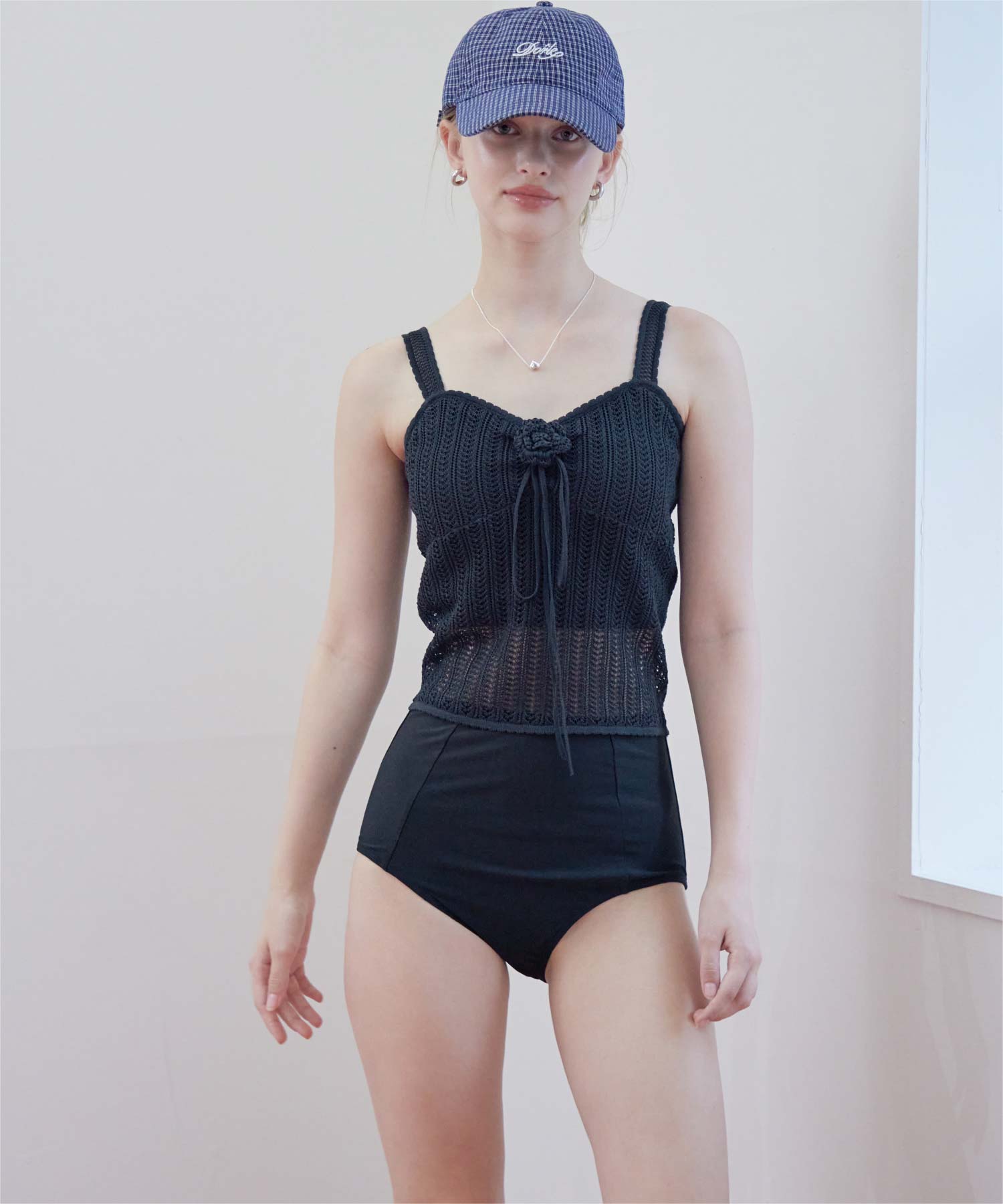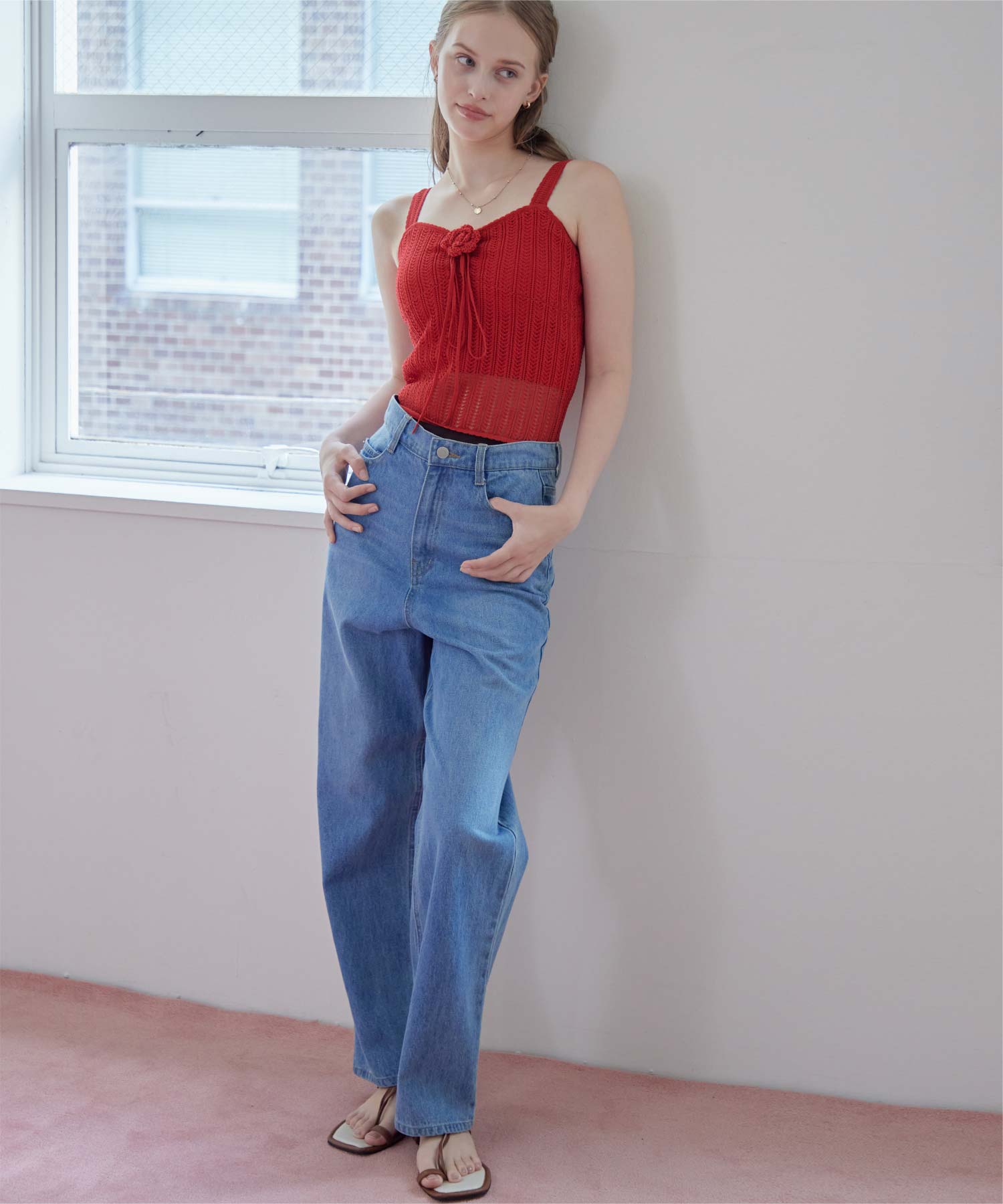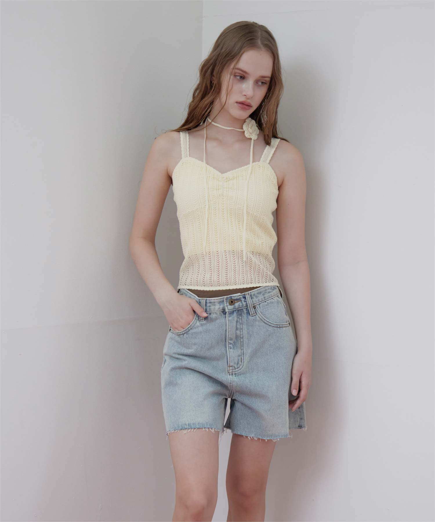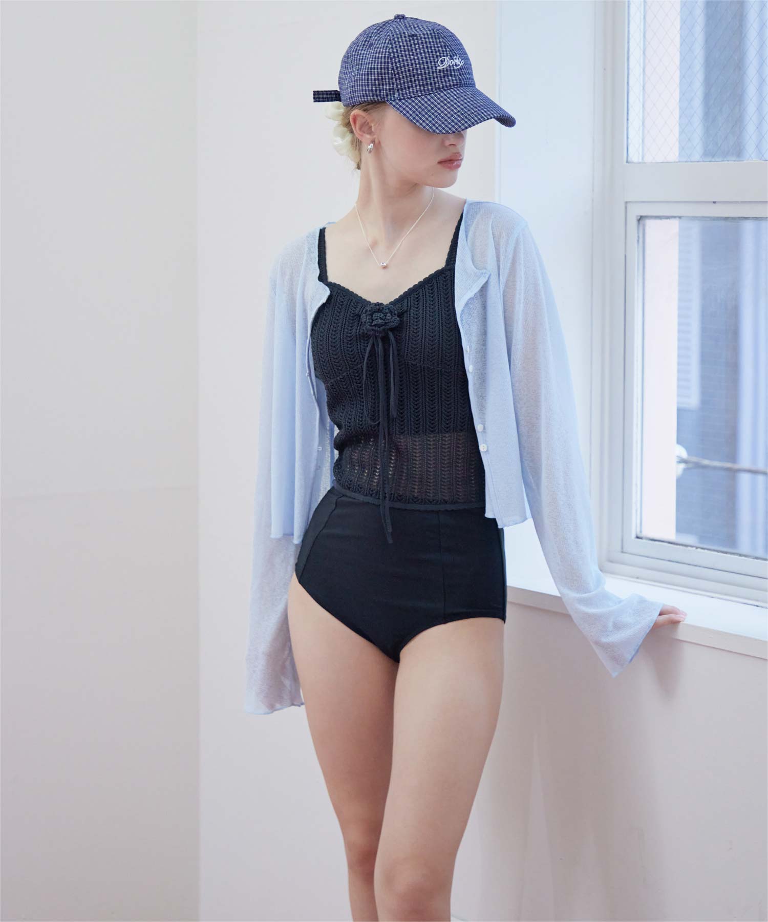 ・繊細な編地のニット素材がナチュラルな肌見せを演出し、甘くなり過ぎない上品な印象に。