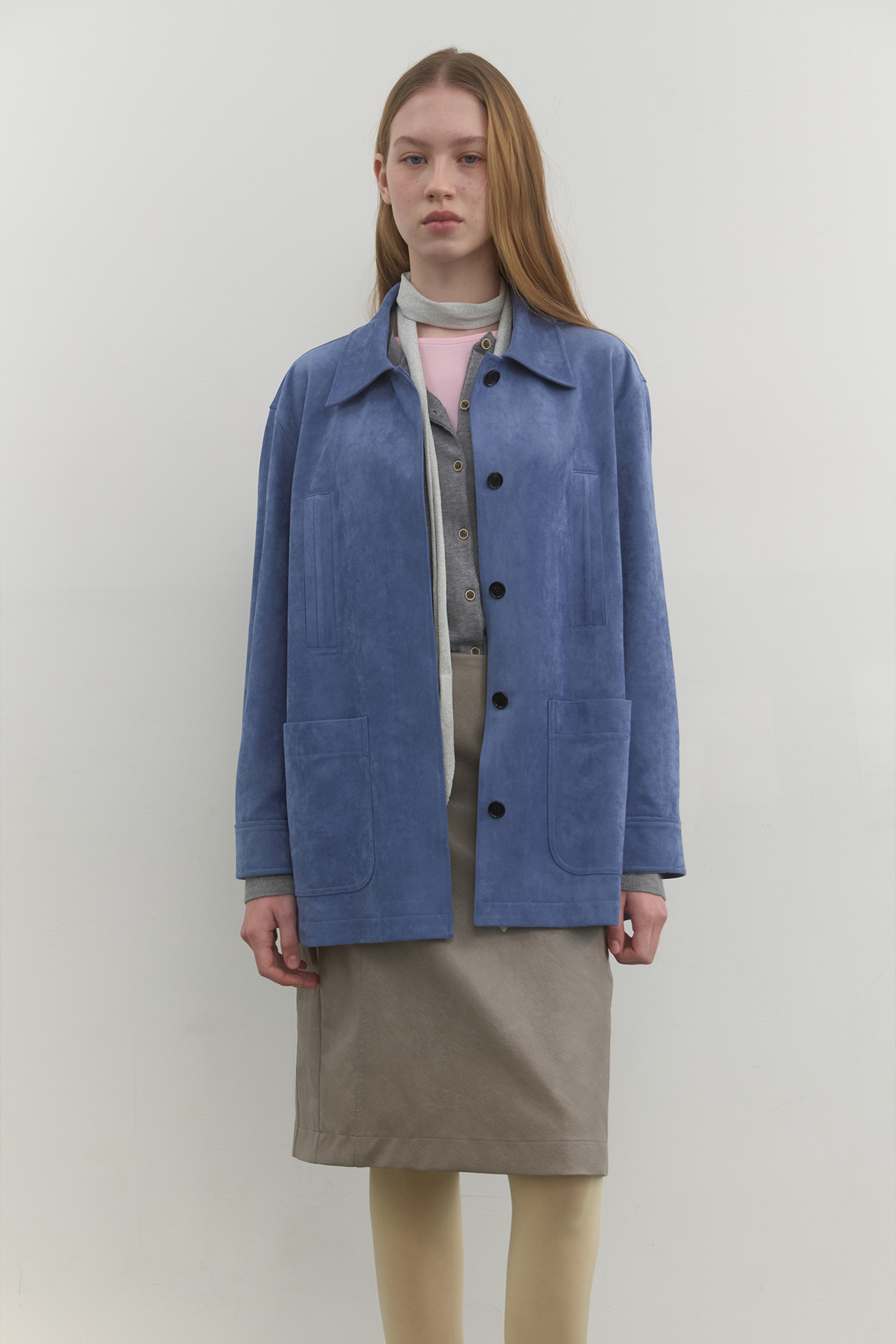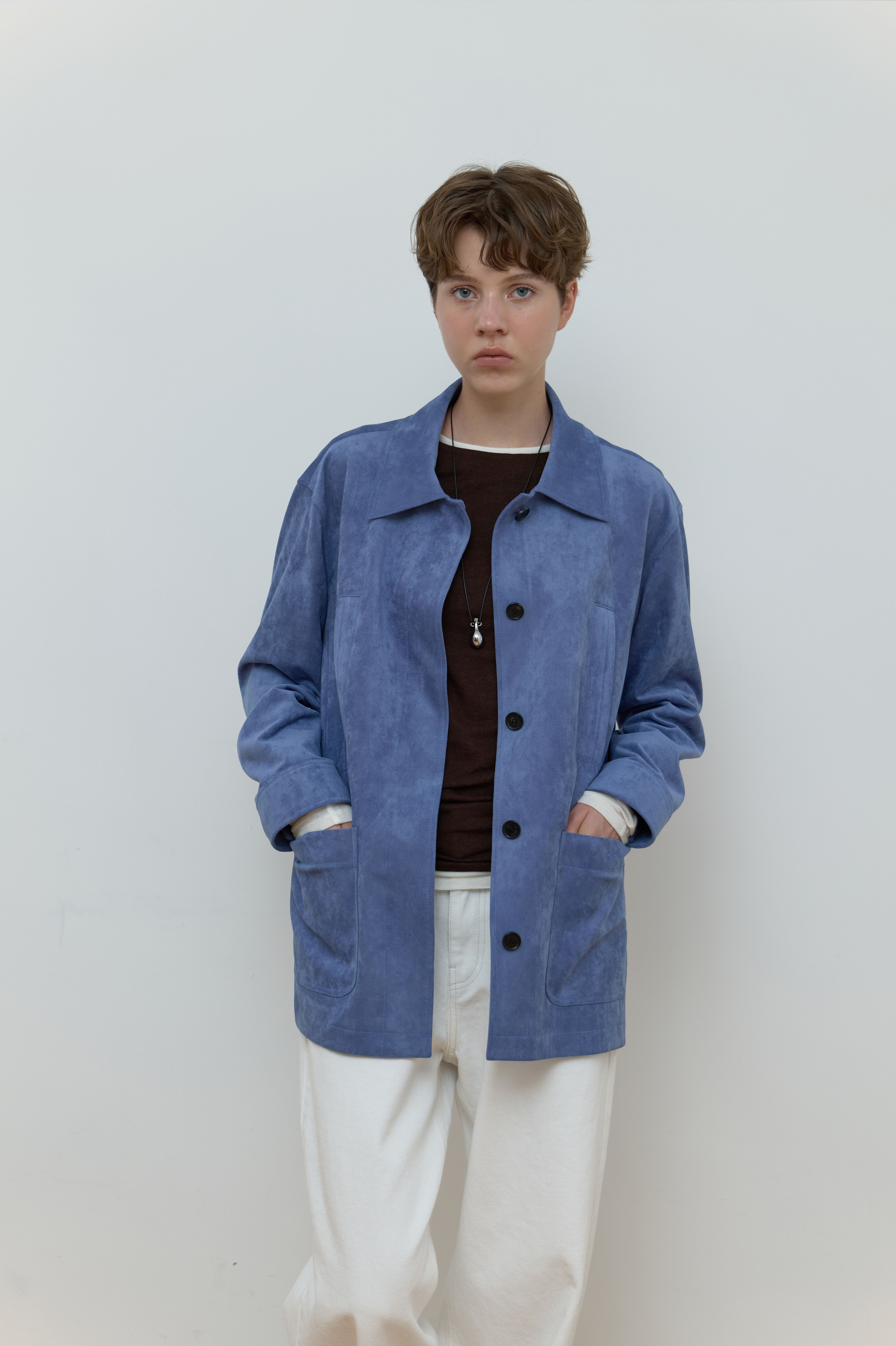 SUEDE SINGLE HALF JACKET_BLUE