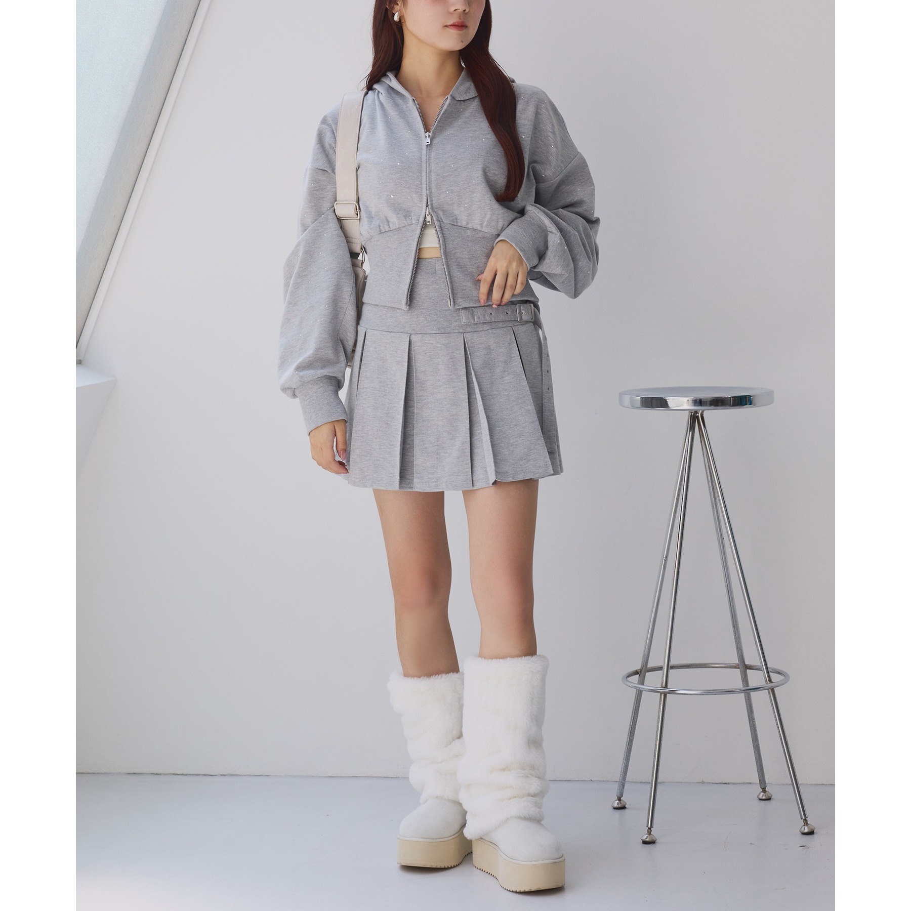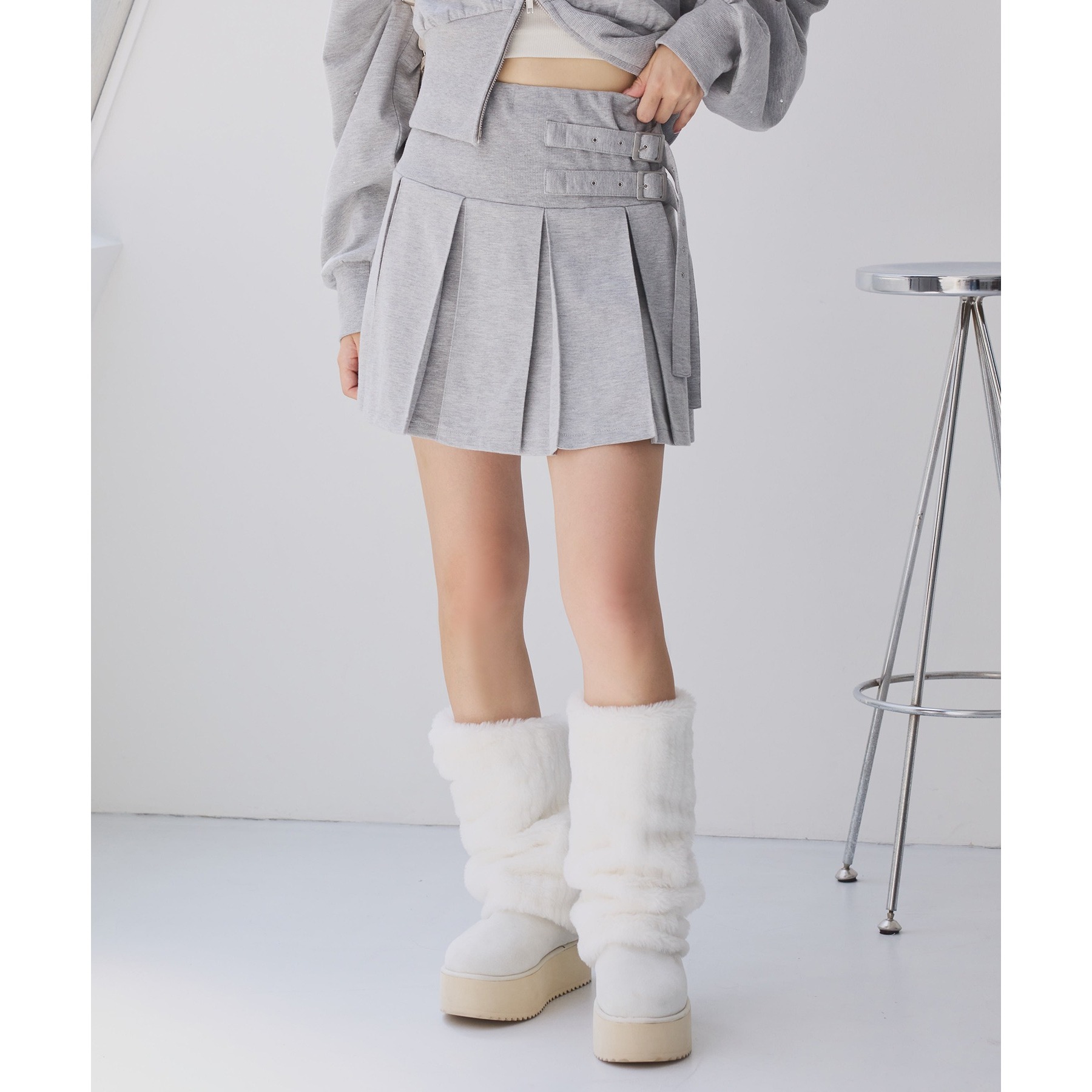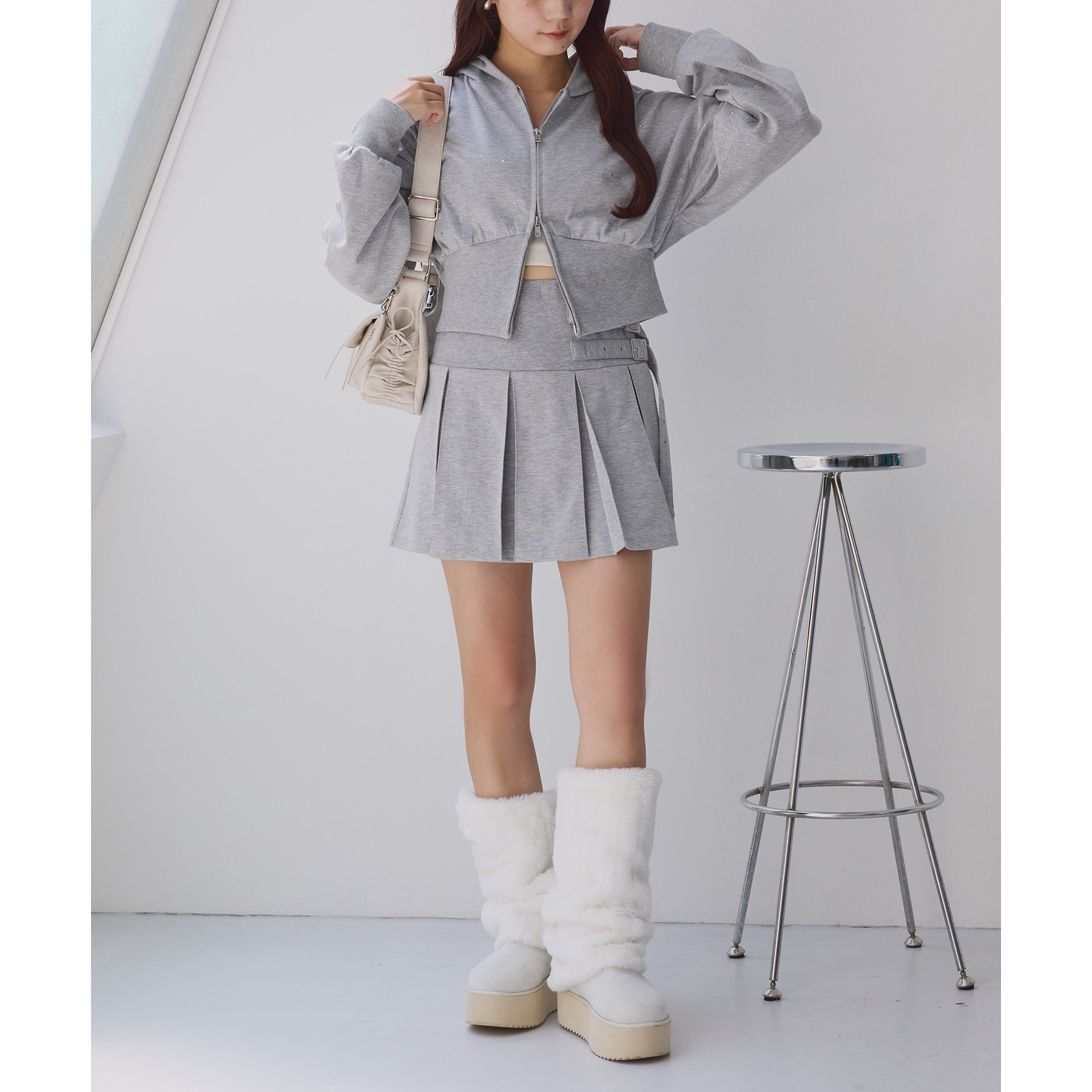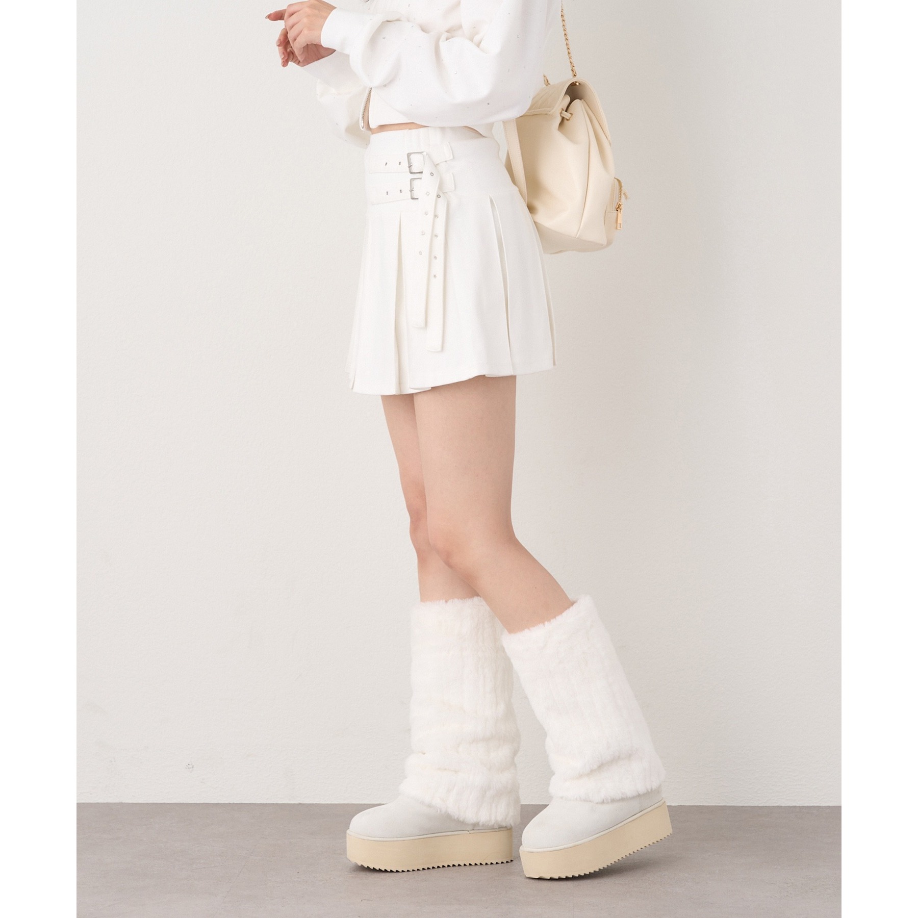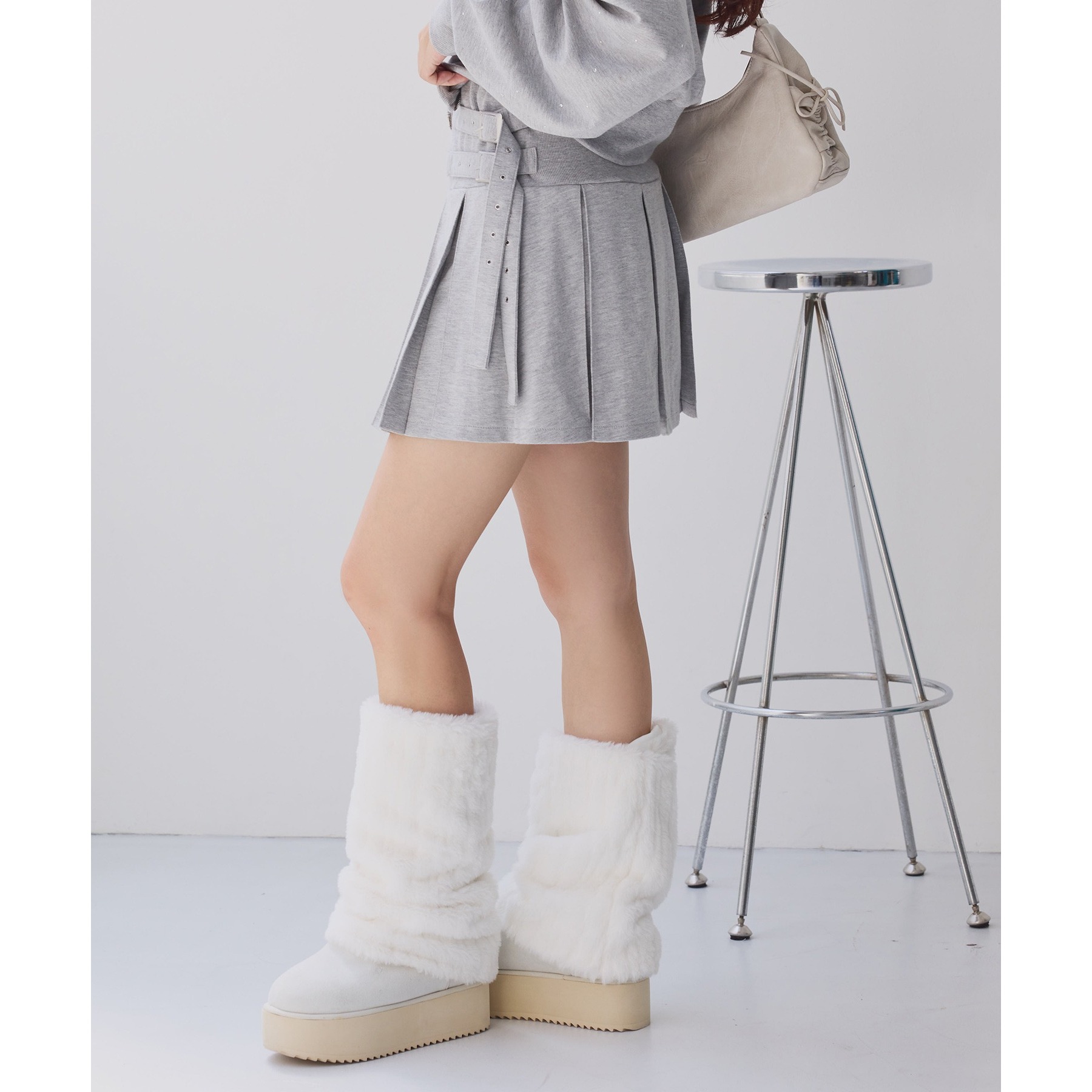 ミニ丈デザインなので、ロングブーツやサイドゴアブーツなど、