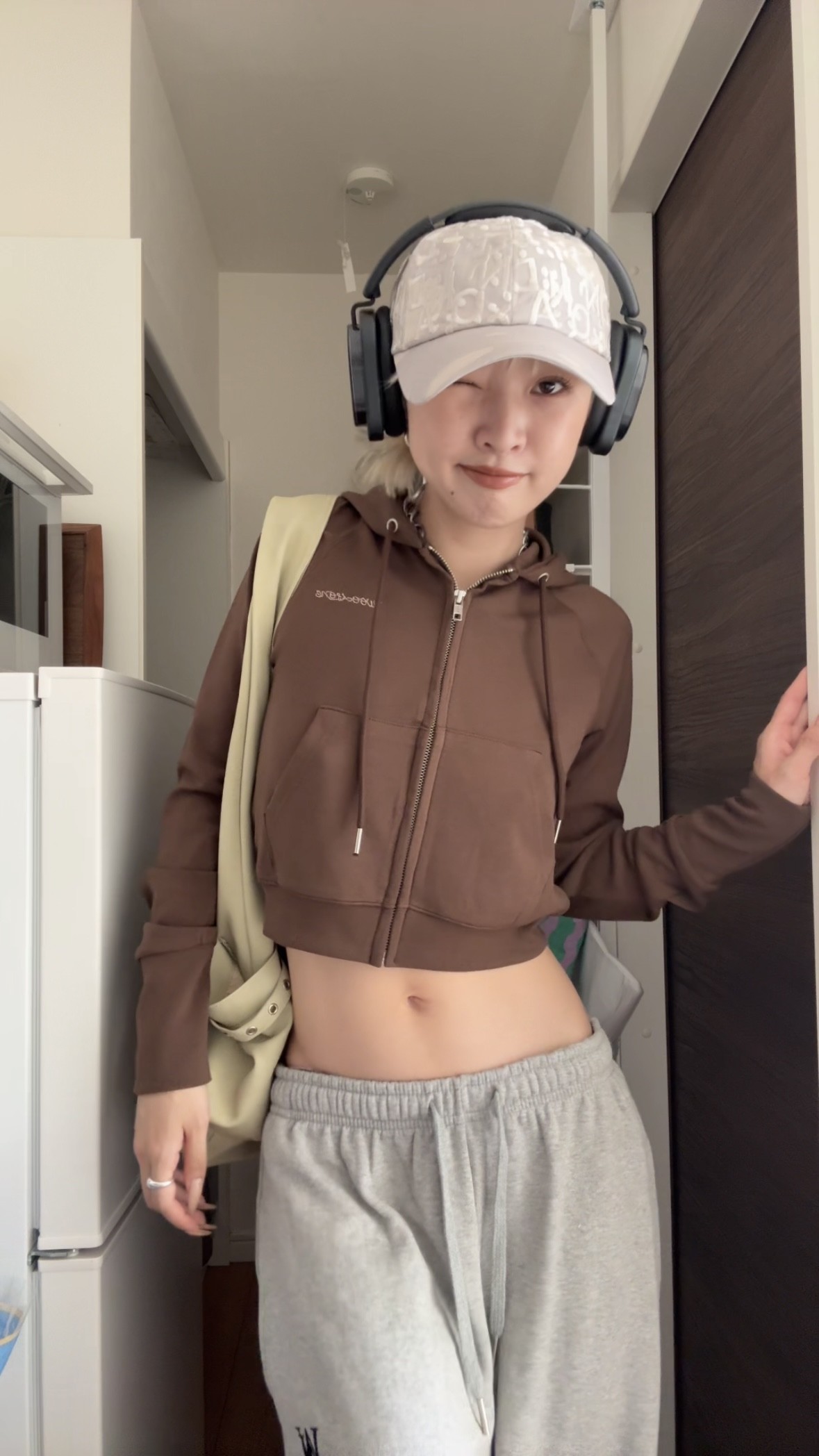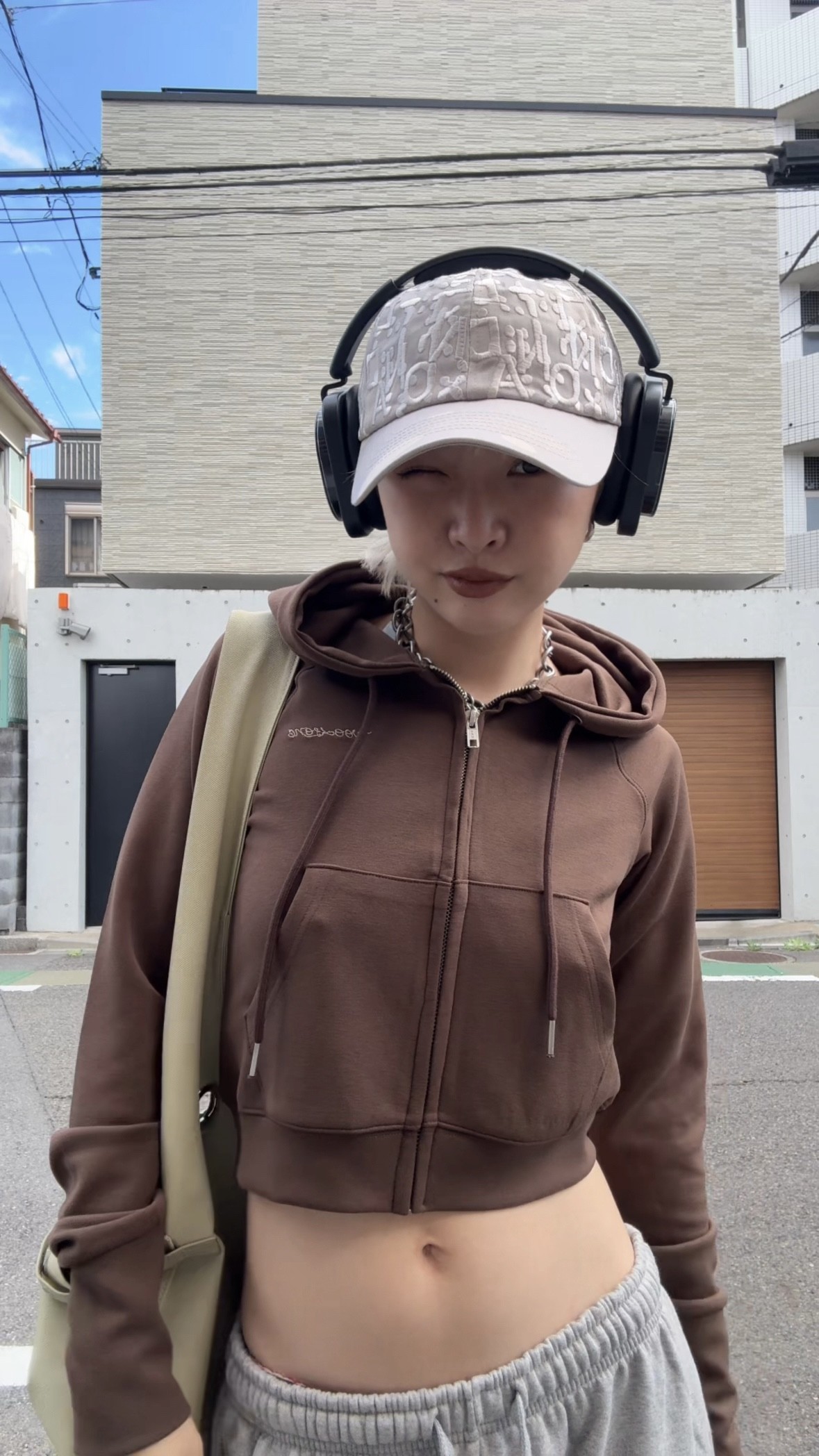 AirSoft Essential Crop Hood Zip-up - BROWN